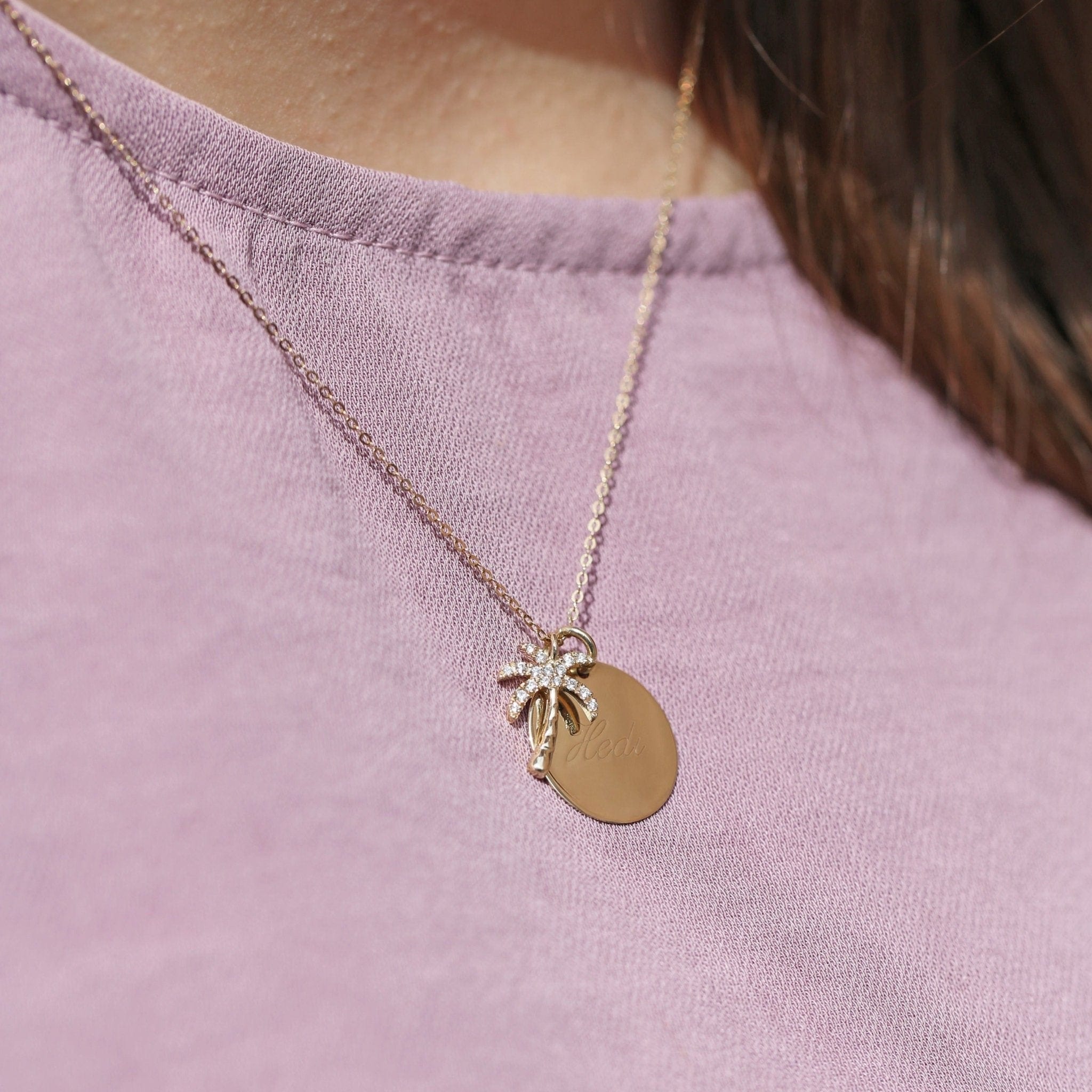 Unsere PALMY Anhänger sind einfach wunderschön, super filigran gearbeitet und ein echter Hingucker. Ob strahlend Gold oder mit funkelnden Diamanten besetzt, die kleine Palme erinnert an erholsame Urlaubstage und macht einfach richtig gute Laune! Sie lassen sich optimal mit dem personalisierten HEDI Plättchen kombinieren und erweitern. Wie alle unsere Schmuckstücke können wir auch die Palme natürlich in Gelbgold, Weißgold oder Rosègold für Dich anfertigen. Und es gibt sie auch als Kette jeweils mit und ohne Diamanten.