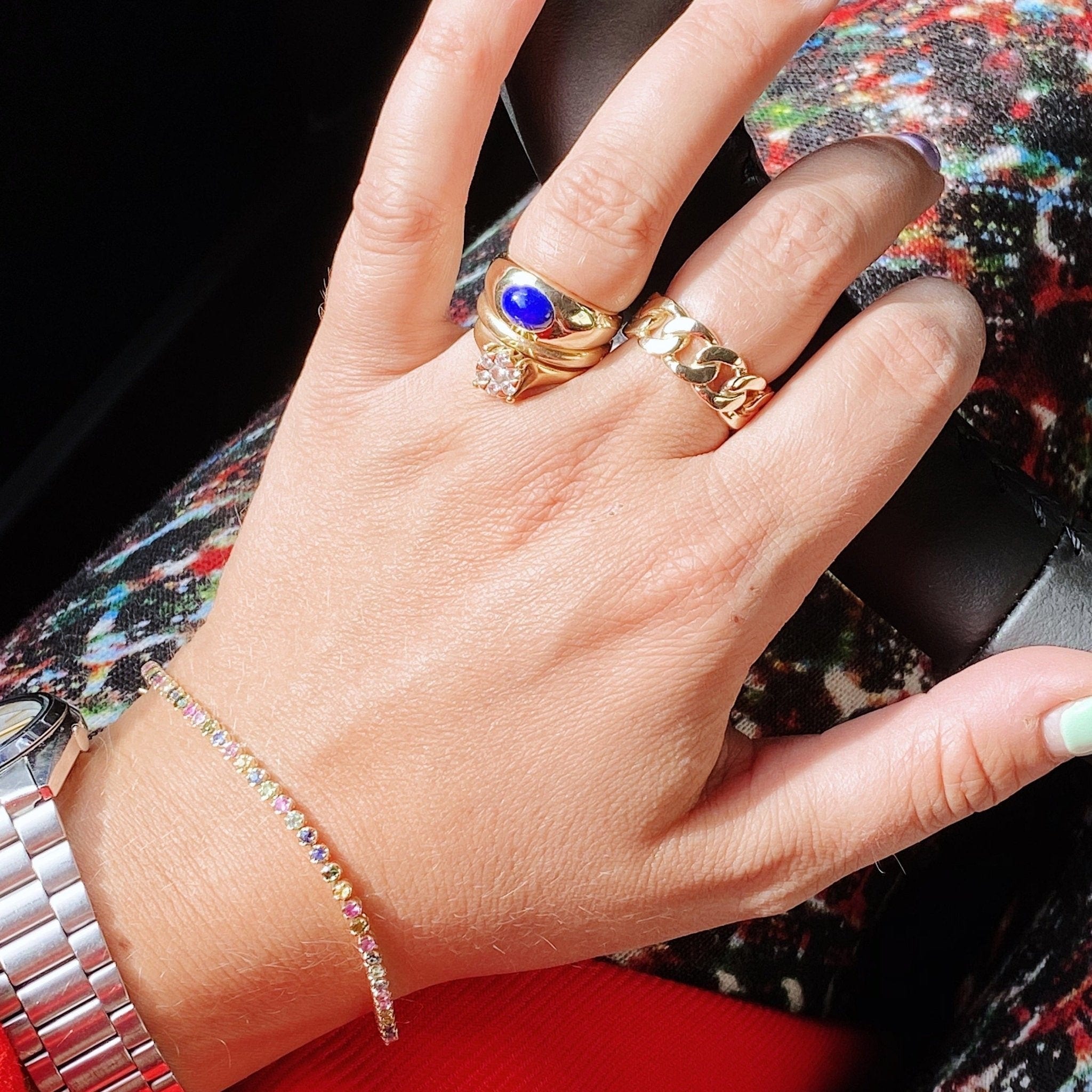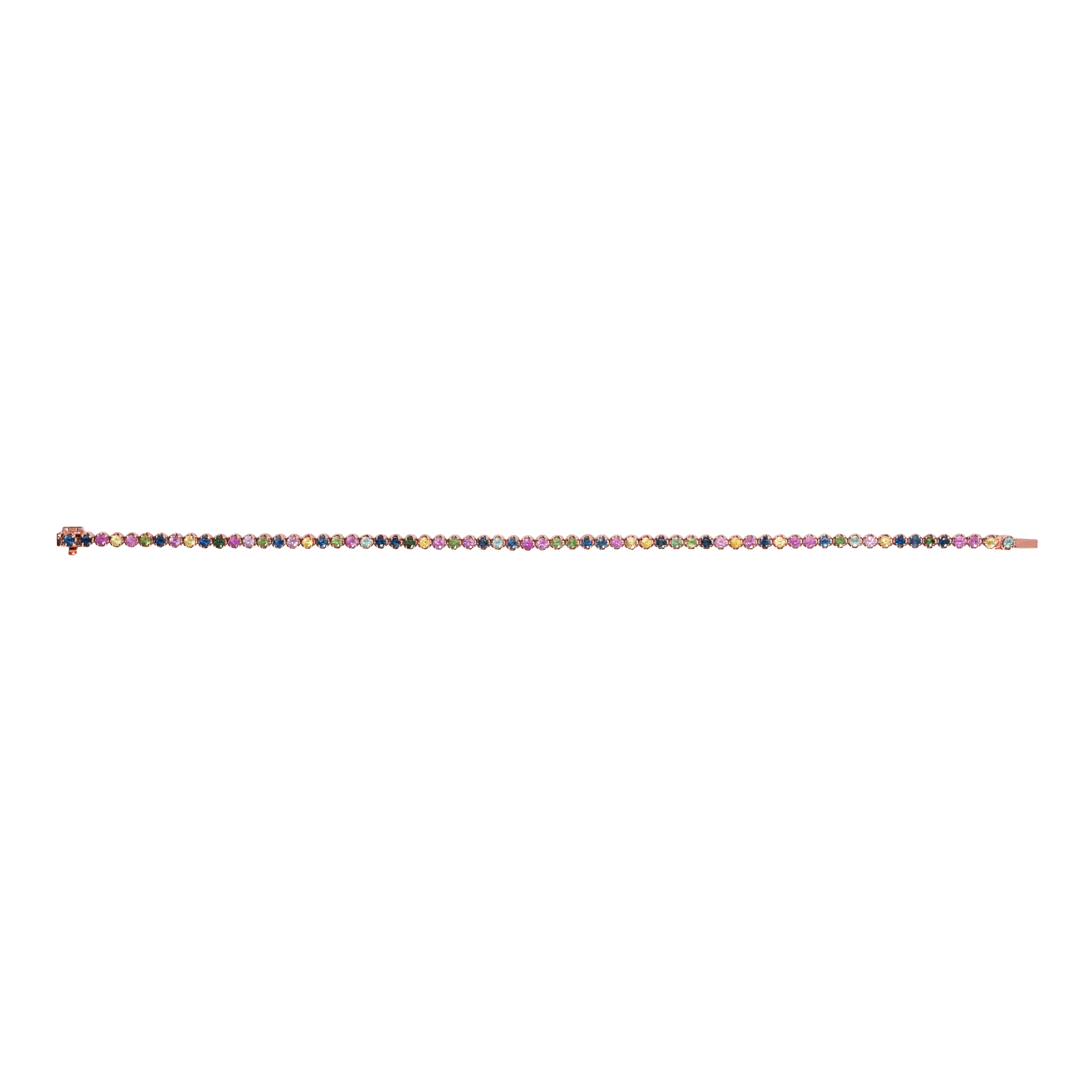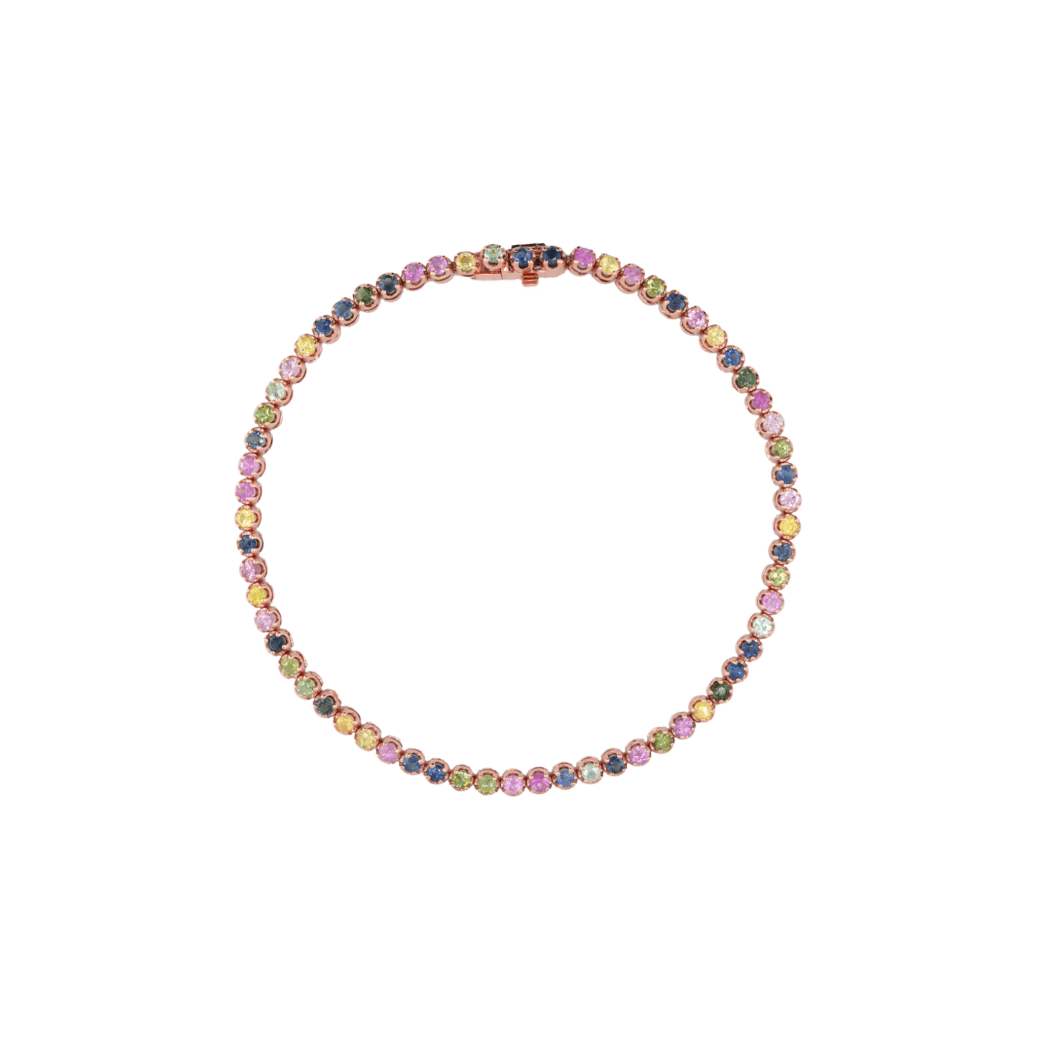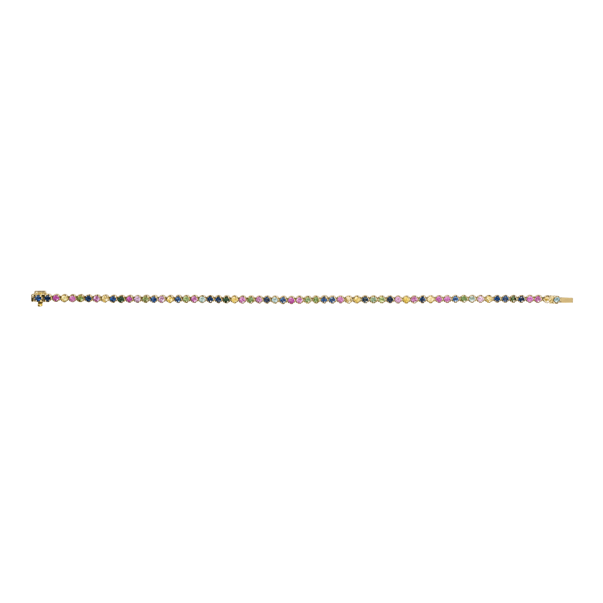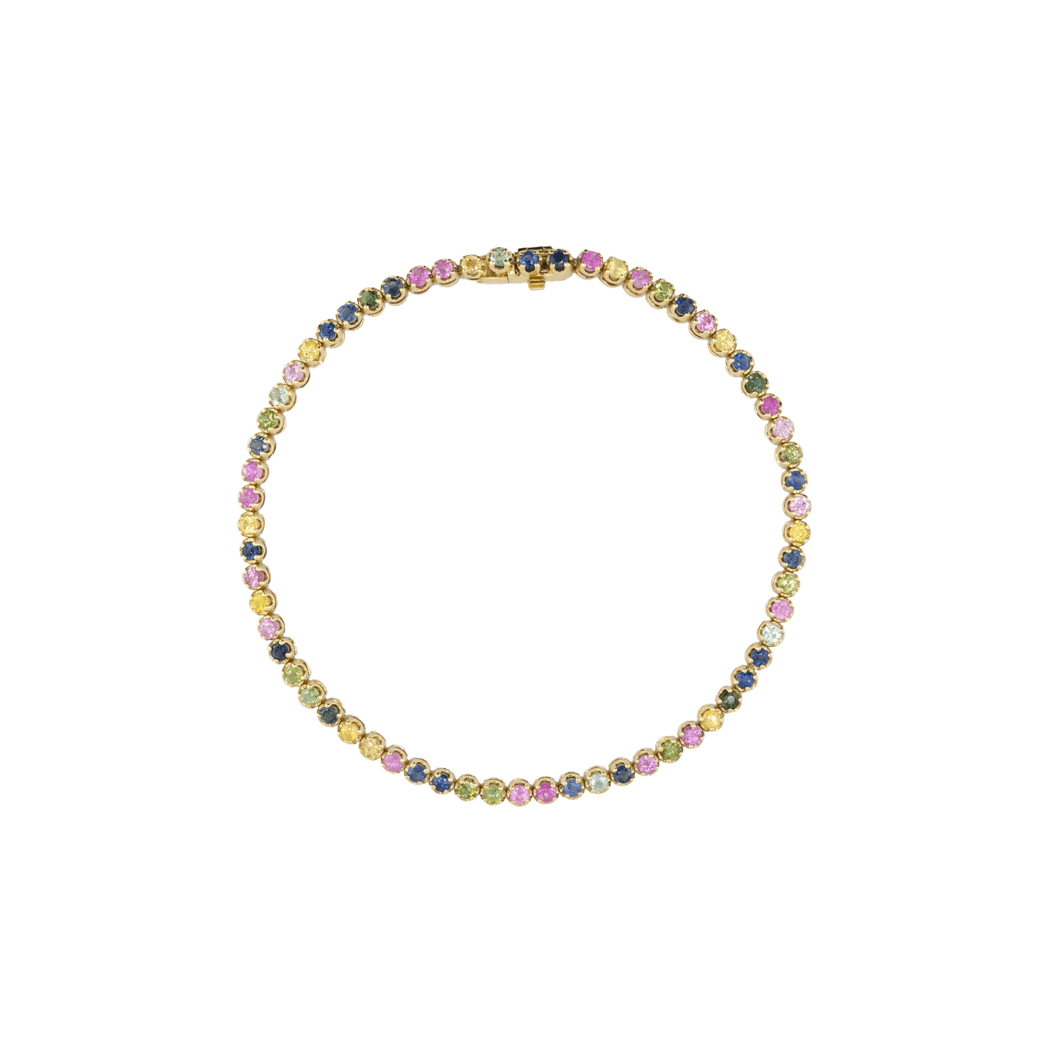 Ein Tennis Bracelet in Rainbow Saphiren, das ist JUDY. And because every woman loves a good tennis bracelet, wirst Du unser Bracelet JUDY lieben. Mit seinen sommerlich-bunten Saphiren wirst Du für immer das Gefühl eines warmen Sommertages ausstrahlen und dabei etwas verspielt und dennoch elegant ein farbenfrohes Statement setzten. It's always summer! Besonders ist bei unserem Armband JUDY der Verschluss, der sich kaum erkennen lässt, sobald Du es einmal trägst und das Armband so zu einem schier unendlichen Band aus glitzernden Saphiren werden lässt. Etwas kostspieliger, aber fantastisch in Kombination ist unser Armband JUDY mit seiner diamantbesetzten Schwester SERENA.