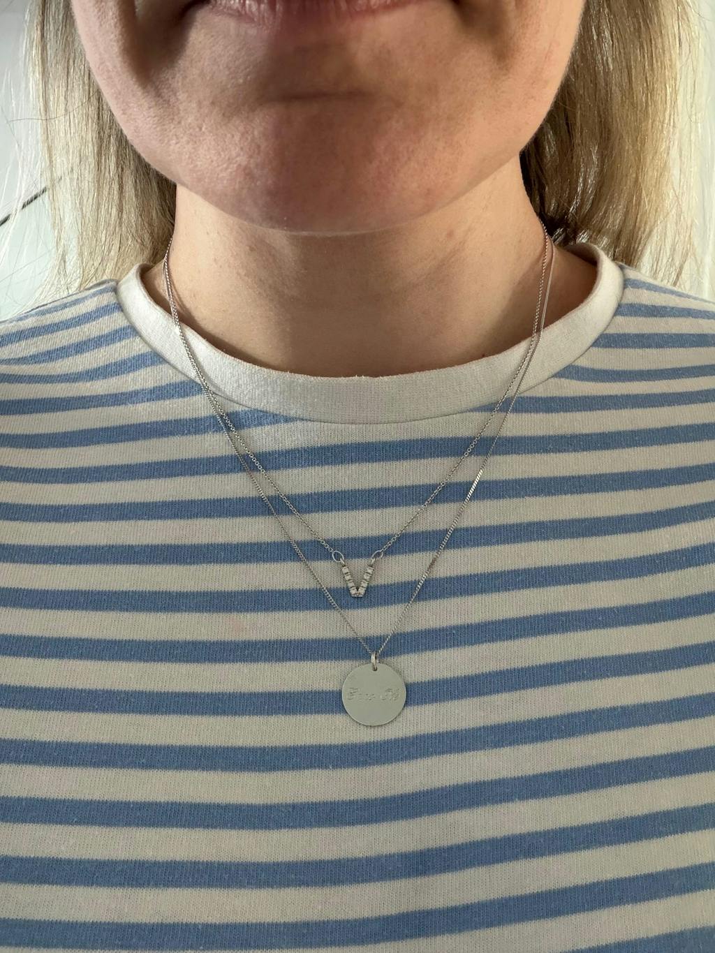 Eine Kette ELSA lässt sich so perfekt zu einer Kette HEDI tragen. Zusammen mit einer Kette HATI sind beide, oder alle drei, kombinierbar.