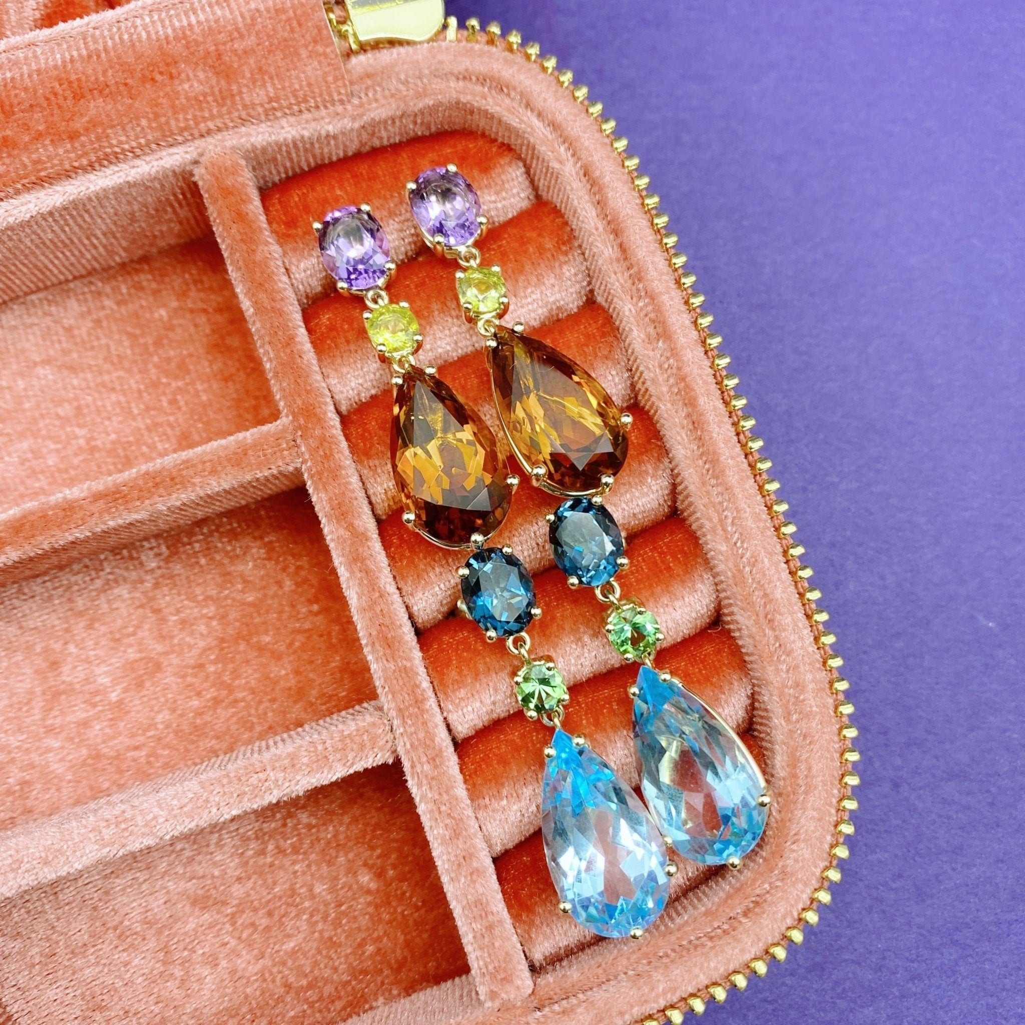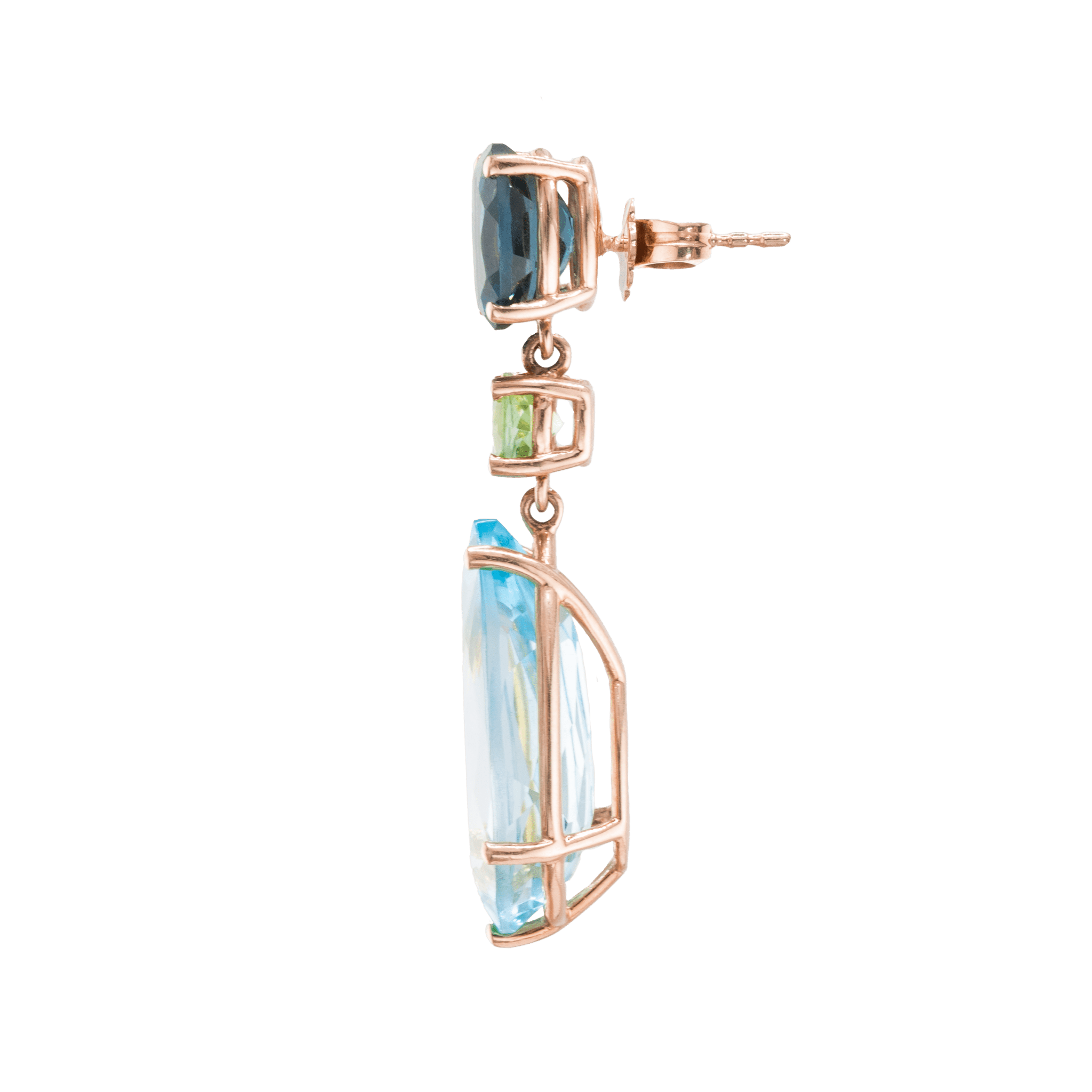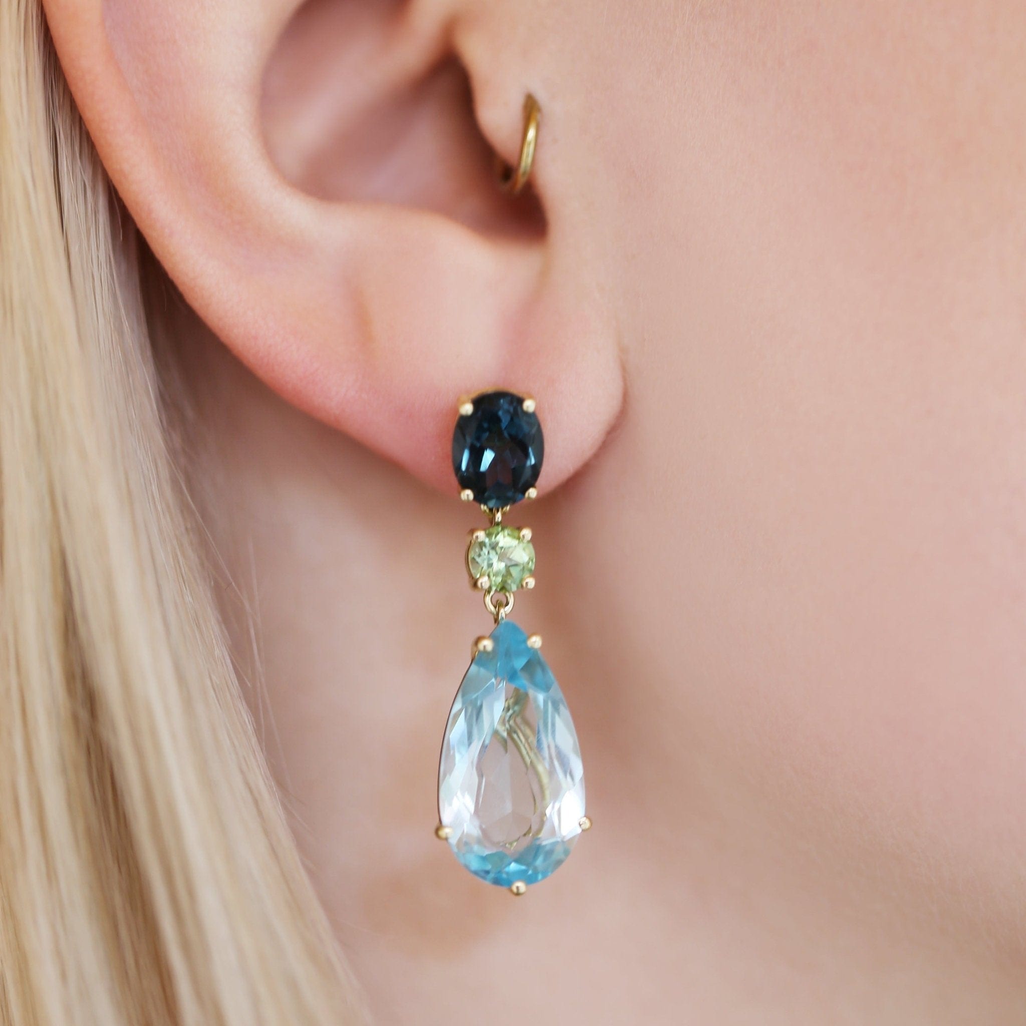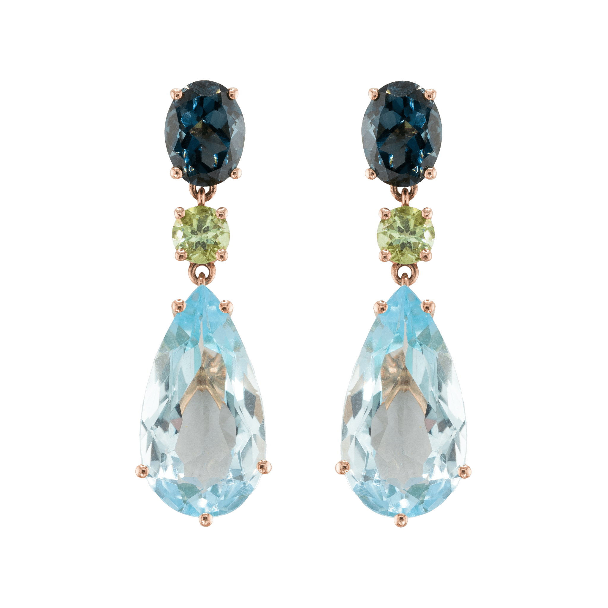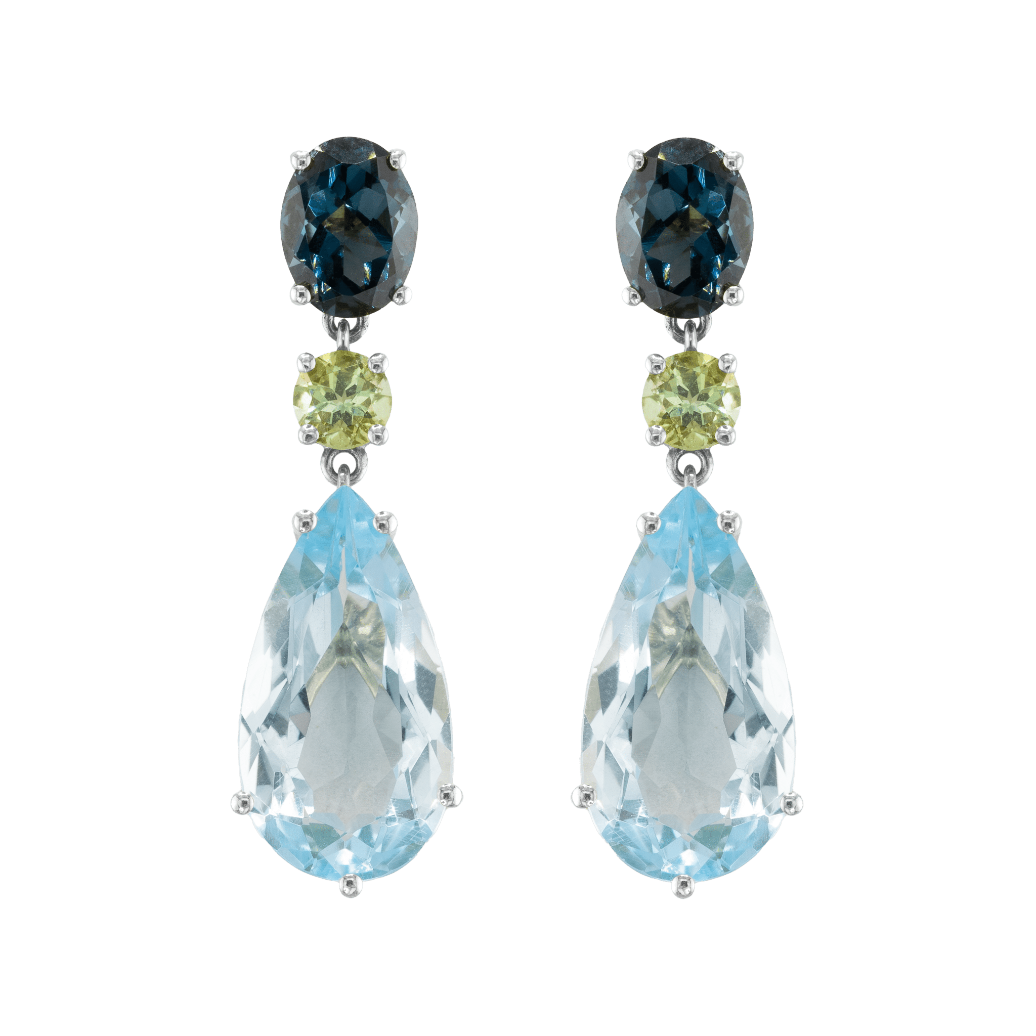 Artikel BLUE: Ohrhänger mit Blautopas London blue (beh.), Turmalin (grün), Blautopas skyblue (beh.)