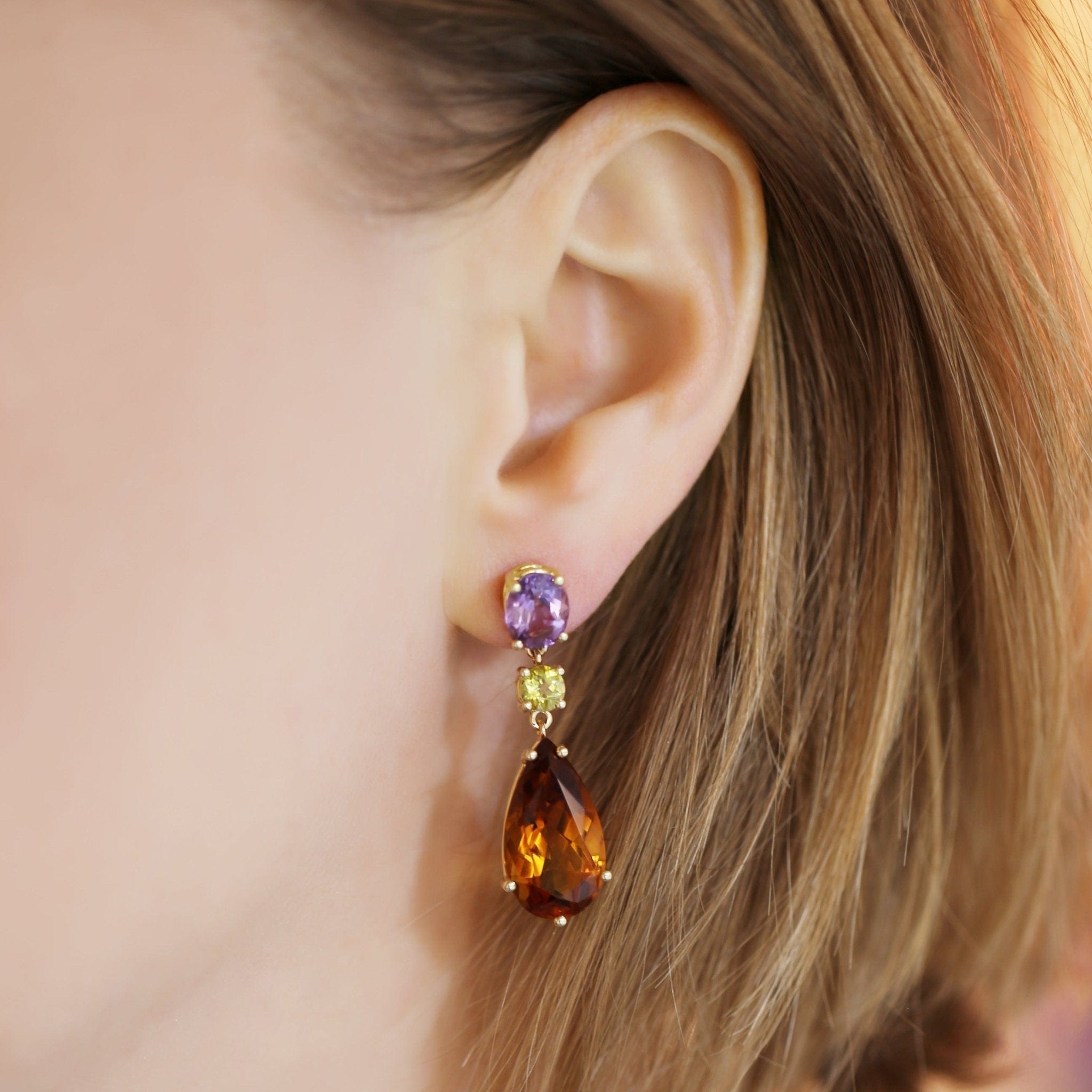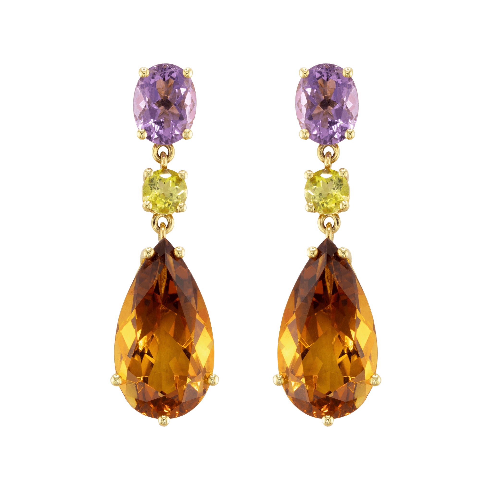 Artikel YELLOW: Ohrhänger mit Amethyst flieder & Limonenquarz gelb (beh.) & Citrin palmeira
