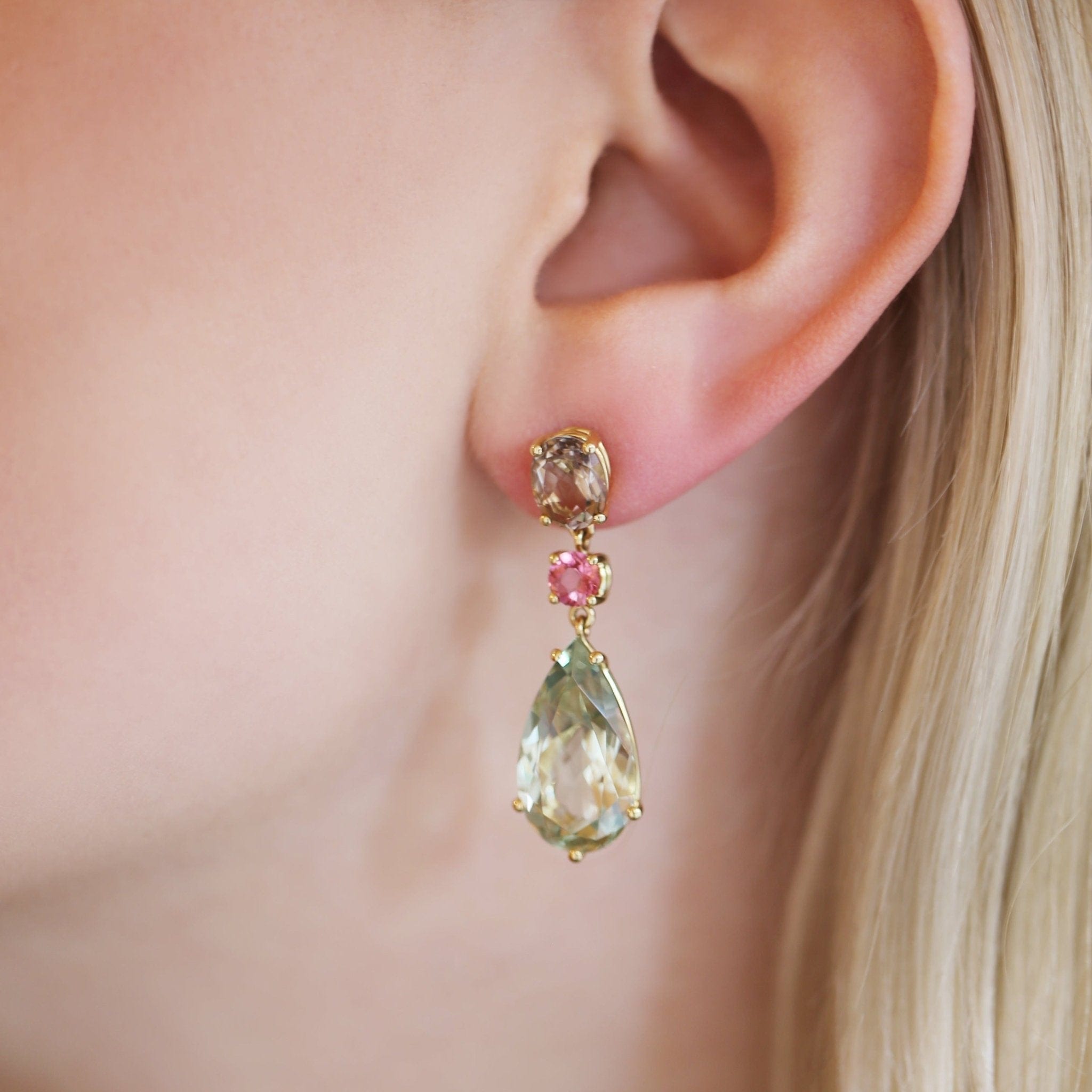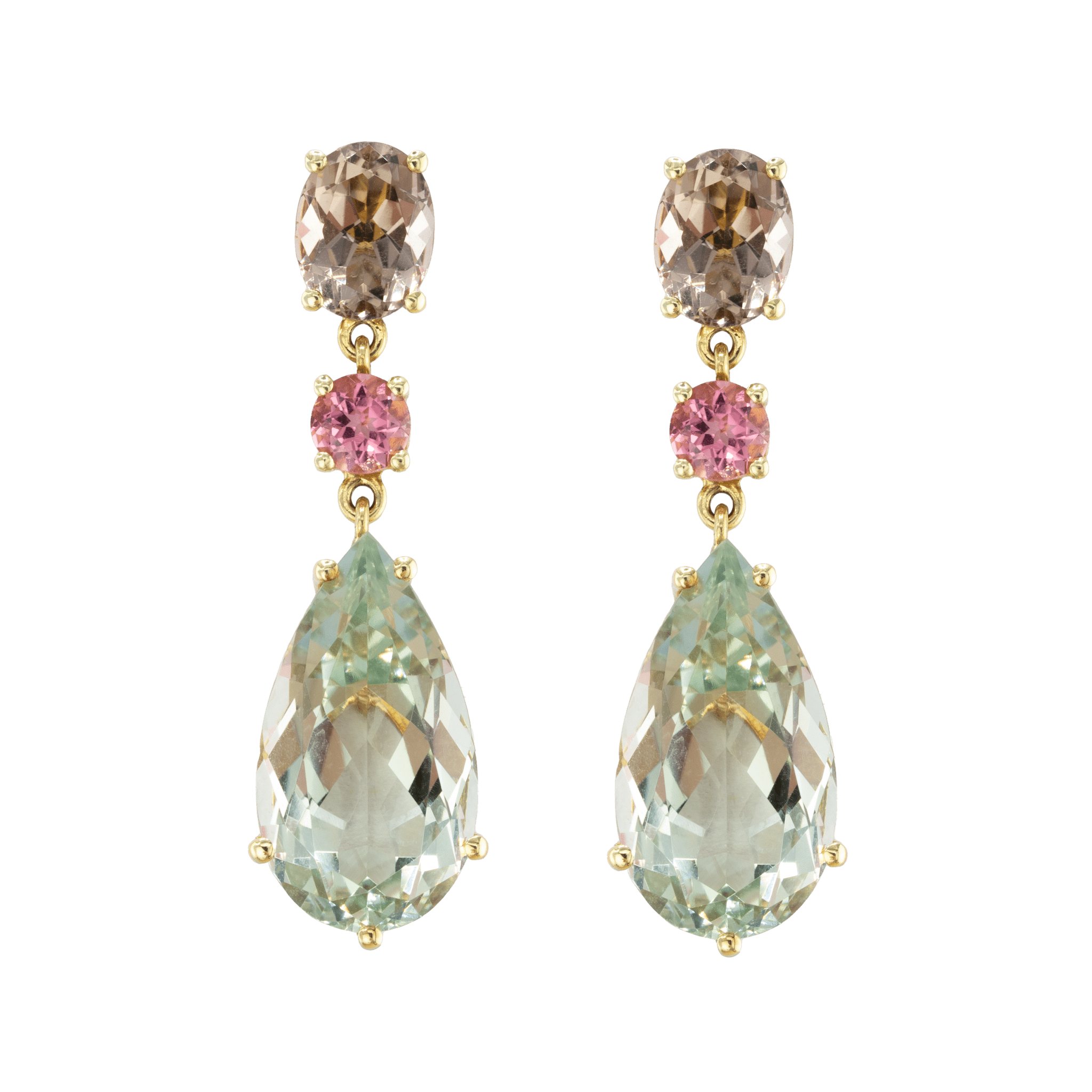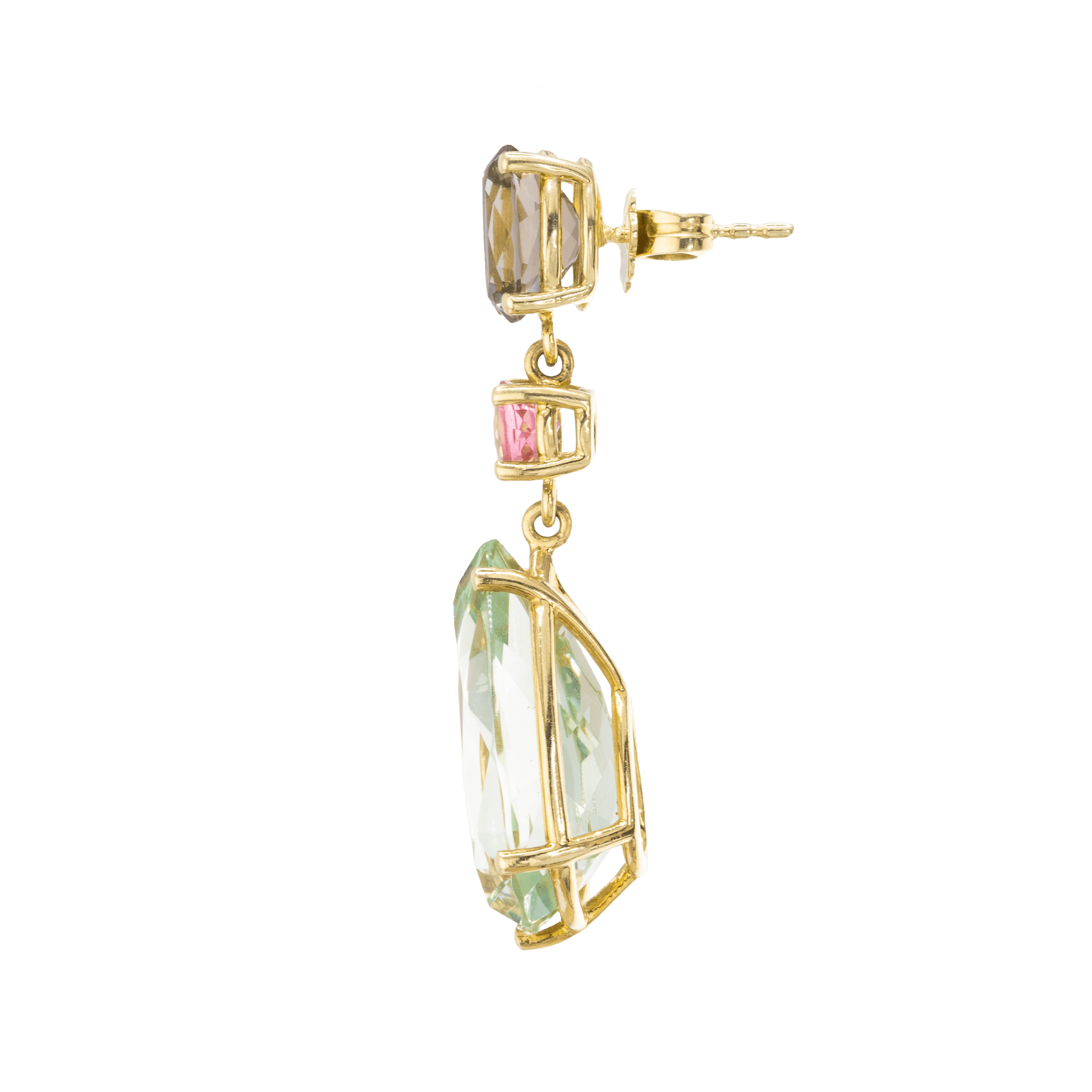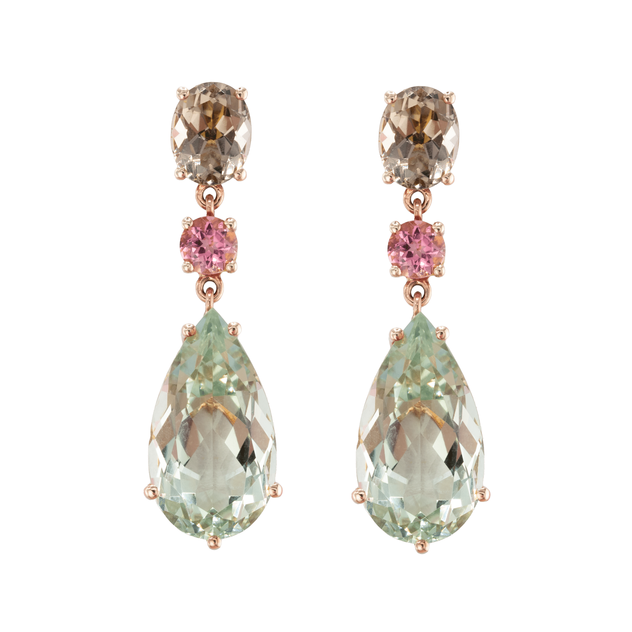 Artikel GREEN: Ohrhänger mit Rauchquarz medium & Turmalin pink & Prasiolith (beh.)
