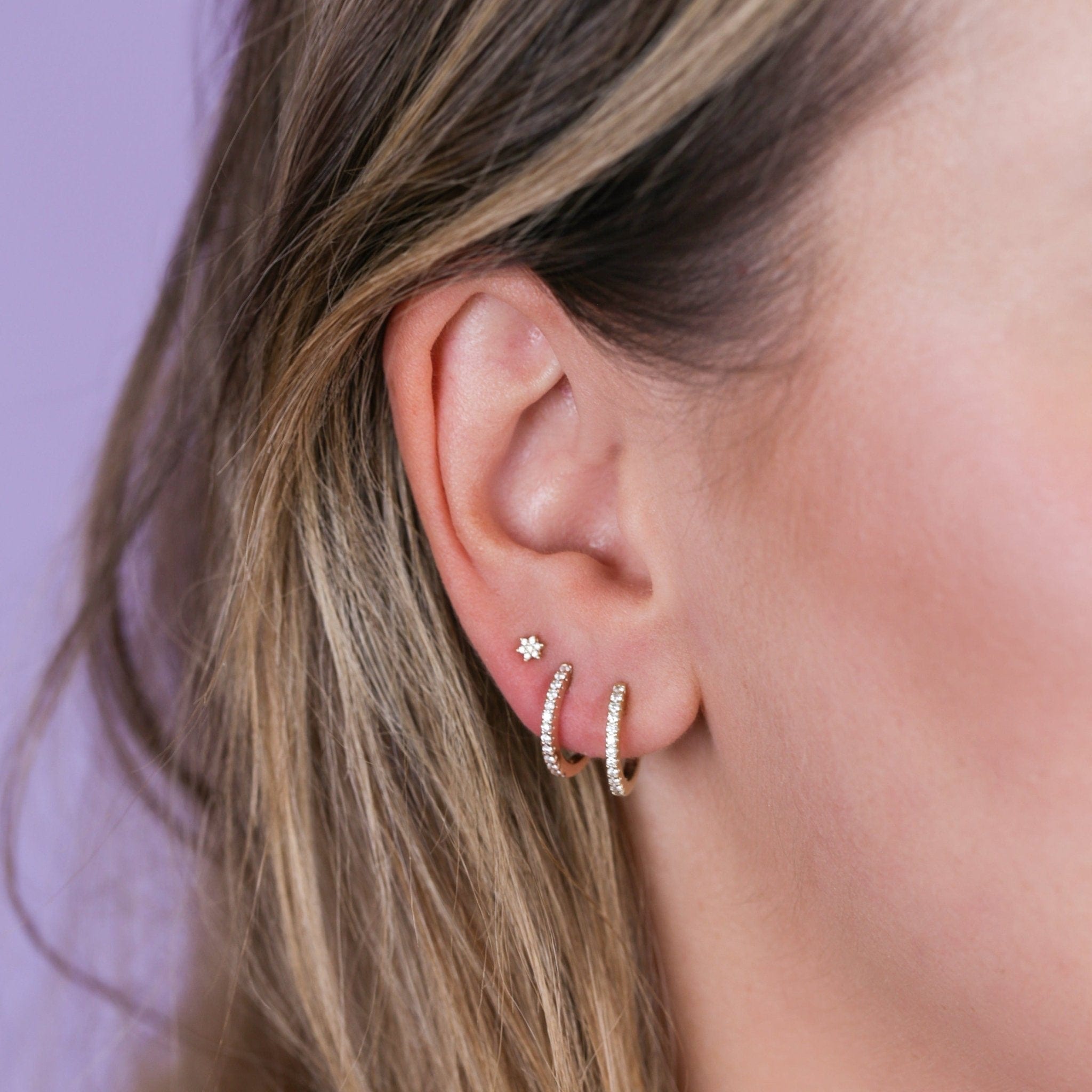 Unsere Ohrringe STELLINA - benannt nach der Verniedlichungsform des italienischen Vornamens Stella mit der Bedeutung "Stern" - besteht aus funkelnden Diamanten angeordnet in Sternenform und erinnert an strahlend-schöne Sterne am Nachthimmel und Deine Lieblingssternenkonstellationen. Der Mittelstein ist ein wundervoller Diamant in Brillantschliff und die Halosteine sind jeweils als wunderschöne Navetten eingeschliffen. Was ein BLISS! Die STELLINA Ohrringe leuchten nur für Dich - oder eine Person, die Du liebst. STELLINA sieht nicht nur an Dir wunderschön aus, sondern auch an Deinen Liebsten! STELLINA ist fantastisch für Groß und Klein!
