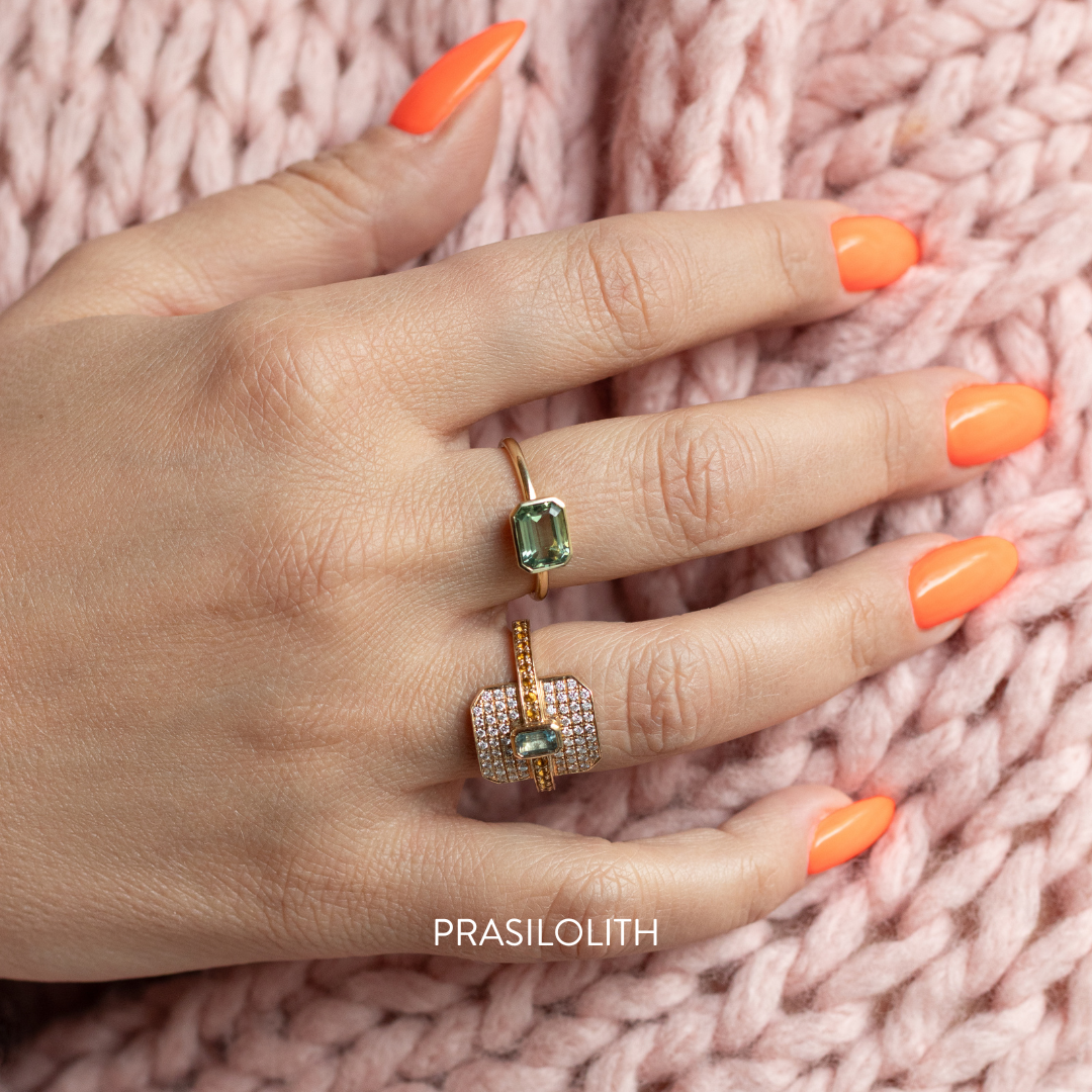 Wunderschöner Ring in den ich mich im Showroom direkt verliebt habe, obwohl ich im Online Shop immer drüber geblättert habe. Das strahlende grün fand ich einfach wundervoll. Inzwischen trage ich ihn fast immer und bin total happy mit meiner Wahl.