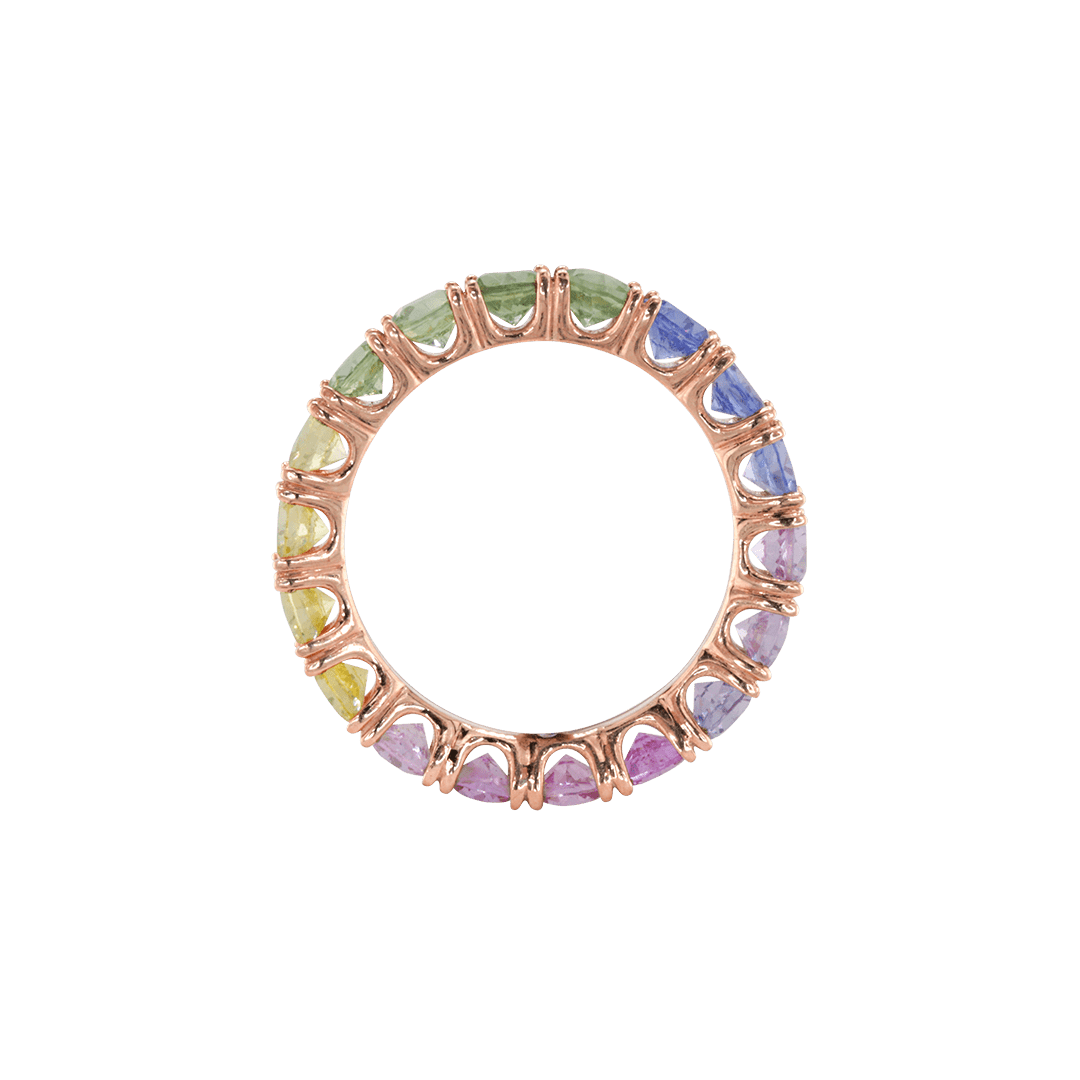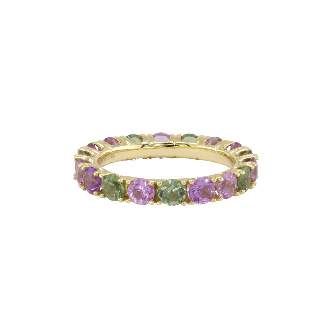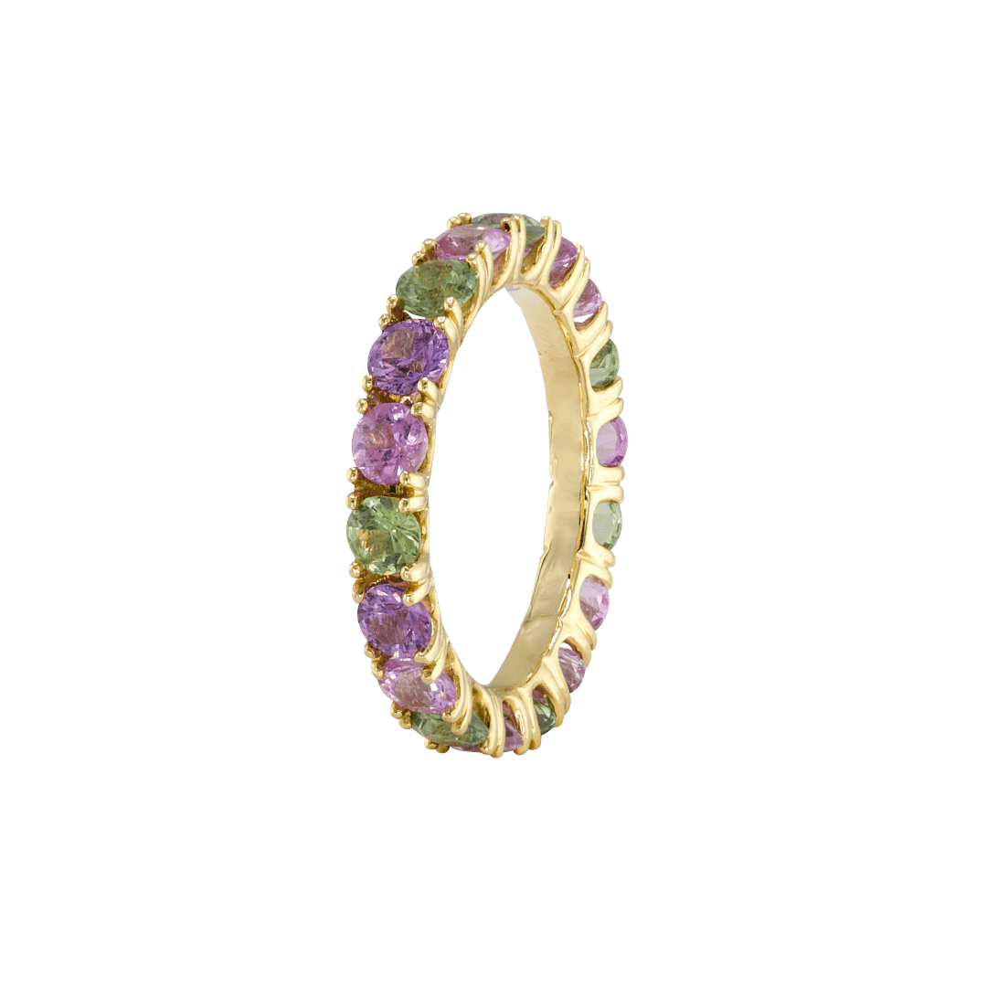 ASTER ist ein wahrer Traum in Pastell. Der Memoire-Ring mit pastellfarbenen Saphiren ist einfach ein Hingucker, und das nicht nur wegen der Größe der Steine, sondern auch wegen des Farbverlaufes und der offenen Fassung, die die Steine besonders schön strahlen lässt. Wir haben extra zwei verschiedene Farbwelten für Dich entworfen: Blush ähnelt einem pastelligen Regenbogen und hat einen sanften Farbverlauf von Gelbtönen über Rosatöne, von Lila- und Blautönen bis hin zu wunderschönen Grüntönen. Bloom hingegen besteht aus verschiedenen Lila- und Grüntönen, die super stylisch und chic aussehen.