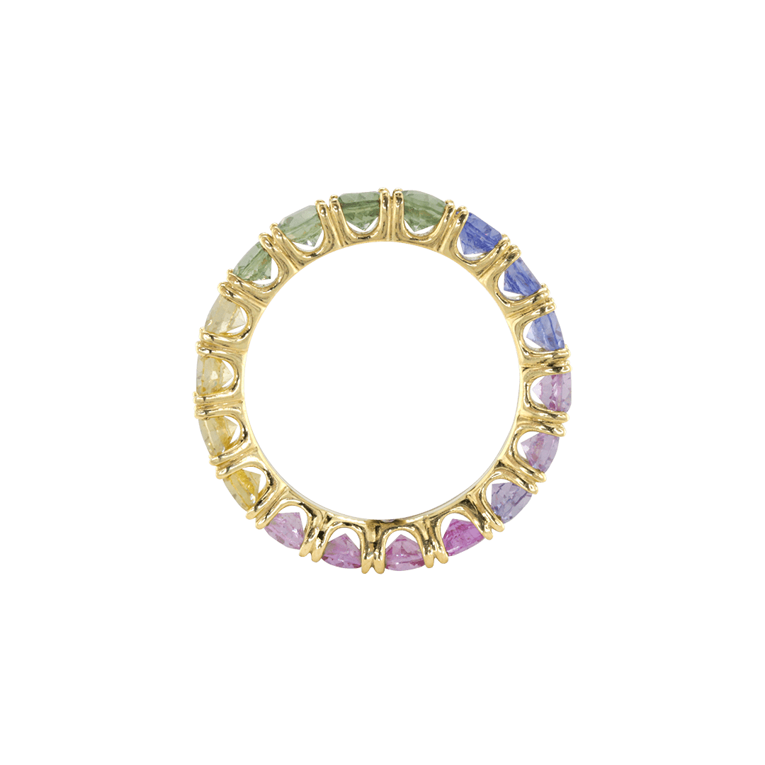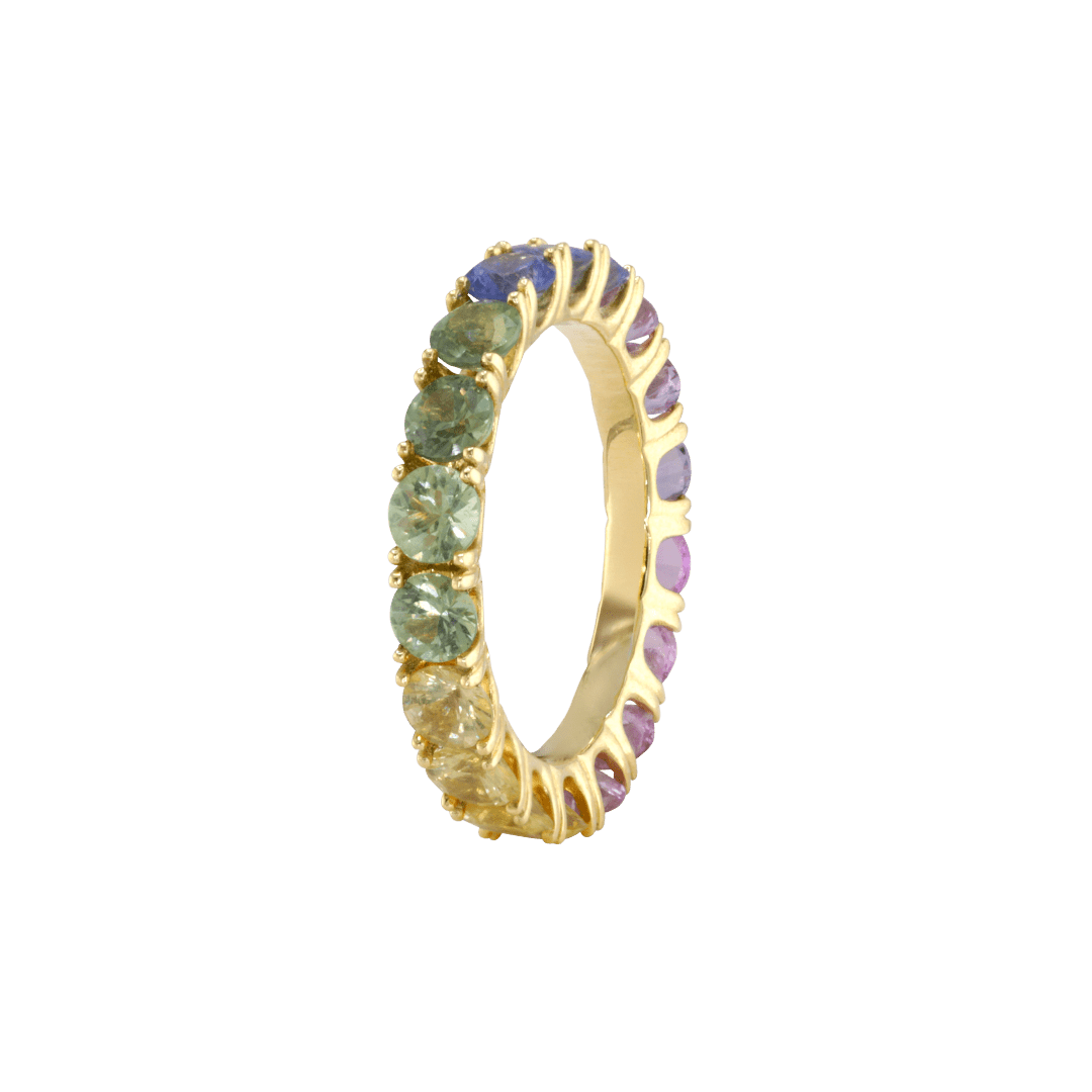 Goldener Memoirering mit Edelsteinen im Farbverlauf