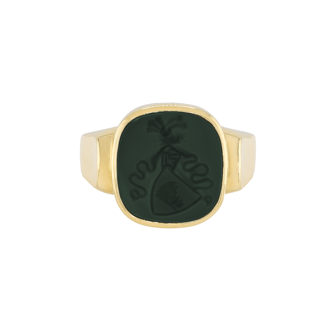 Egal für wen, durch seinen zeitlosen und eleganten Look wird CARLOS zu einem festen Bestandteil Deiner Schmucksammlung. Du kannst zwischen vier verschiedenen Siegelplatten wählen: der klassische schwarze Onyx, ein edel grüner Jaspis oder ein rosafarbener oder blauer Lagestein.
