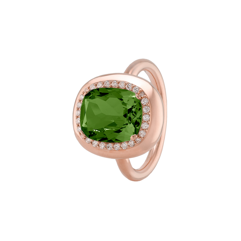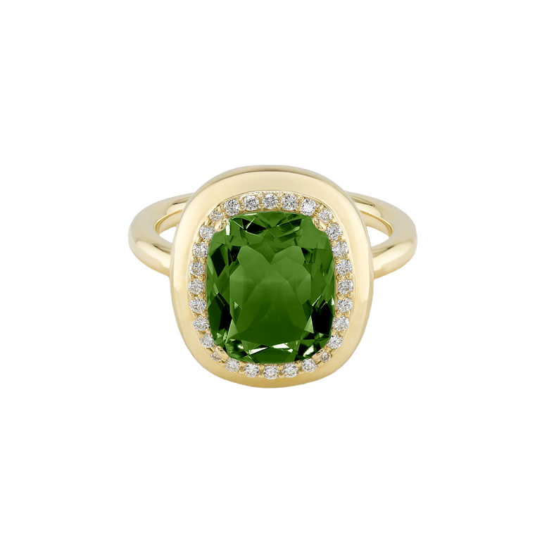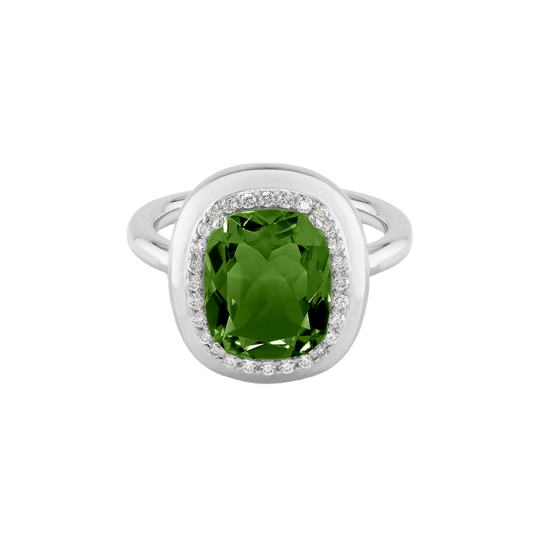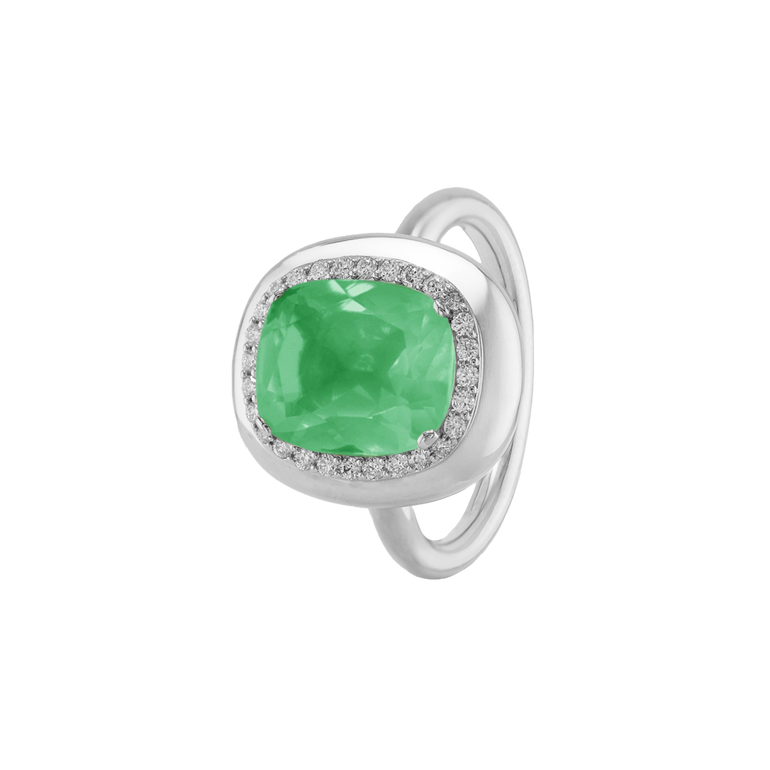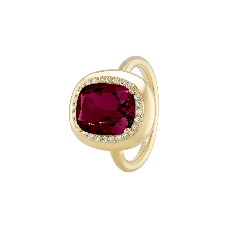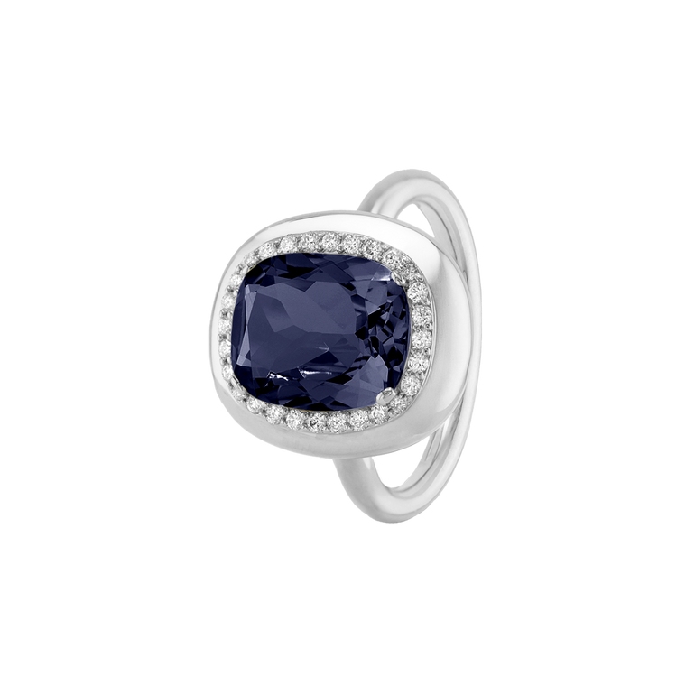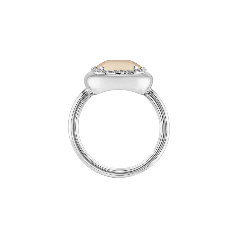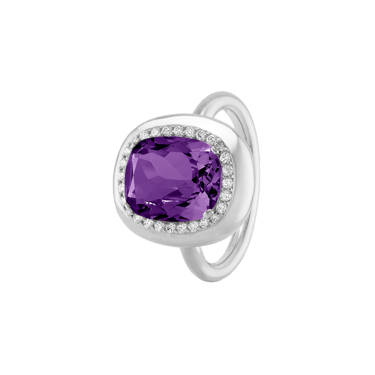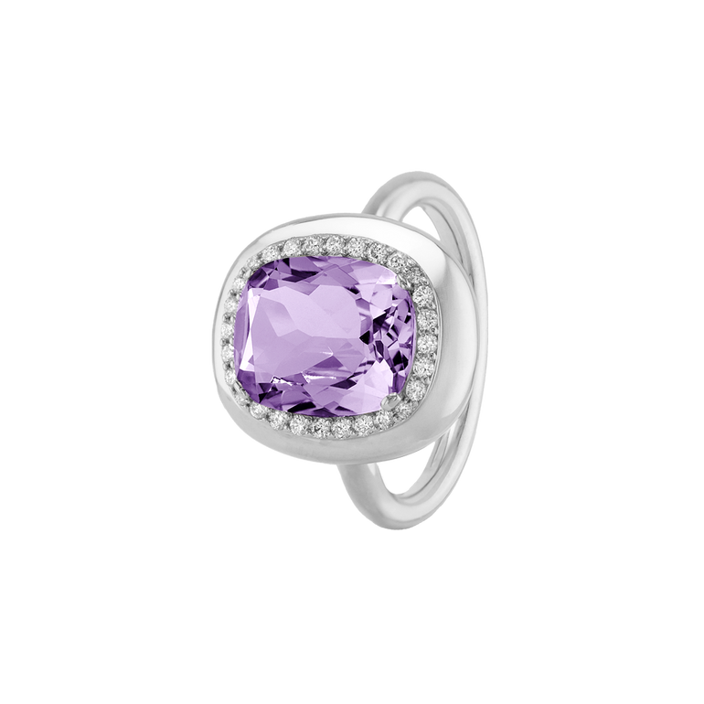 CLEMENTINE ist ein Ring, der sofort gute Laune macht. Der facettierte Mittelstein im Cushion Cut funkelt intensiv und wird von einem zarten Halo aus Brillanten umrahmt – wie Sonnenstrahlen, die das Licht einfangen.Das Design kombiniert klare Formen mit einem sanft abgerundeten Rahmen, wodurch CLEMENTINE zugleich klassisch und modern wirkt. Dieser Ring passt zum eleganten Kleid genauso wie zum unkomplizierten Alltagslook und sorgt immer für einen dezenten, aber unverkennbaren Look. Ob mit einem himmelblauen Topas, einem zartem Rosaquarz oder einem leuchtendem Madeira Citrin: Jeder Edelstein CLEMENTINE erzählt Deine eigene Geschichte – leicht, lebendig und voller Strahlkraft.CLEMENTINE ist kein Schmuckstück, das man einfach trägt. CLEMENTINE ist ein kleiner Moment von Glanz – Tag für Tag. Der Ring kann wunderbar mit GRACE, MALALA, TIFFI oder unserem Bestsellern ASTRONOMIC SAPPHIRES und SISSI kombiniert werden.