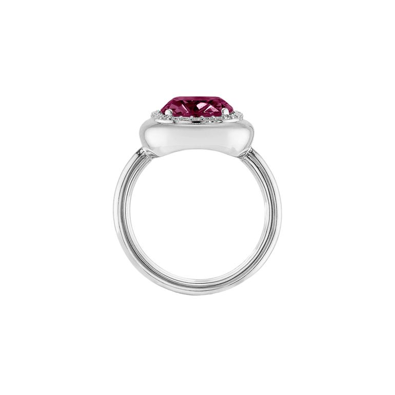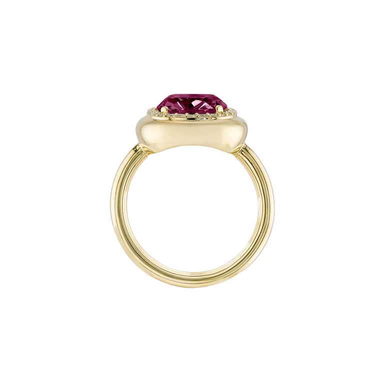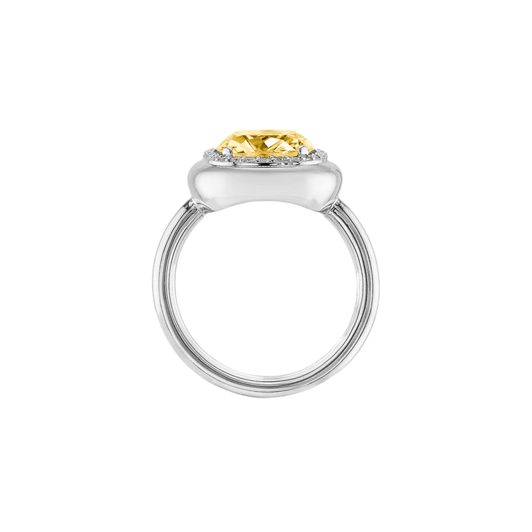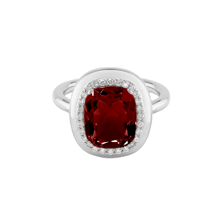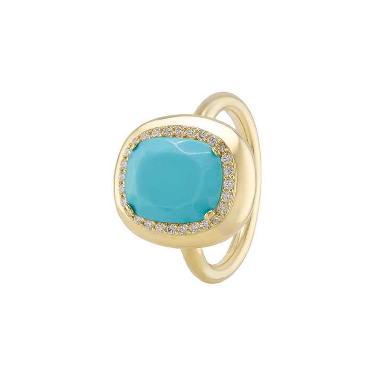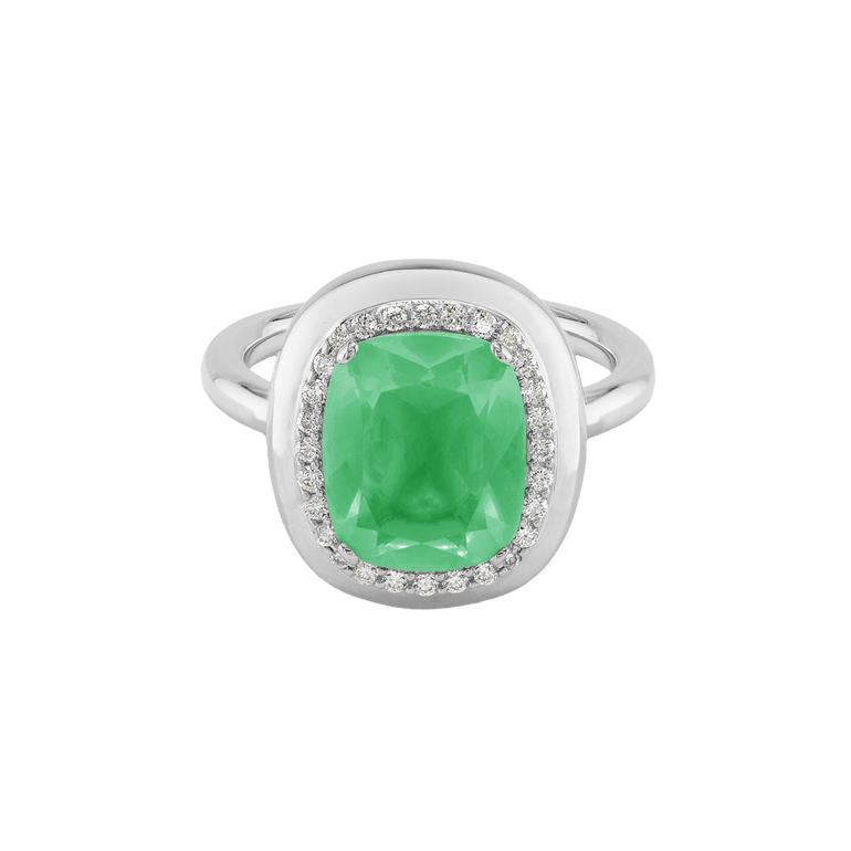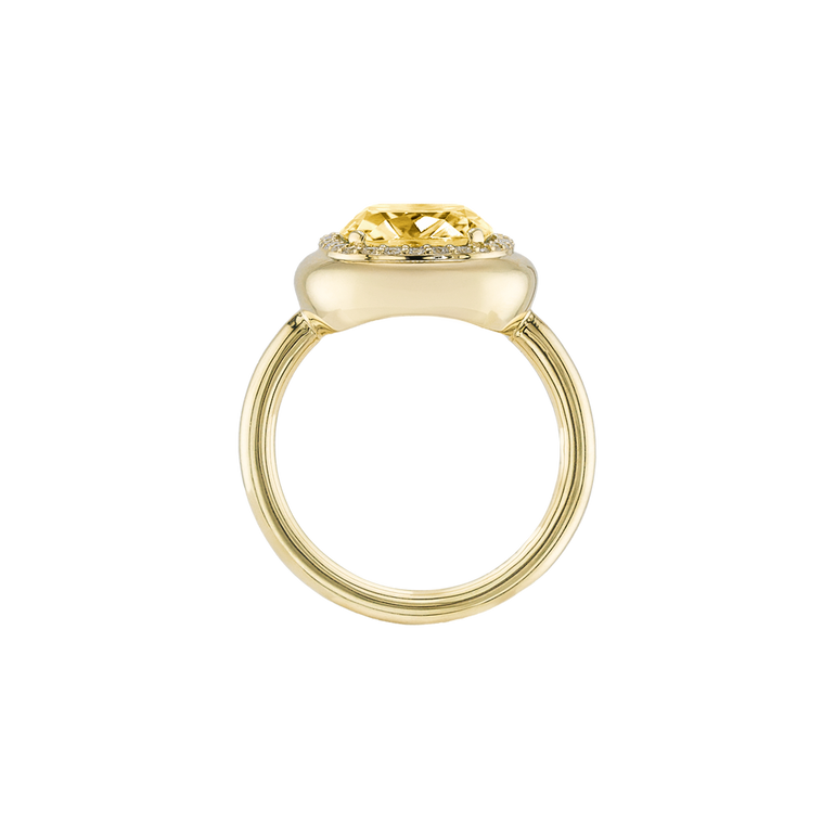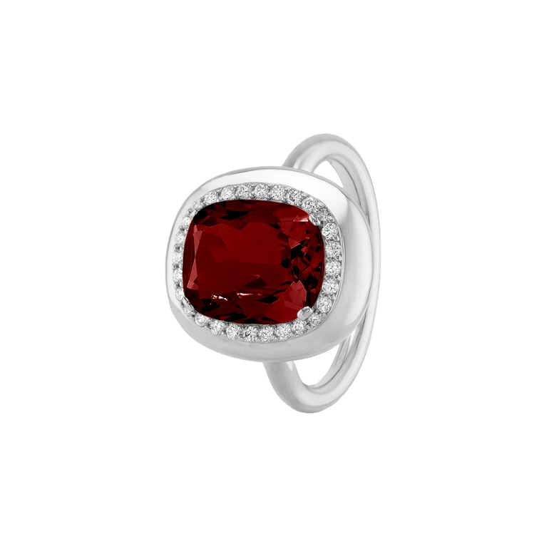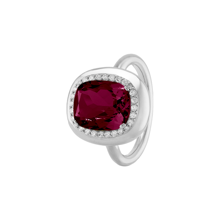 CLEMENTINE ist ein Ring, der sofort gute Laune macht. Der facettierte Mittelstein im Cushion Cut funkelt intensiv und wird von einem zarten Halo aus Brillanten umrahmt – wie Sonnenstrahlen, die das Licht einfangen.Das Design kombiniert klare Formen mit einem sanft abgerundeten Rahmen, wodurch CLEMENTINE zugleich klassisch und modern wirkt. Dieser Ring passt zum eleganten Kleid genauso wie zum unkomplizierten Alltagslook und sorgt immer für einen dezenten, aber unverkennbaren Look. Ob mit einem himmelblauen Topas, einem zartem Rosaquarz oder einem leuchtendem Madeira Citrin: Jeder Edelstein CLEMENTINE erzählt Deine eigene Geschichte – leicht, lebendig und voller Strahlkraft.CLEMENTINE ist kein Schmuckstück, das man einfach trägt. CLEMENTINE ist ein kleiner Moment von Glanz – Tag für Tag. Der Ring kann wunderbar mit GRACE, MALALA, TIFFI oder unserem Bestsellern ASTRONOMIC SAPPHIRES und SISSI kombiniert werden.