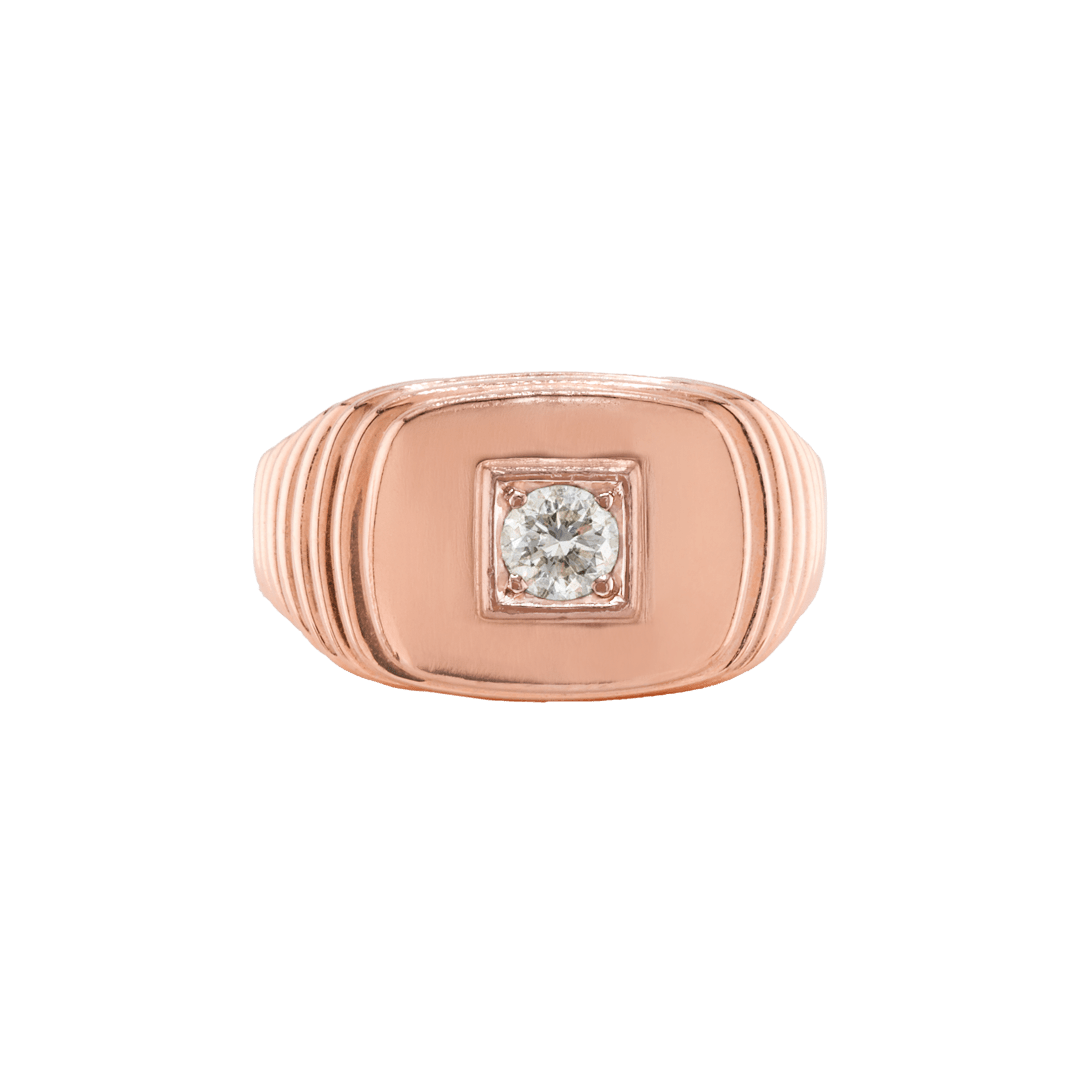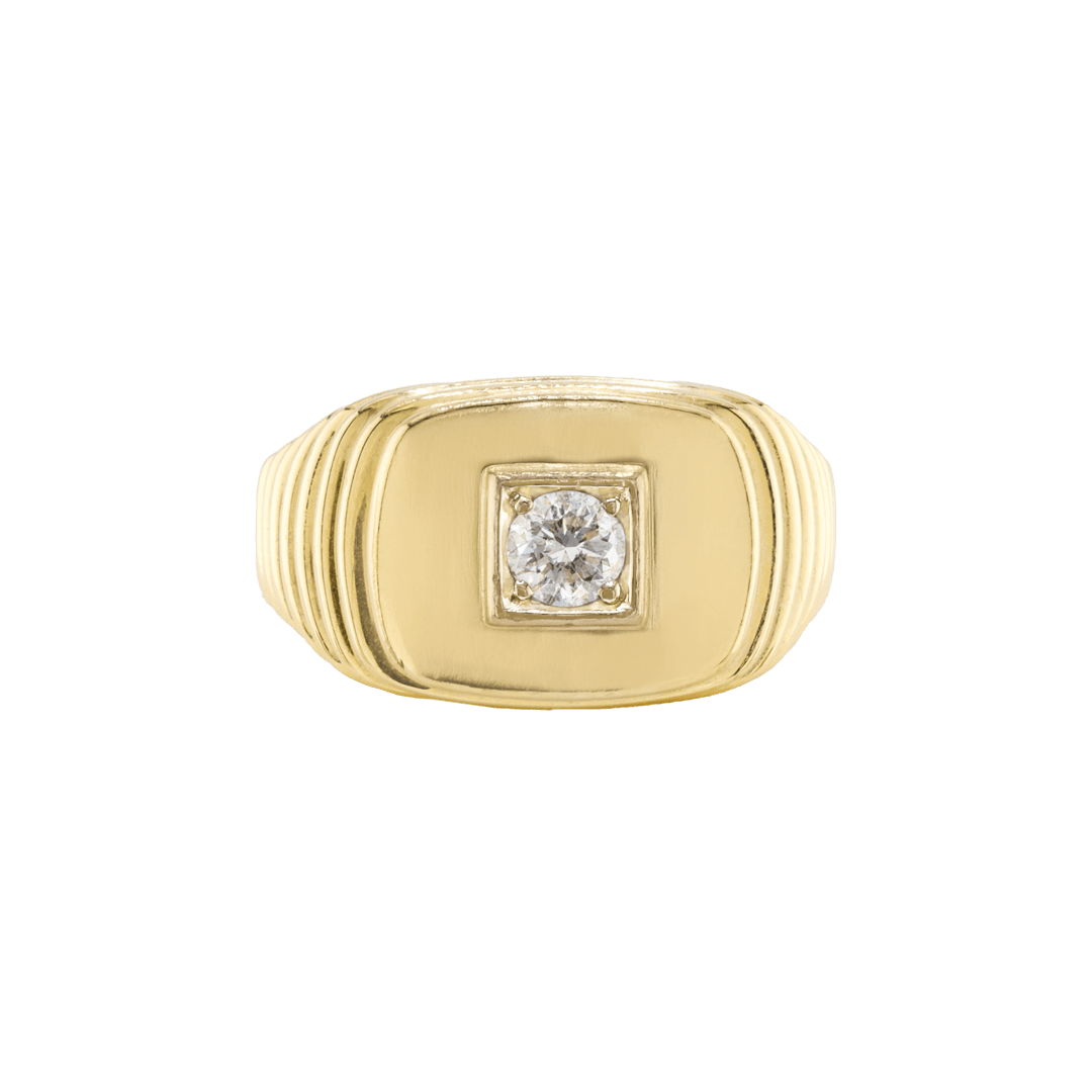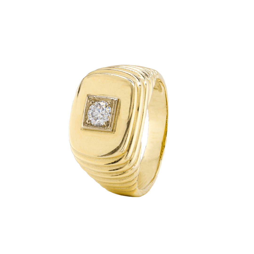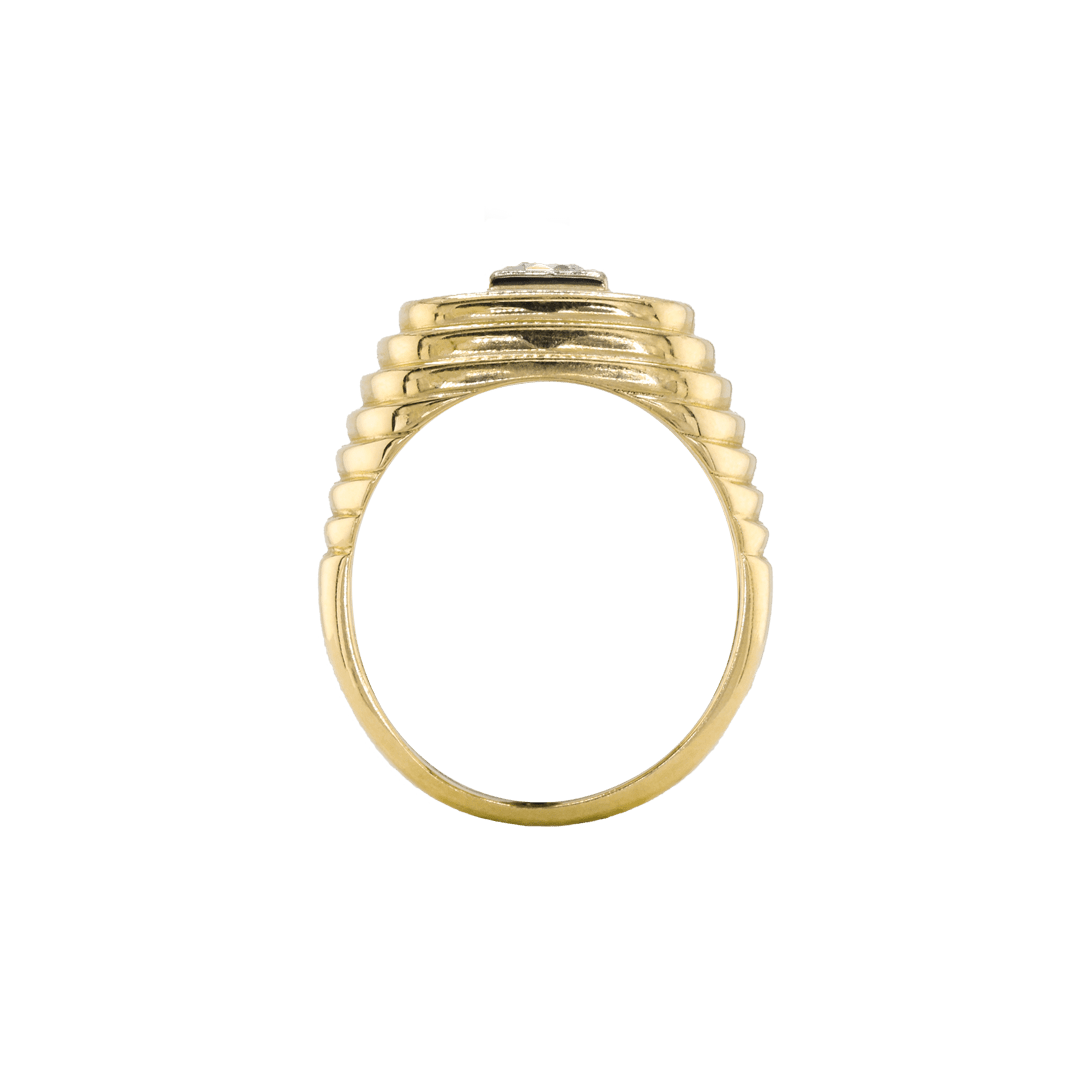 Unser Ring GERTRUDE ist eine Hommage an zeitlose Eleganz und Charakterstärke. Sein markantes Design vereint kraftvolle Linien mit einem luxuriösen Brillanten, der in einem quadratischen, präzise gefassten Rahmen im Zentrum des Rings funkelt. Gefertigt aus hochwertigem, recyceltem Echtgold, verleiht die strukturierte Oberfläche dem Ring eine edle Raffinesse, die auf den ersten Blick überzeugt.