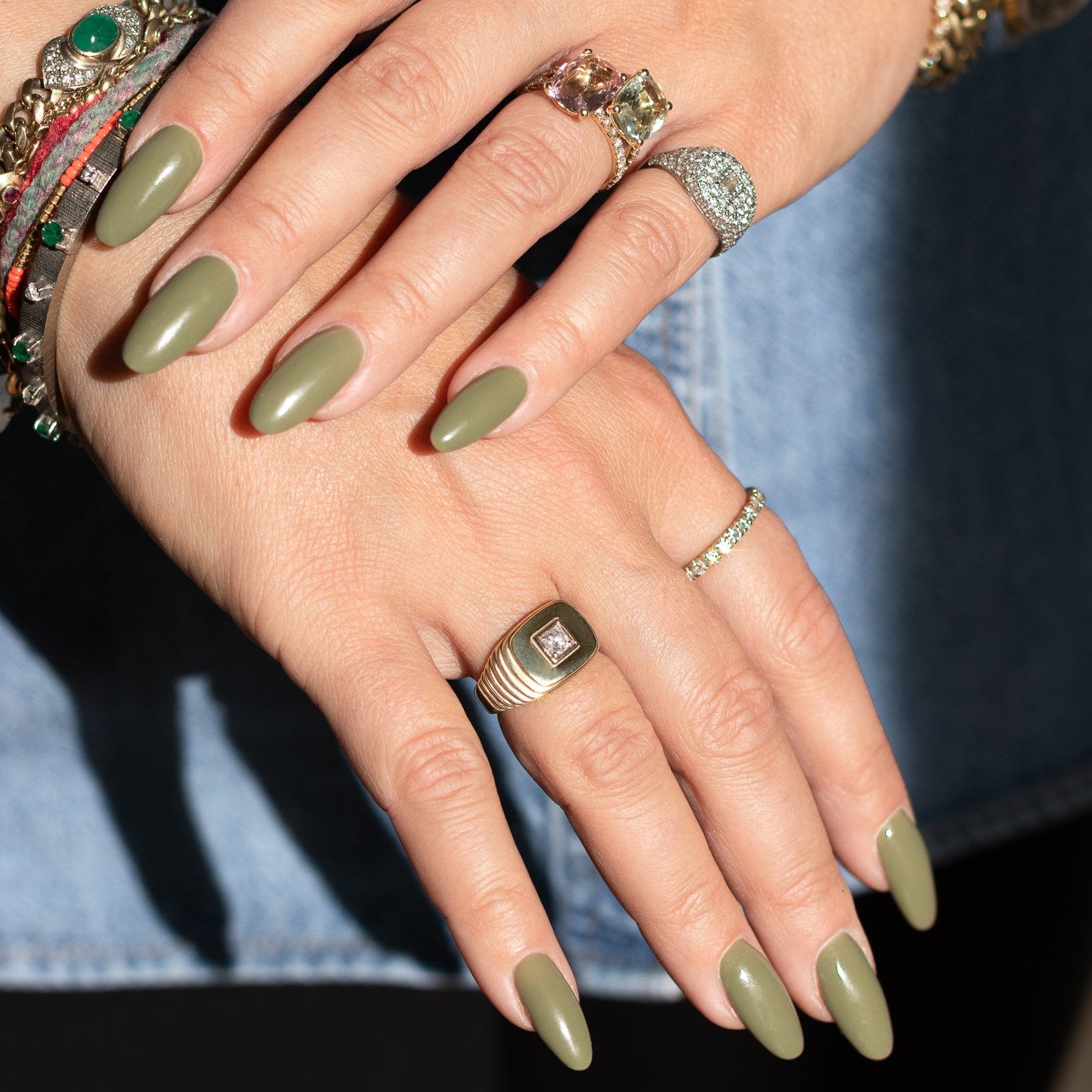 Deine GERTRUDE wird jedem Deiner Outfits eine außergewöhnliche Note verleihen und dabei stets für einen unvergesslichen Auftritt sorgen. Auch macht sich GERTRUDE wunderbar im Stacking mit unseren Ringen VALENTINA und JADA. Besonders der herzförmige, apfelgrüne Chrysopras von JADA schafft einen aufregenden Farbkontrast zum klassischen Brillanten.