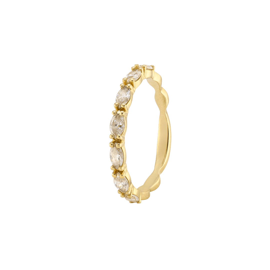 Mit 7 Diamanten im Marquise- Schliff, die nur so um die Wette funkeln, ist KATIE wirklich ein Traumring! Ob zu Deinem Ehering kombiniert oder ultra lässig zu unseren bunten BOBBYs, KATIE ist zeitlos, klassisch und doch modern und einer der einzigartigsten Ringe unseres Sortimentes. KATIE ist von unserer Gründerin Franzi von Hardenberg als Verlobungs- oder Vorsteckring entworfen worden, lässt sich aber von Dir auch ohne weitere Begleitung auf dem Zeigefinger oder Mittelfinger tragen.