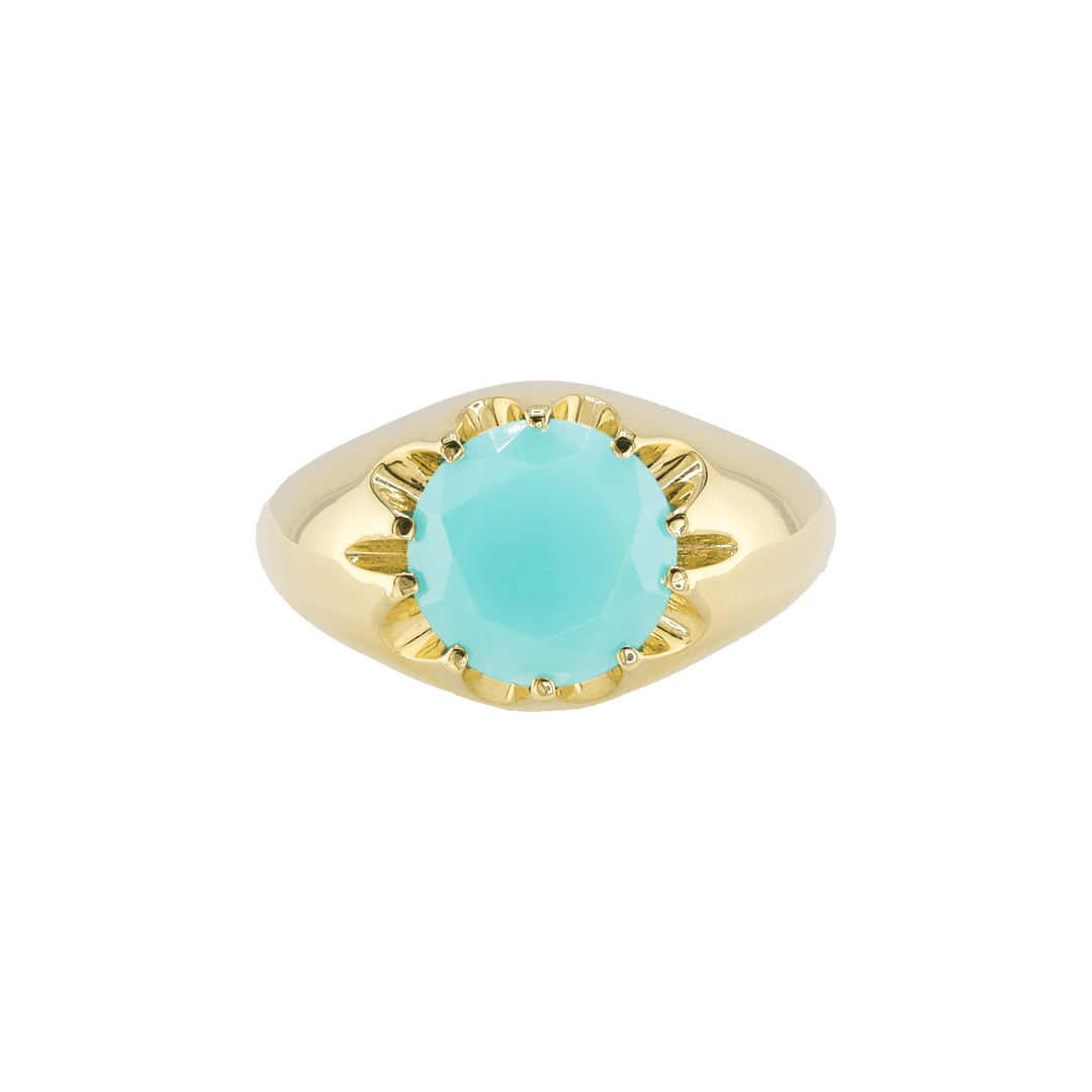 MALALA Pure ist ein puristisches, goldenes Statement und entfaltet dank seines einzigartigen Flowercuts seine Strahlkraft. Er setzt durch die verschiedenen Mittelsteine und die bolde Ringschiene ein Zeichen von Kraft und Stärke. Die strahlenden Edelsteine werden von 10 Krappen gehalten. Als super klassisches Highlight, lässt sich MALALA Pure wunderschön alleine tragen und fügt sich elegant in all Deine Outfits ein! Unser Ring MALALA Pure ist ein ganz besonderes Schmuckstück für die Ewigkeit.