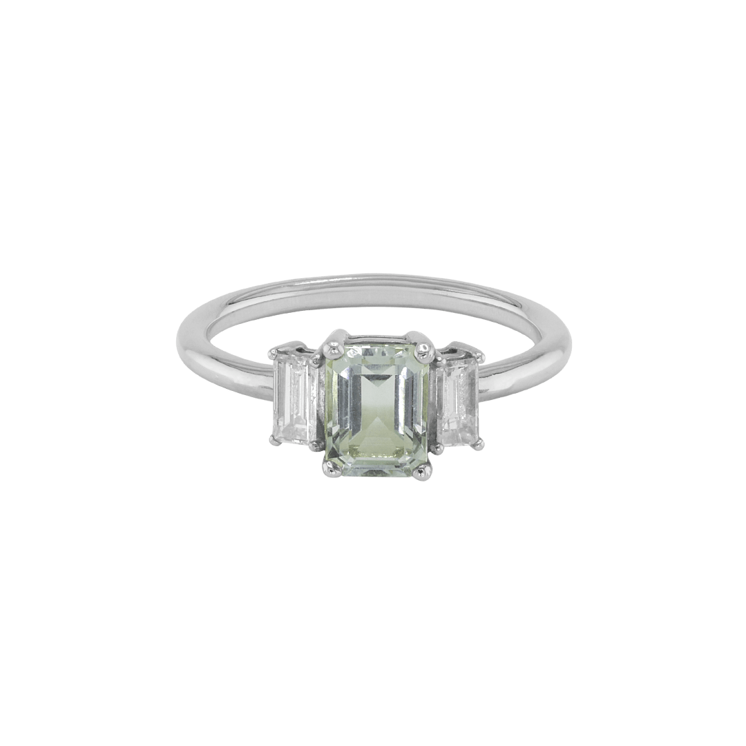 Oh Ophelia! Was bist du für ein zauberhaftes Schmuckstück. Anmutig, elegant, klassisch und sinnlich. Der Mittelstein im Emerald Cut wird eingerahmt von zwei wunderschönen Diamant Baguetten, die zusammen um die Wette funkeln. Das sanfte Grün des Prasiolith wirkt harmonisch und königlich, während der Goldcitrin mit der Sonne nur so um die Wette strahlt. OPHELIA steht einem reinen Diamantring in nichts nach, dabei ist die Form so besonders, dass es Dir einfach Freude machen wird, ihn zu tragen. OPHELIA, wie schön, dass Du ein Teil von uns bist und alle mit deiner schlichten Schönheit verzaubern wirst.