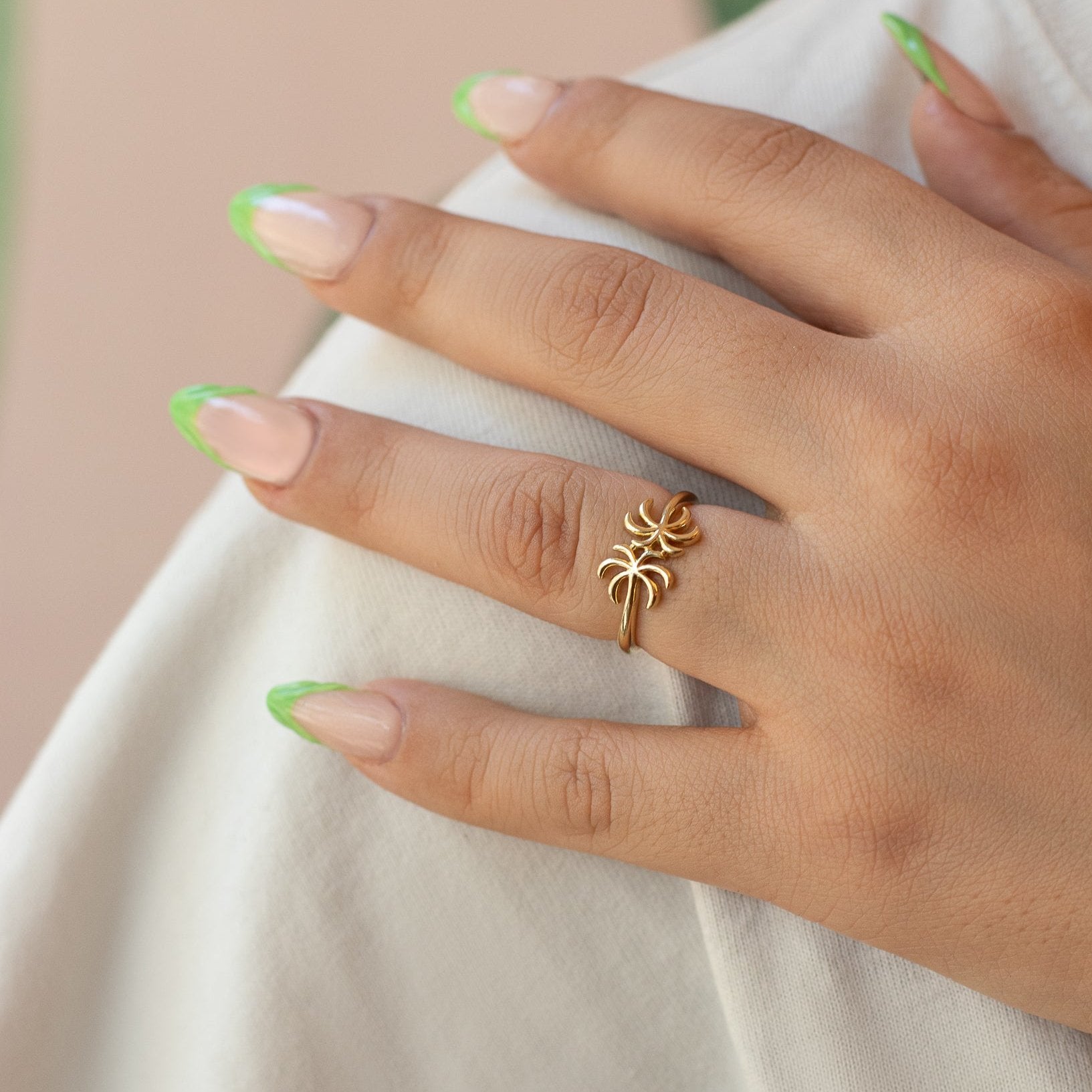 Unser Ring PALMY trägt das ikonische Symbol von The SISS BLISS – die Palme – und ist nach dieser benannt. Dieses zarte Schmuckstück verkörpert die entspannte Leichtigkeit tropischer Inseln und bringt ein Stück Sommer in Deinen Alltag. Gefertigt aus hochwertigem Material, ist der PALMY Ring ein perfekter Begleiter, der subtile Eleganz und einen Hauch von Exotik vereint.