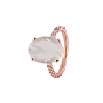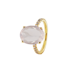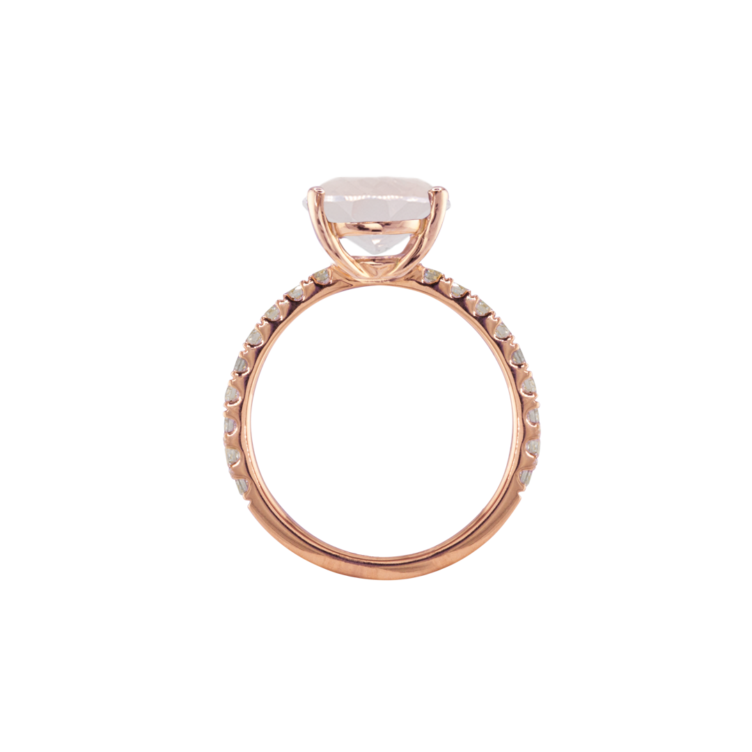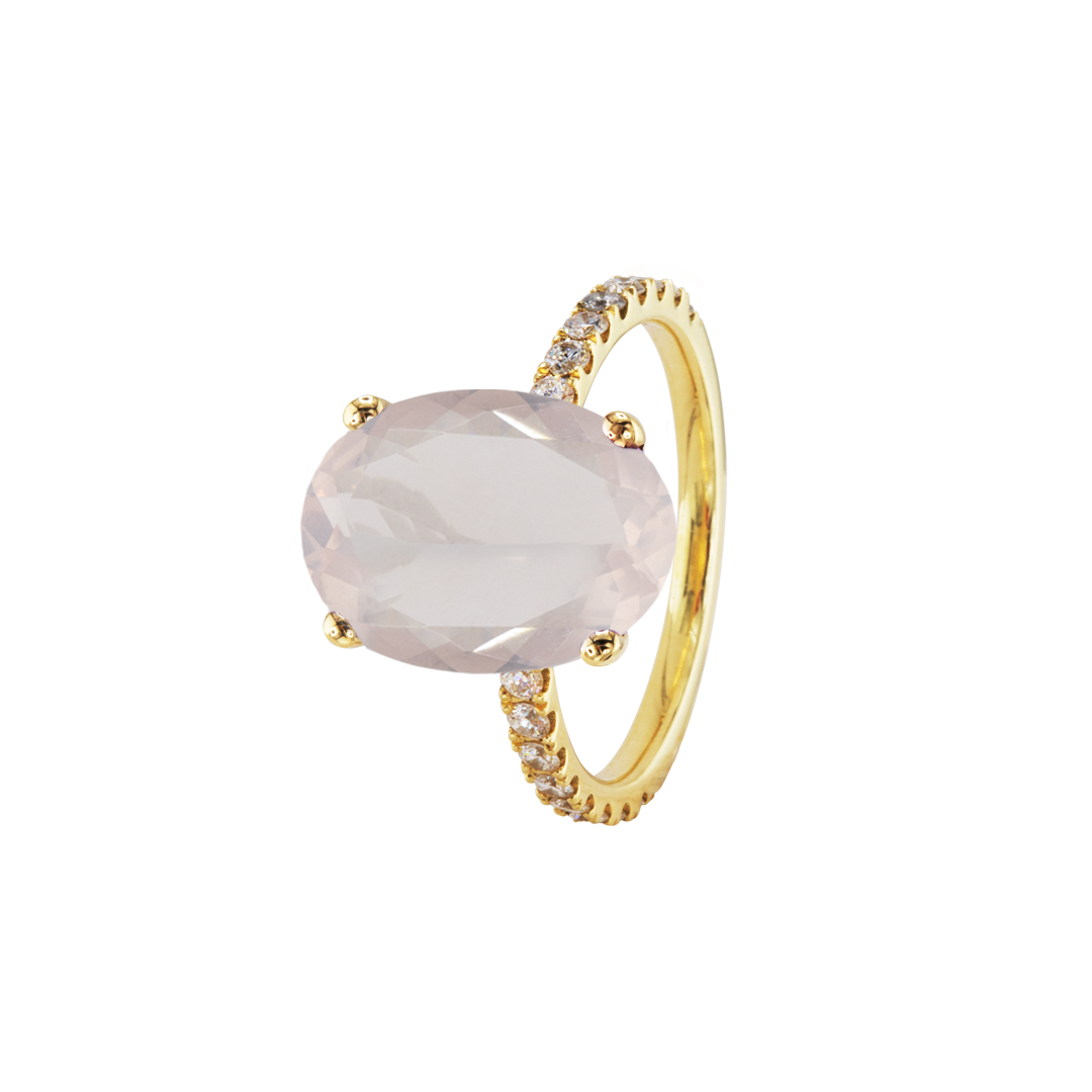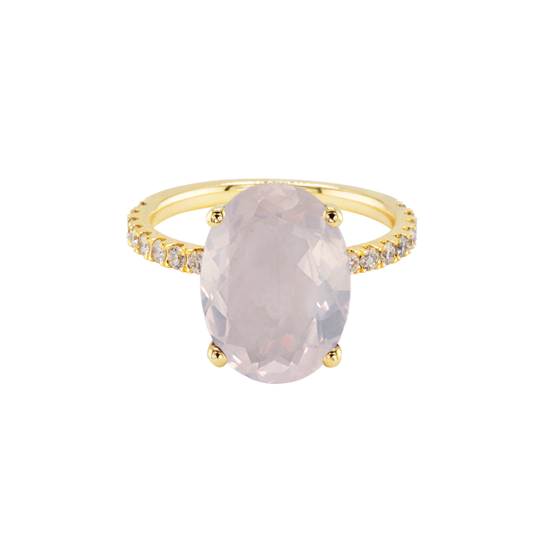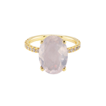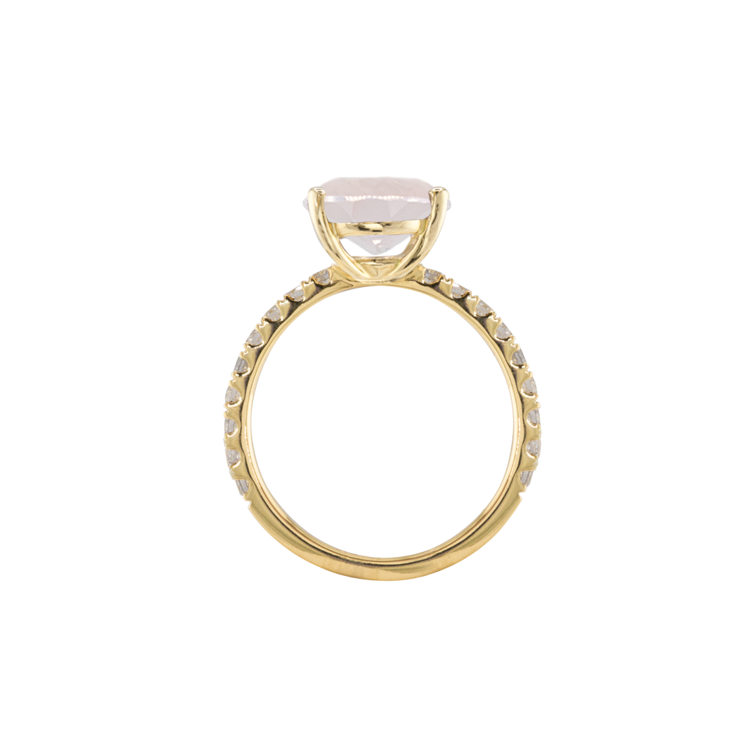 Goldener Ring mit Edelstein im Oval Cut und diamantbesetzter Ringschiene