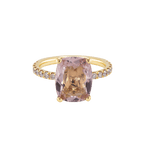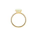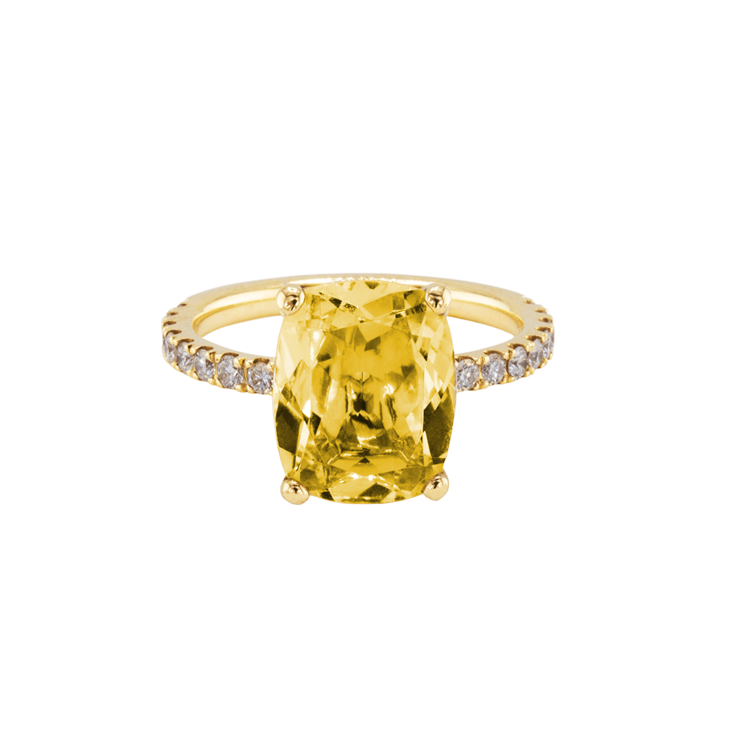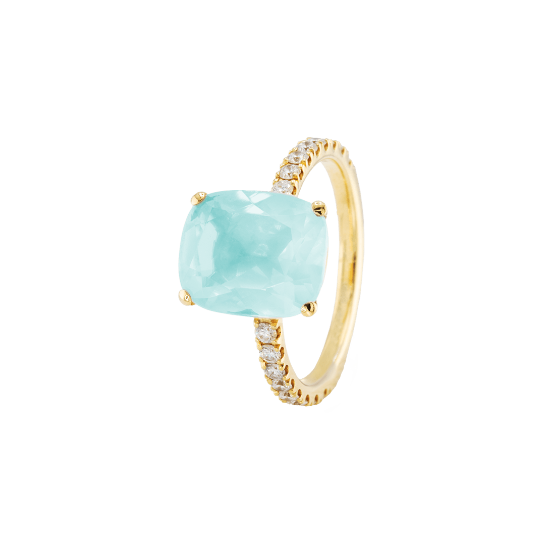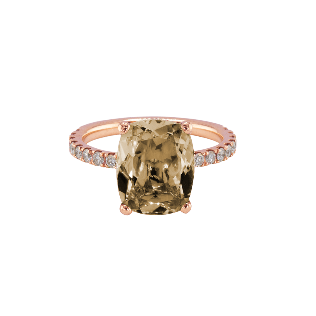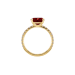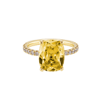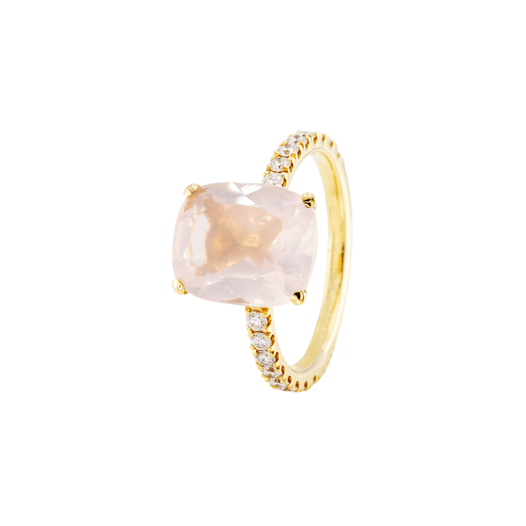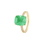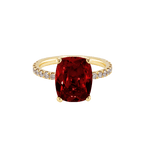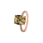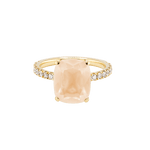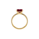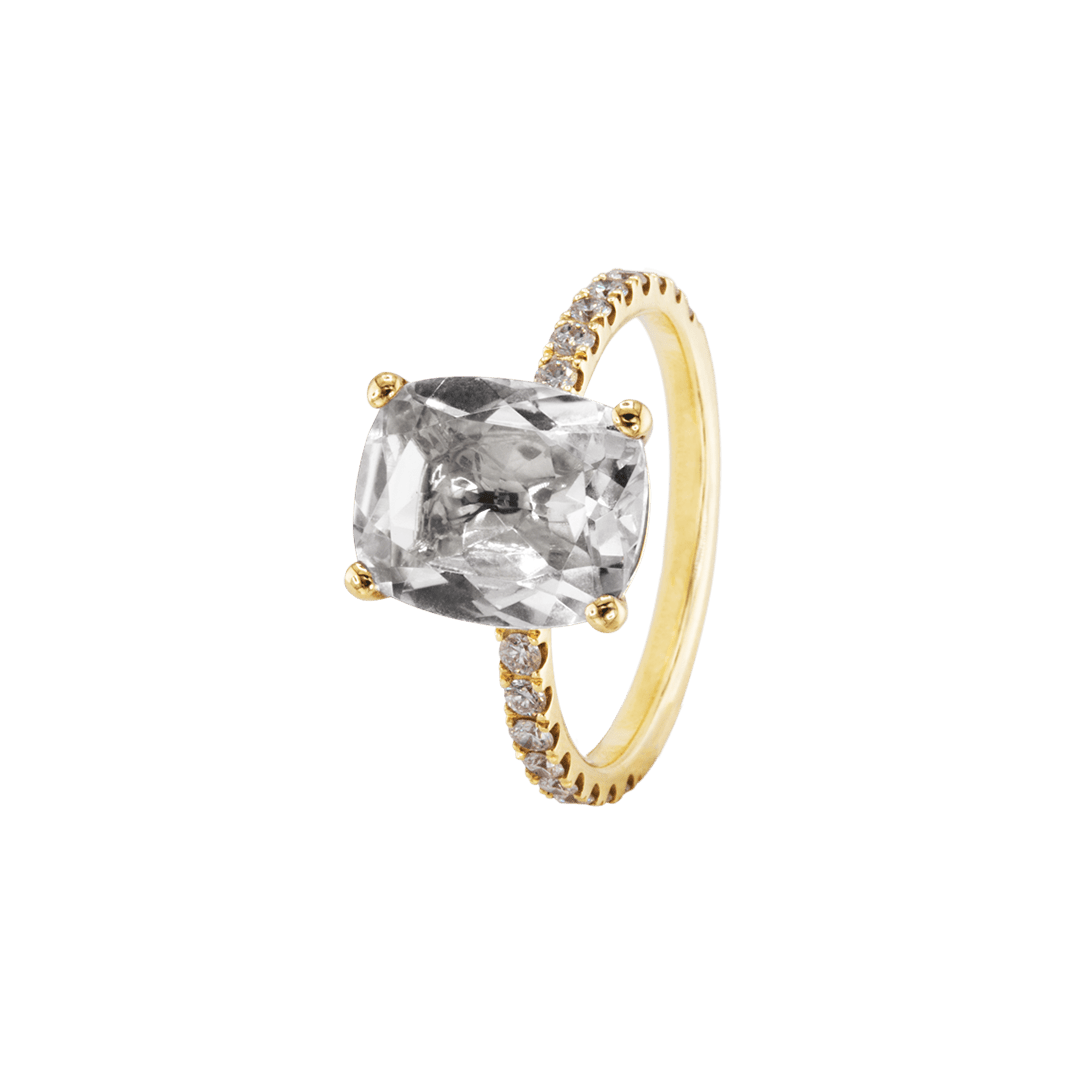 Goldener Ring mit Edelstein im Cushion Cut und diamantbesetzter Ringschiene