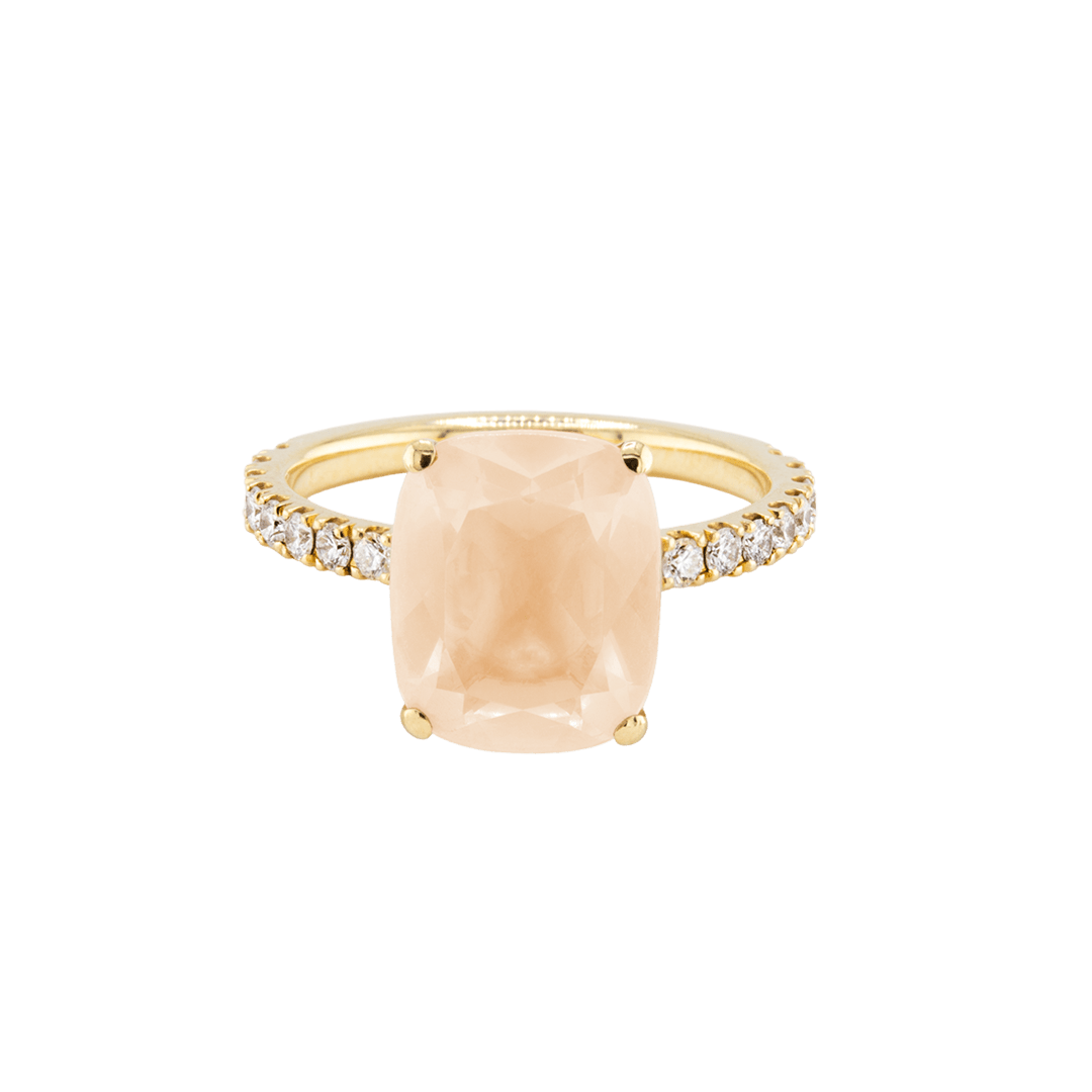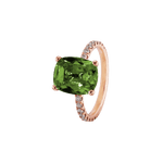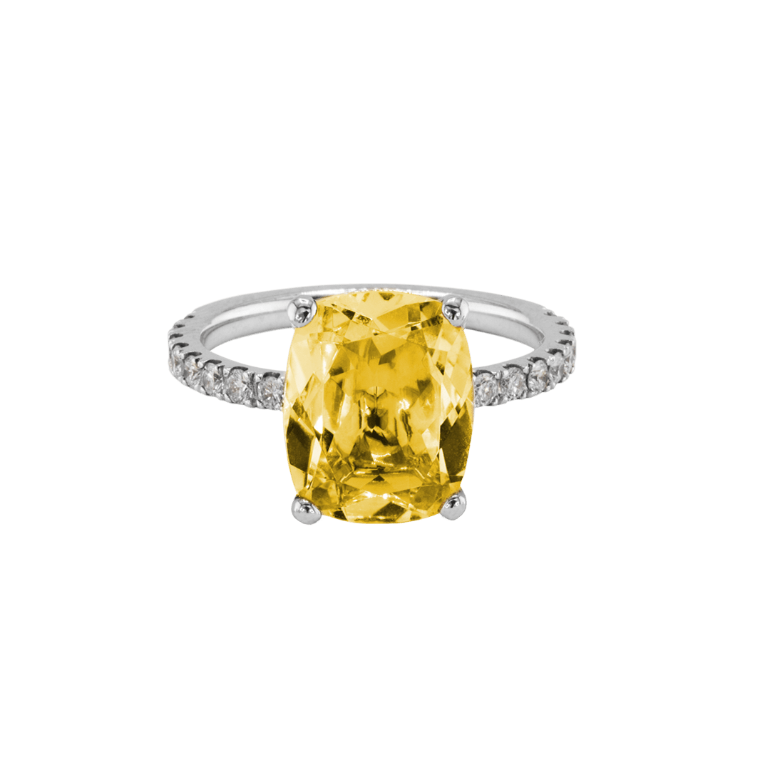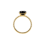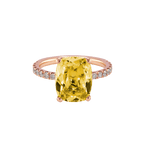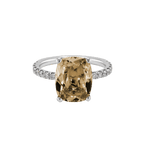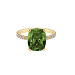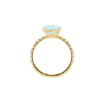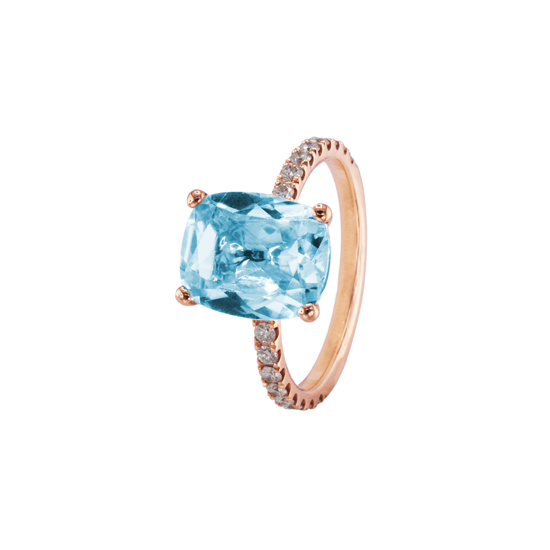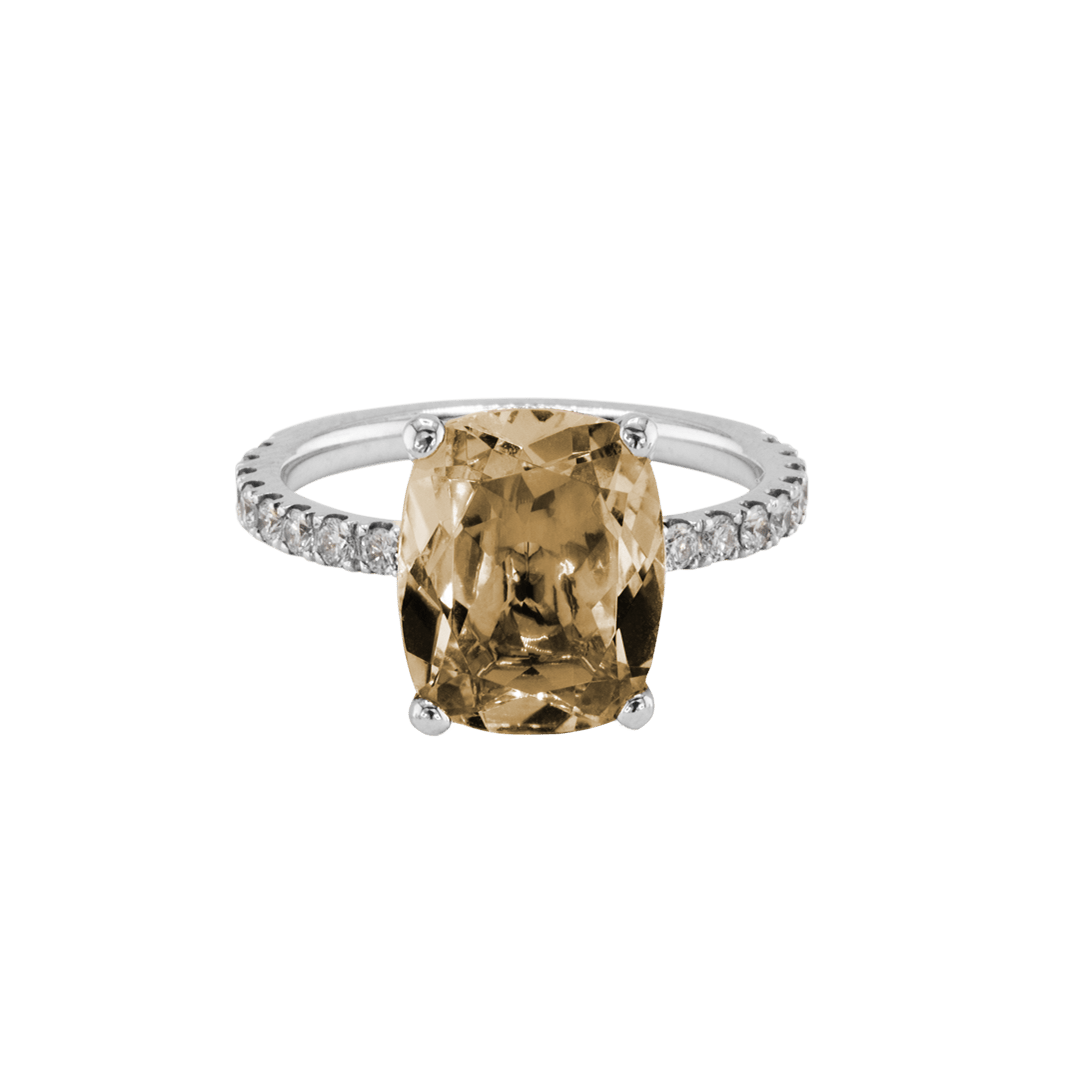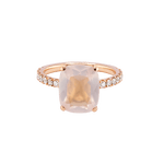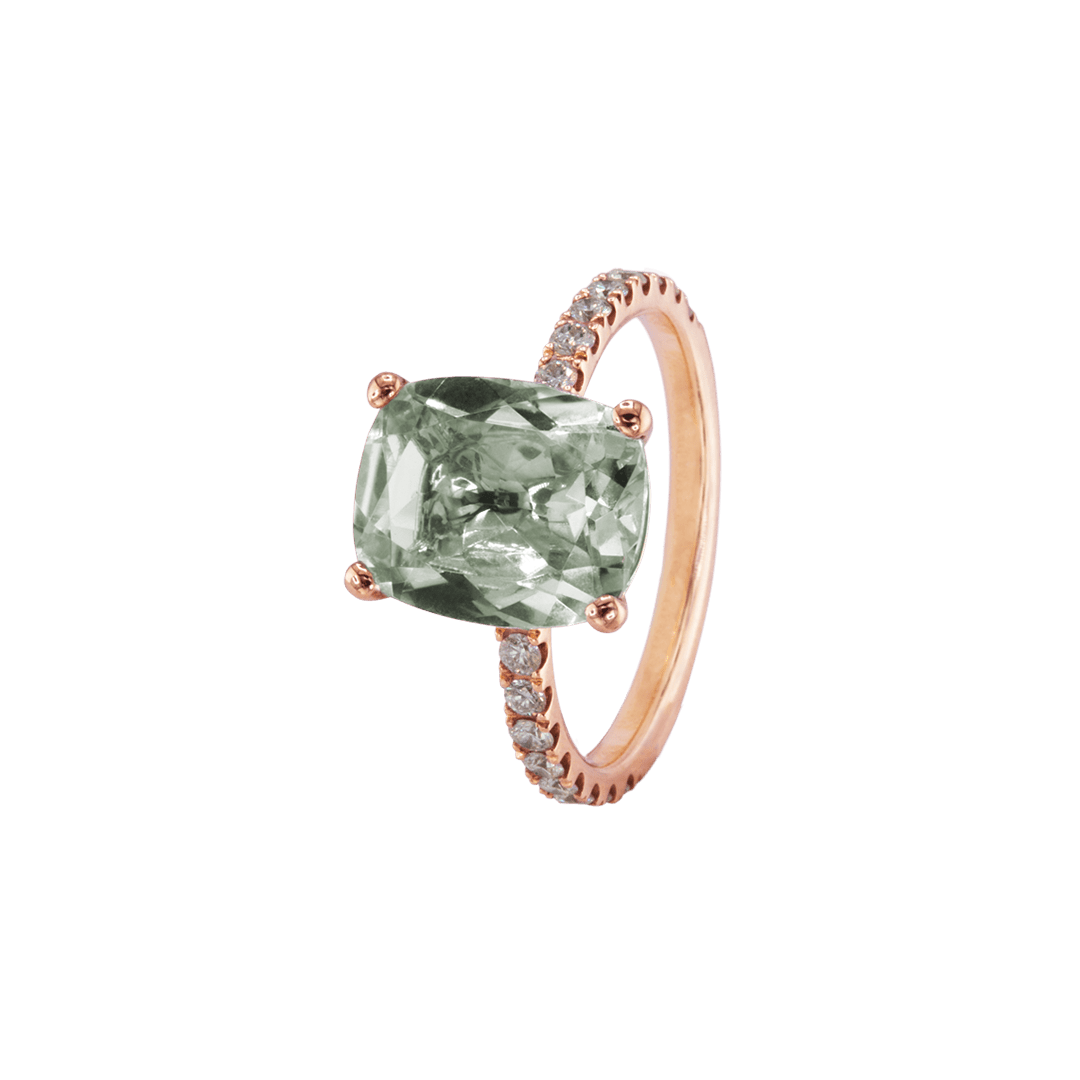 Goldener Ring mit Edelstein im Cushion Cut und diamantbesetzter Ringschiene