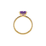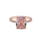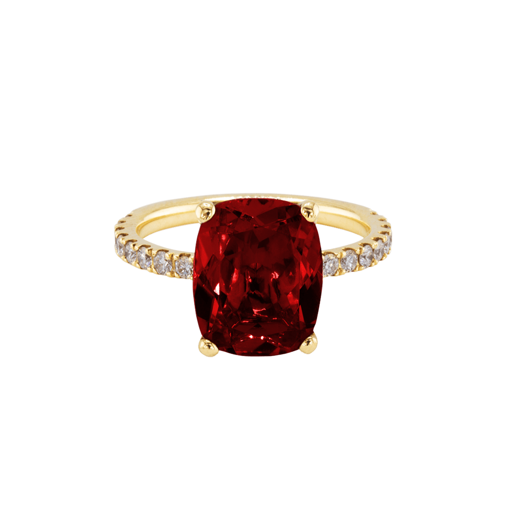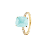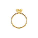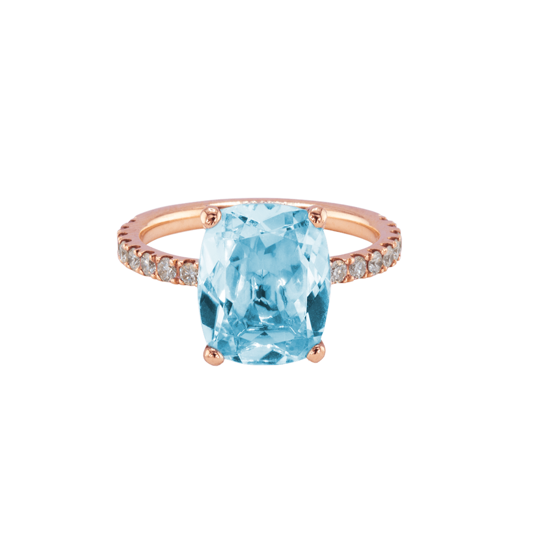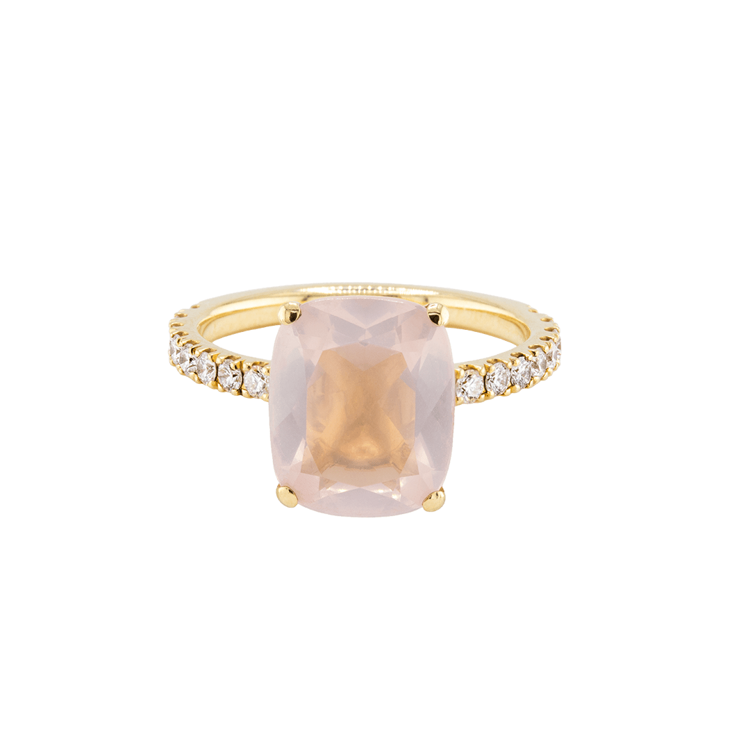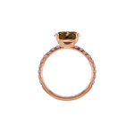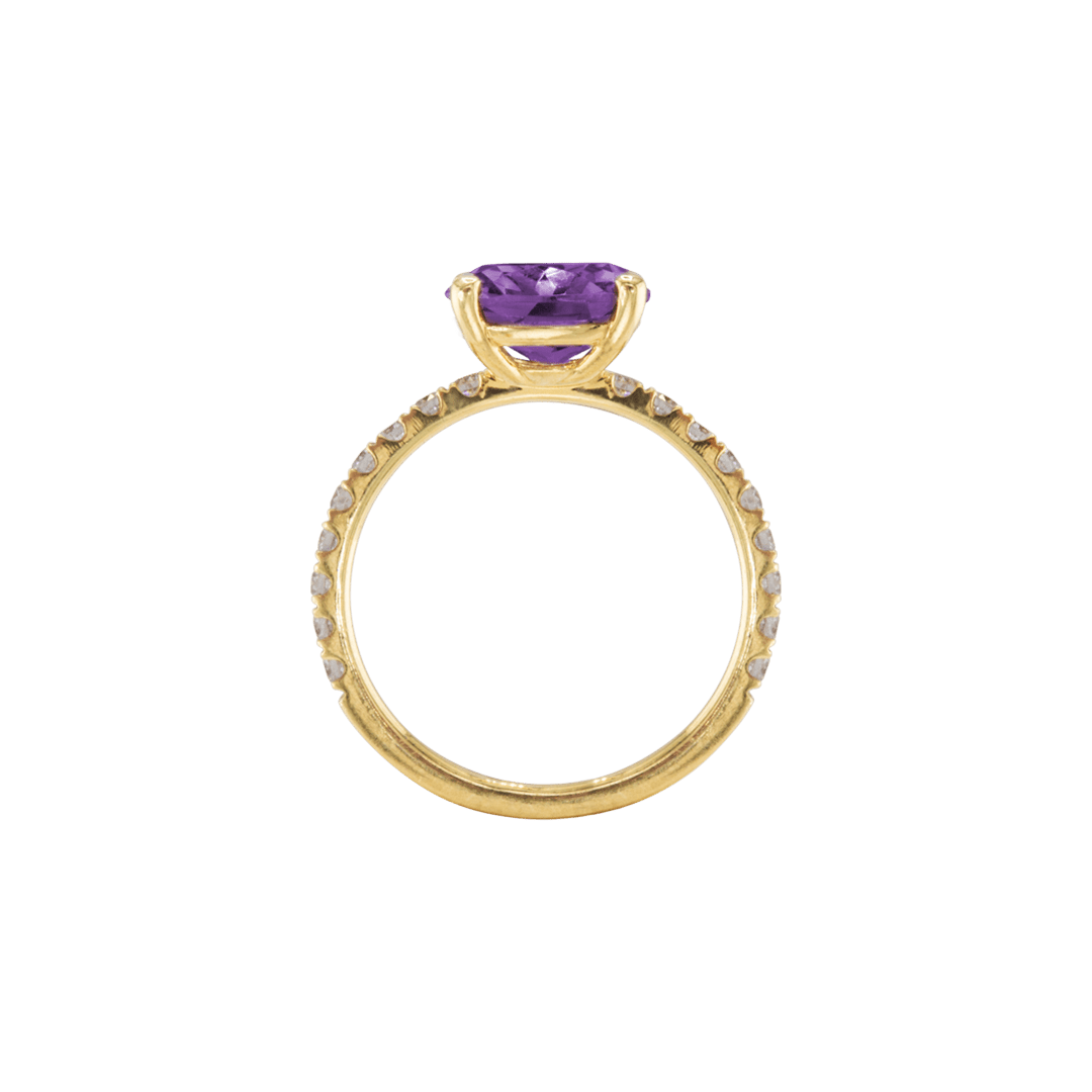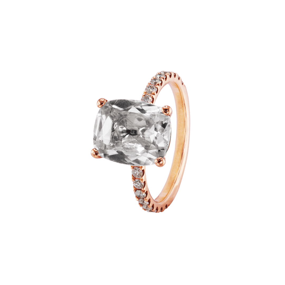 Goldener Ring mit Edelstein im Cushion Cut und diamantbesetzter Ringschiene