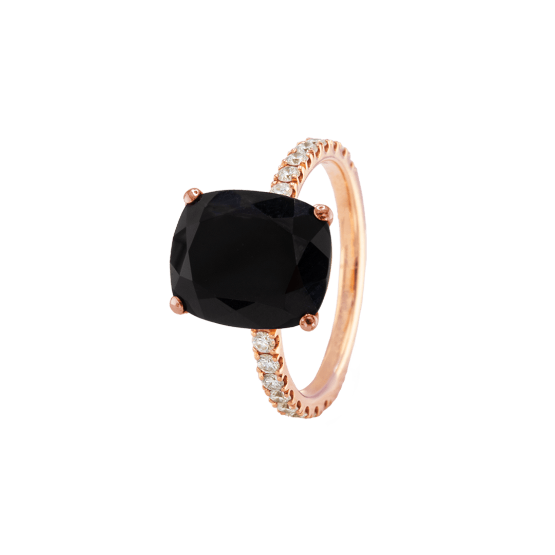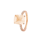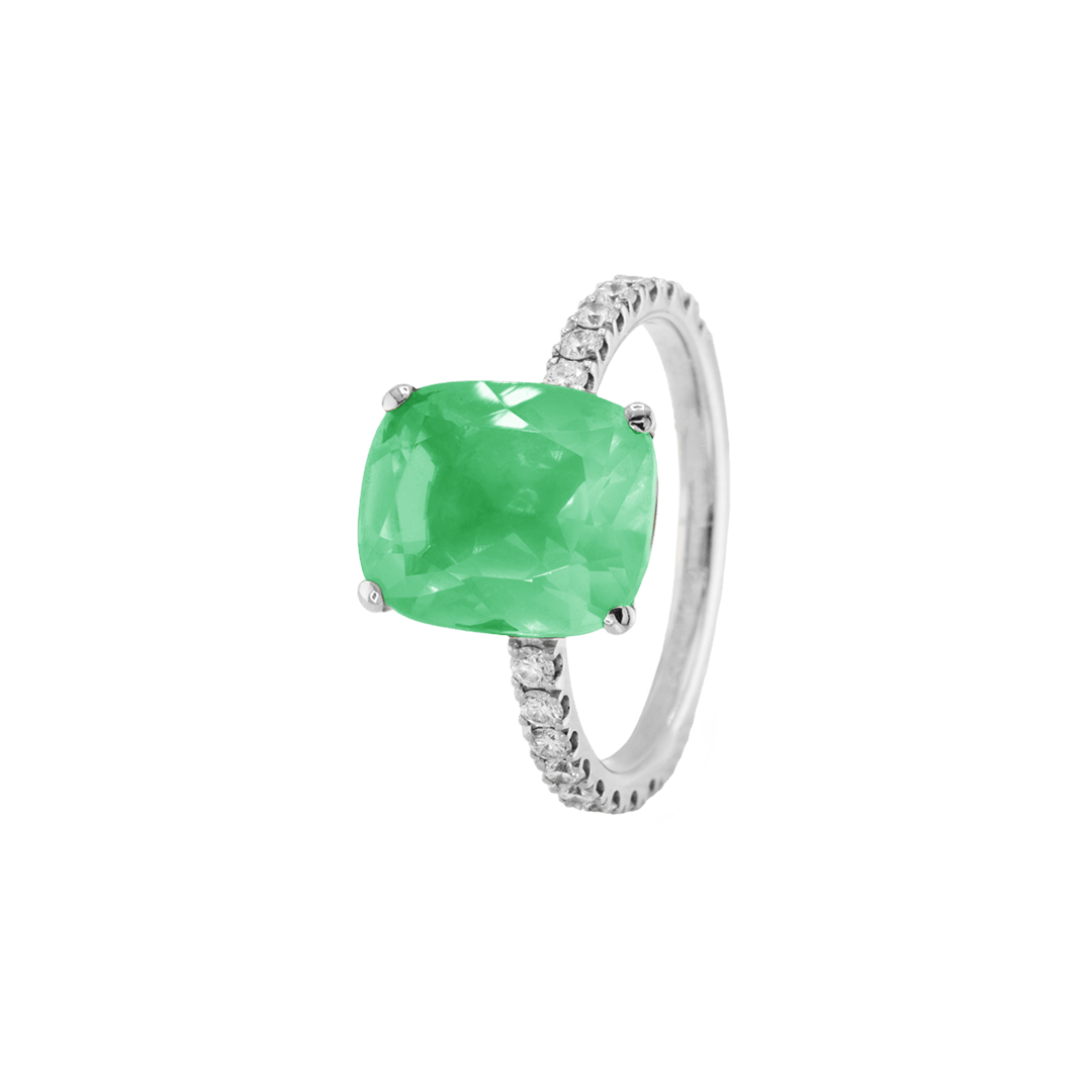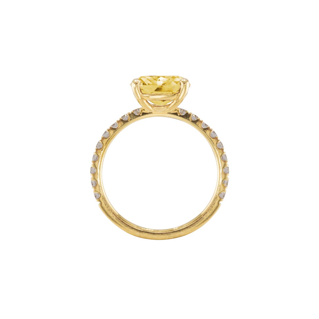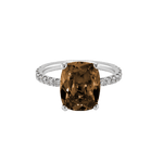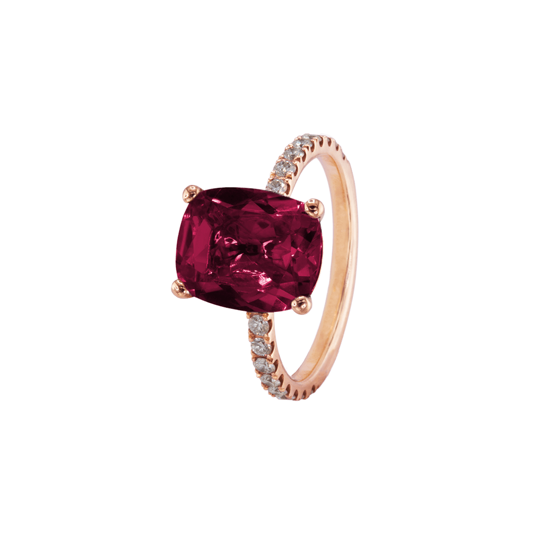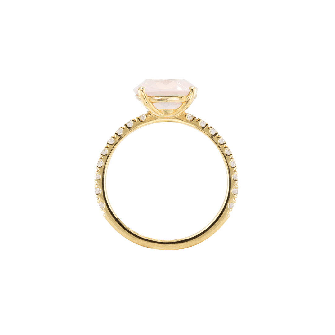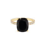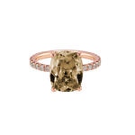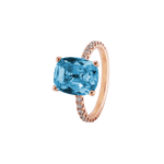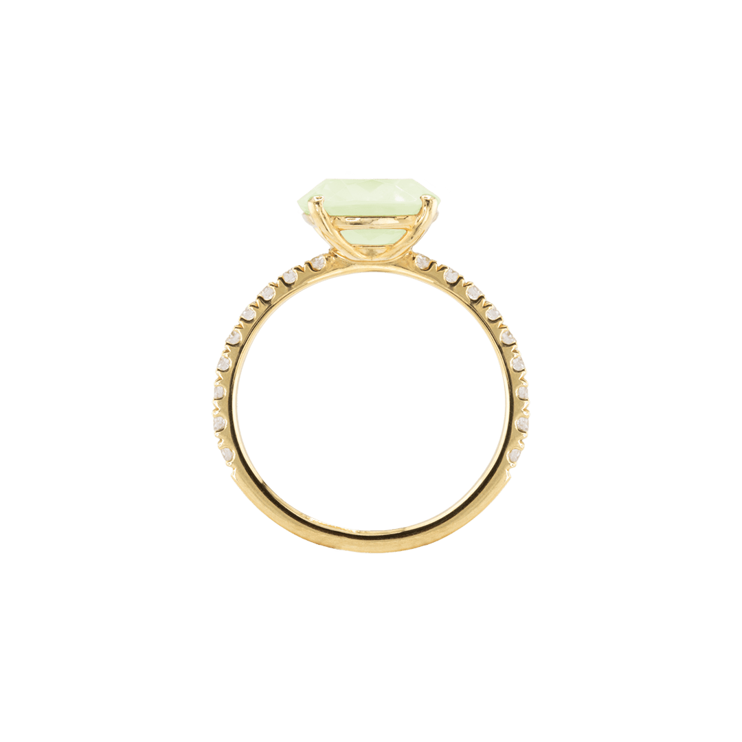 Goldener Ring mit Edelstein im Cushion Cut und diamantbesetzter Ringschiene
