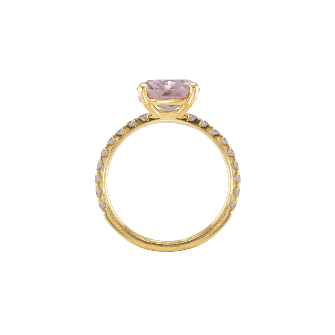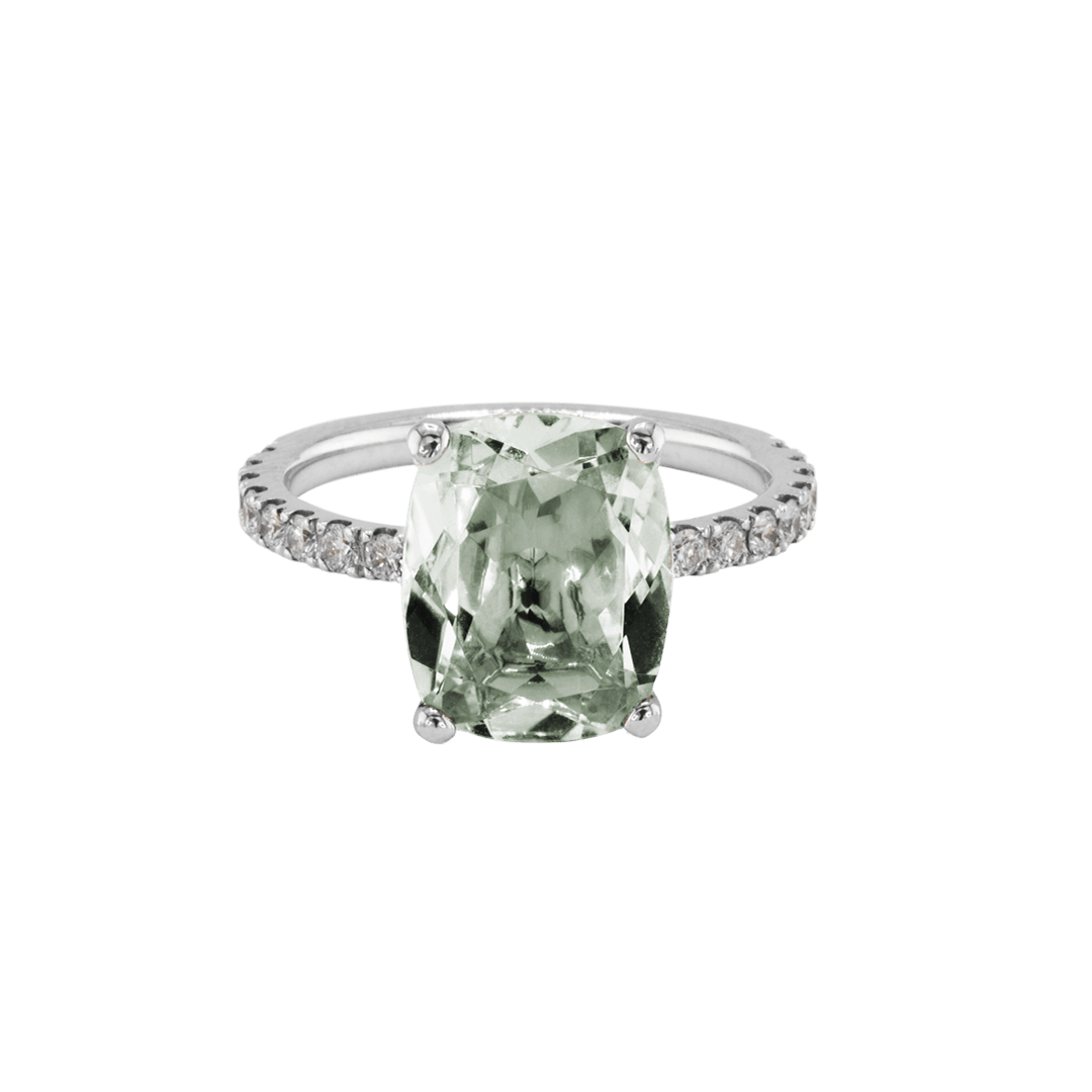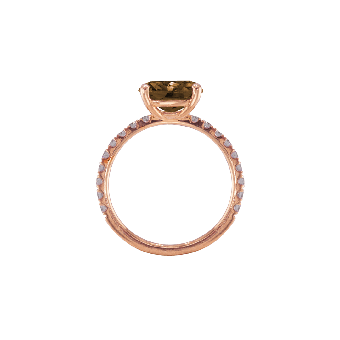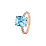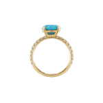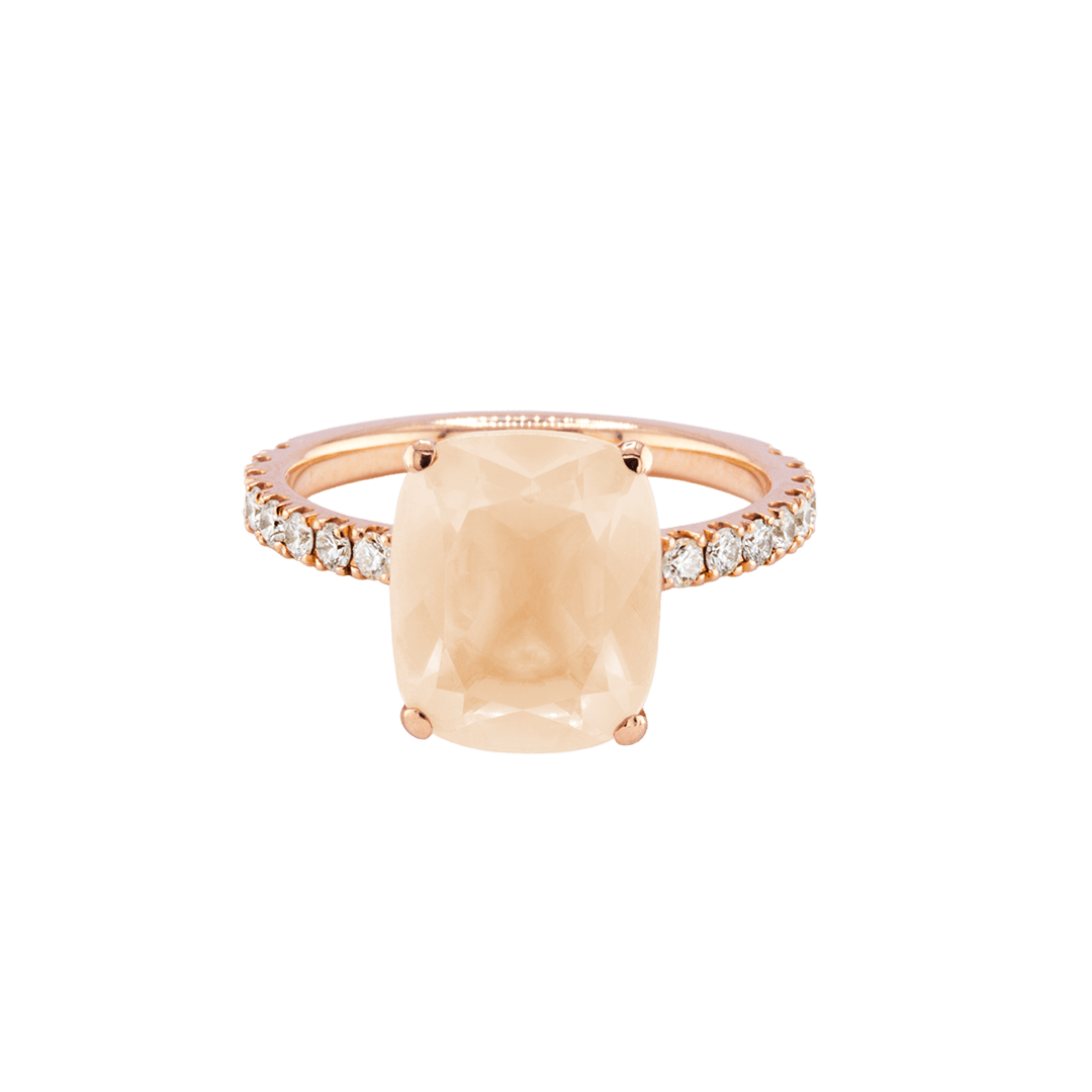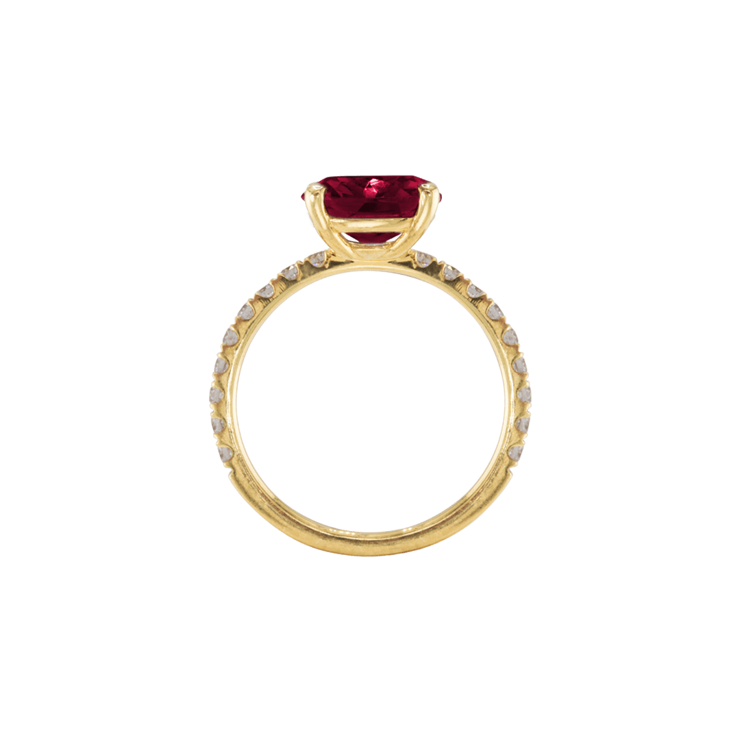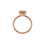 Goldener Ring mit Edelstein im Cushion Cut und diamantbesetzter Ringschiene