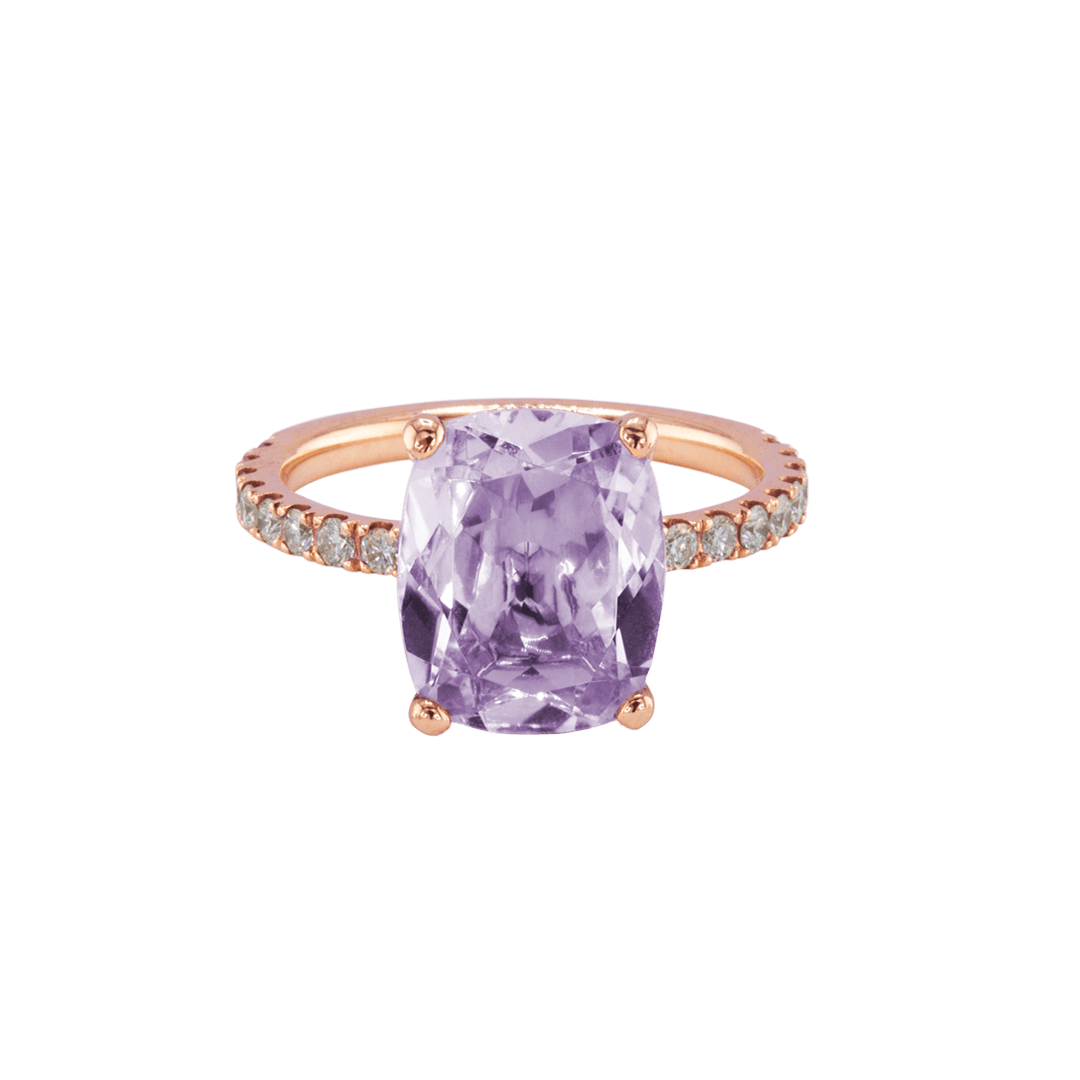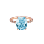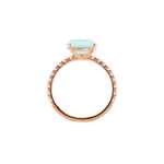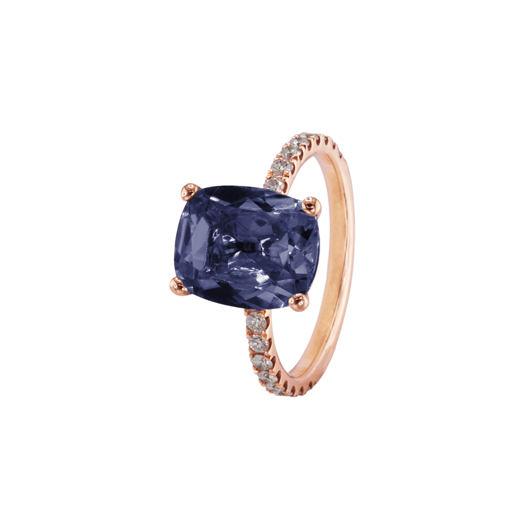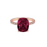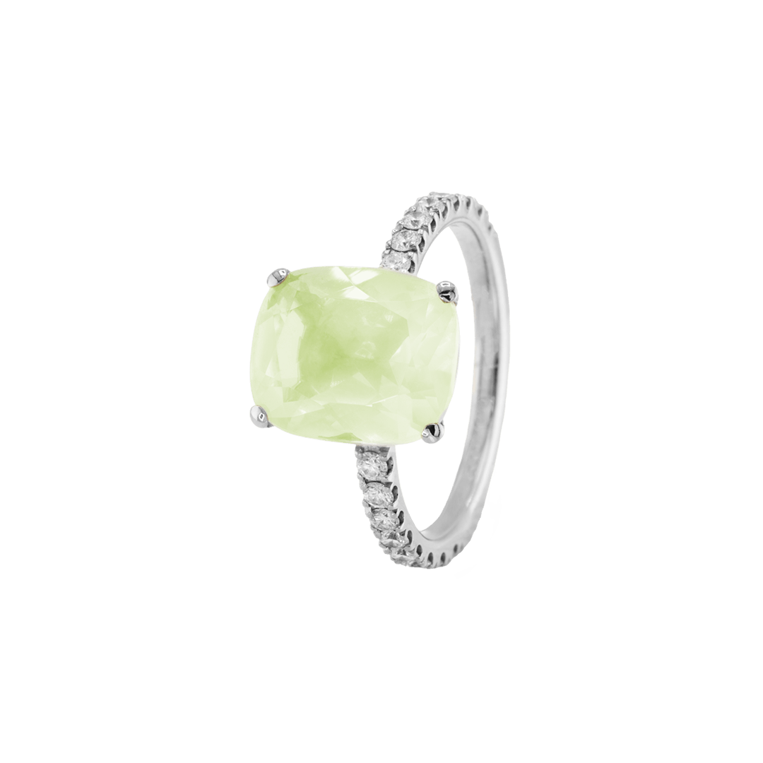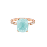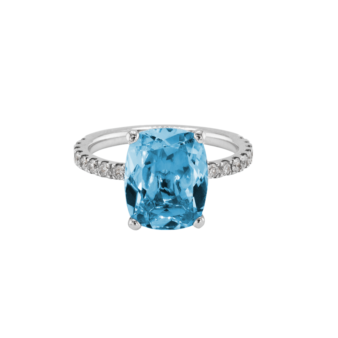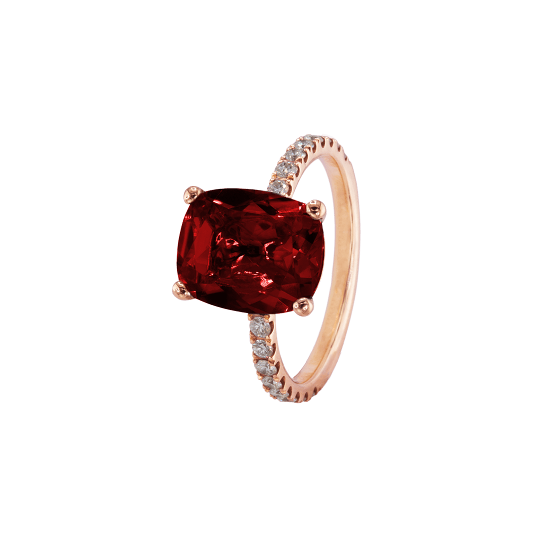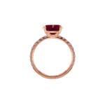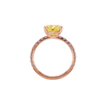 Goldener Ring mit Edelstein im Cushion Cut und diamantbesetzter Ringschiene