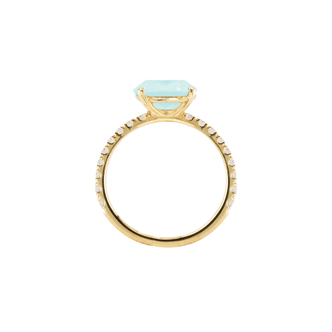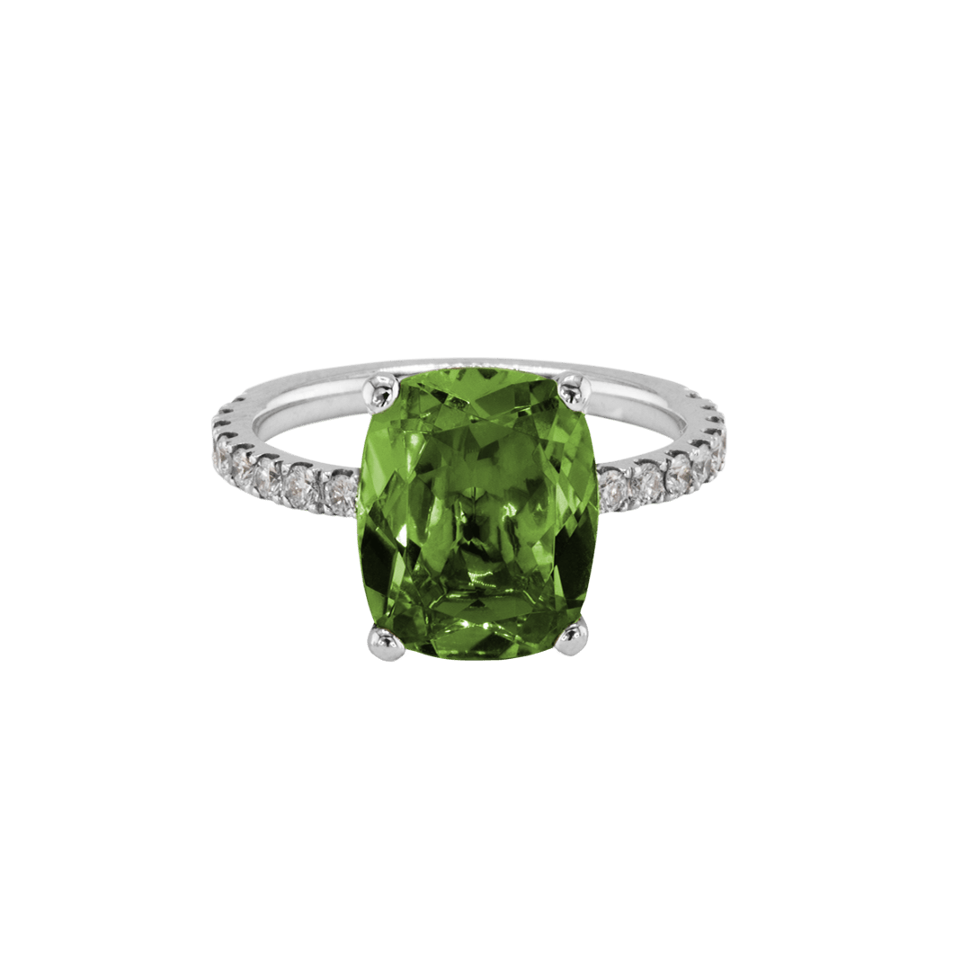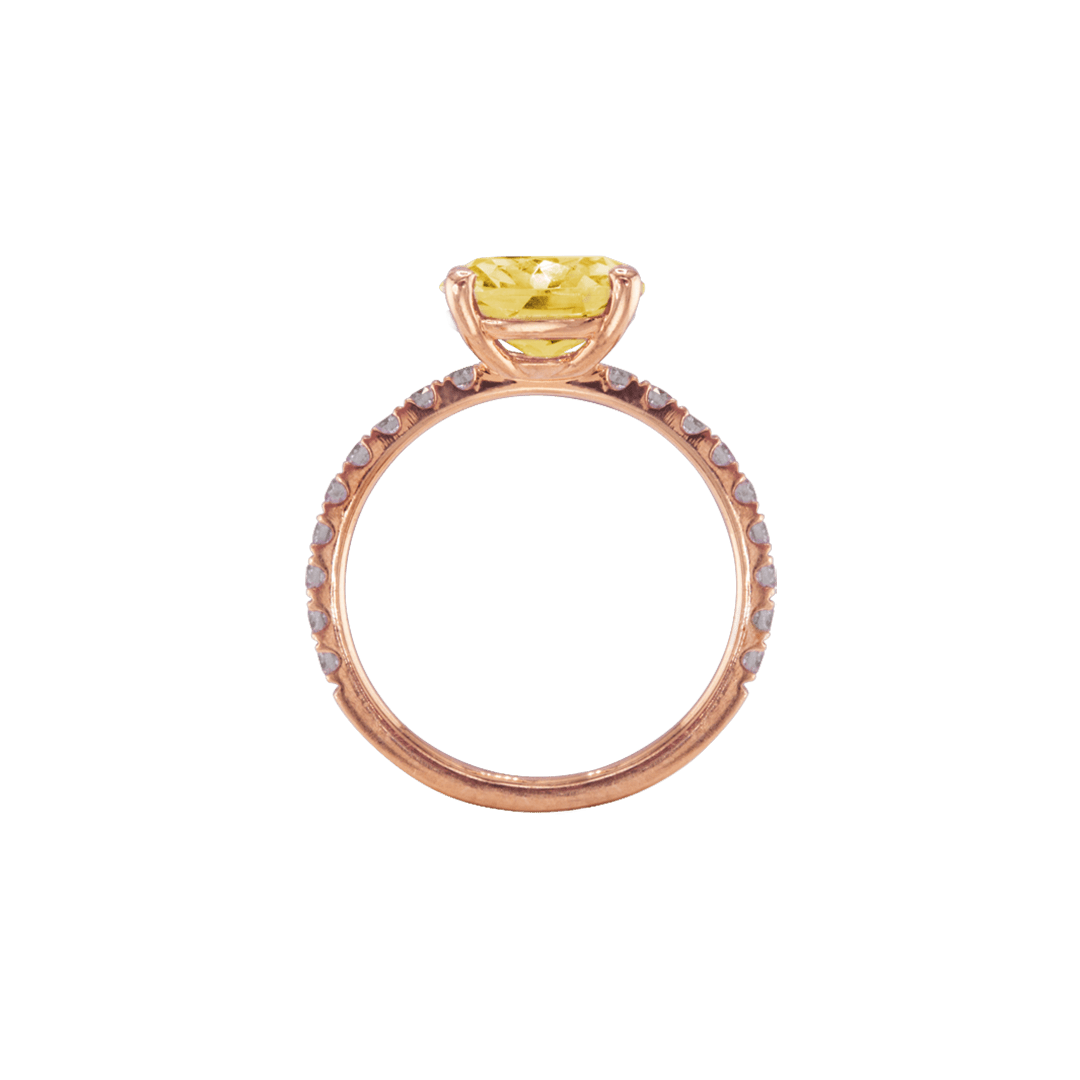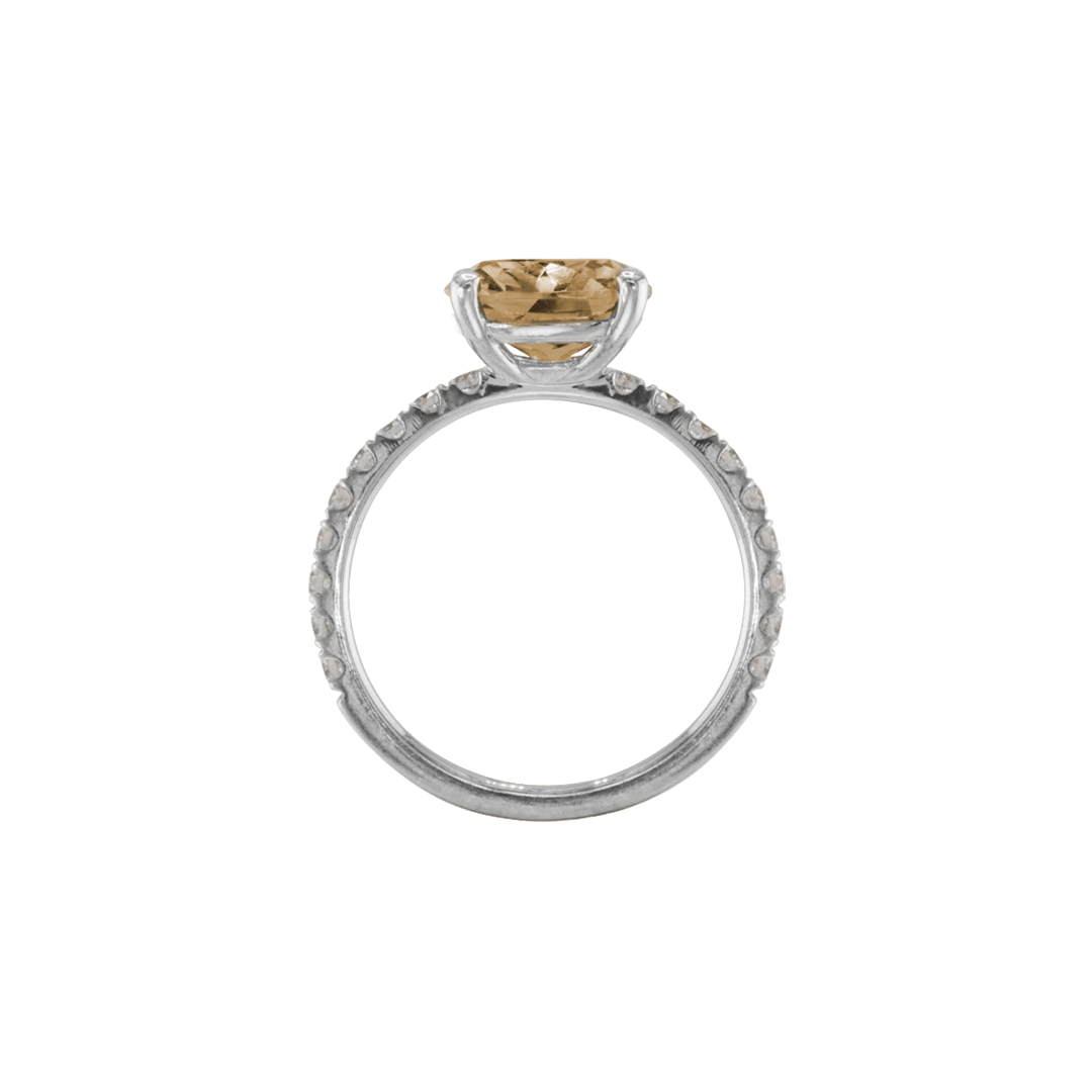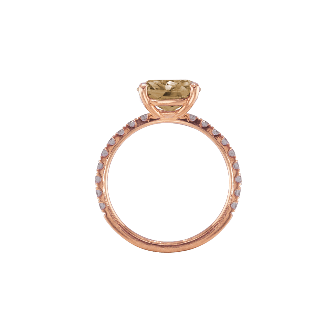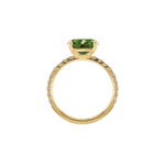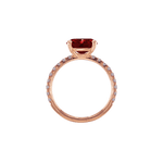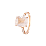 Goldener Ring mit Edelstein im Cushion Cut und diamantbesetzter Ringschiene