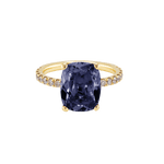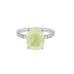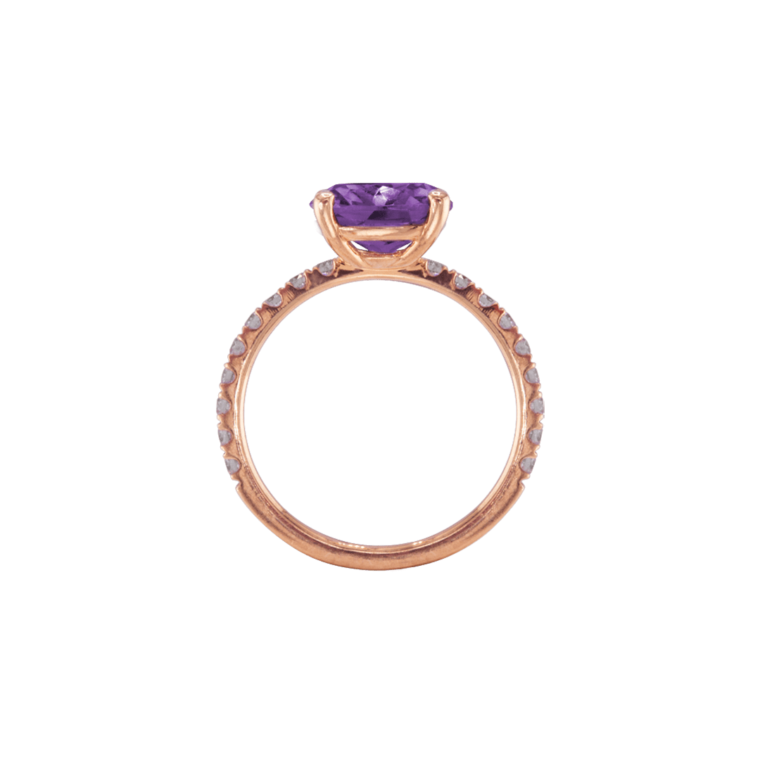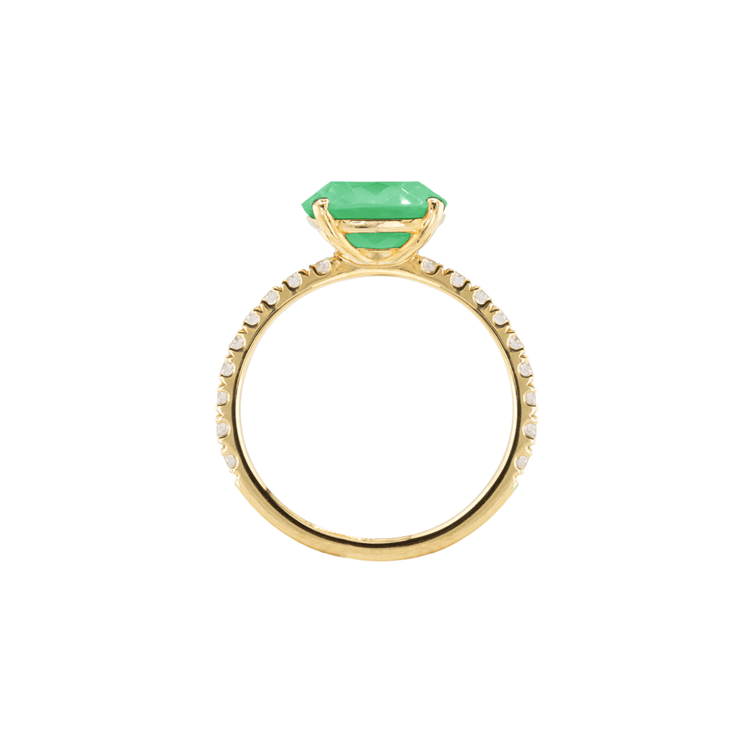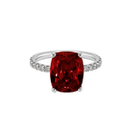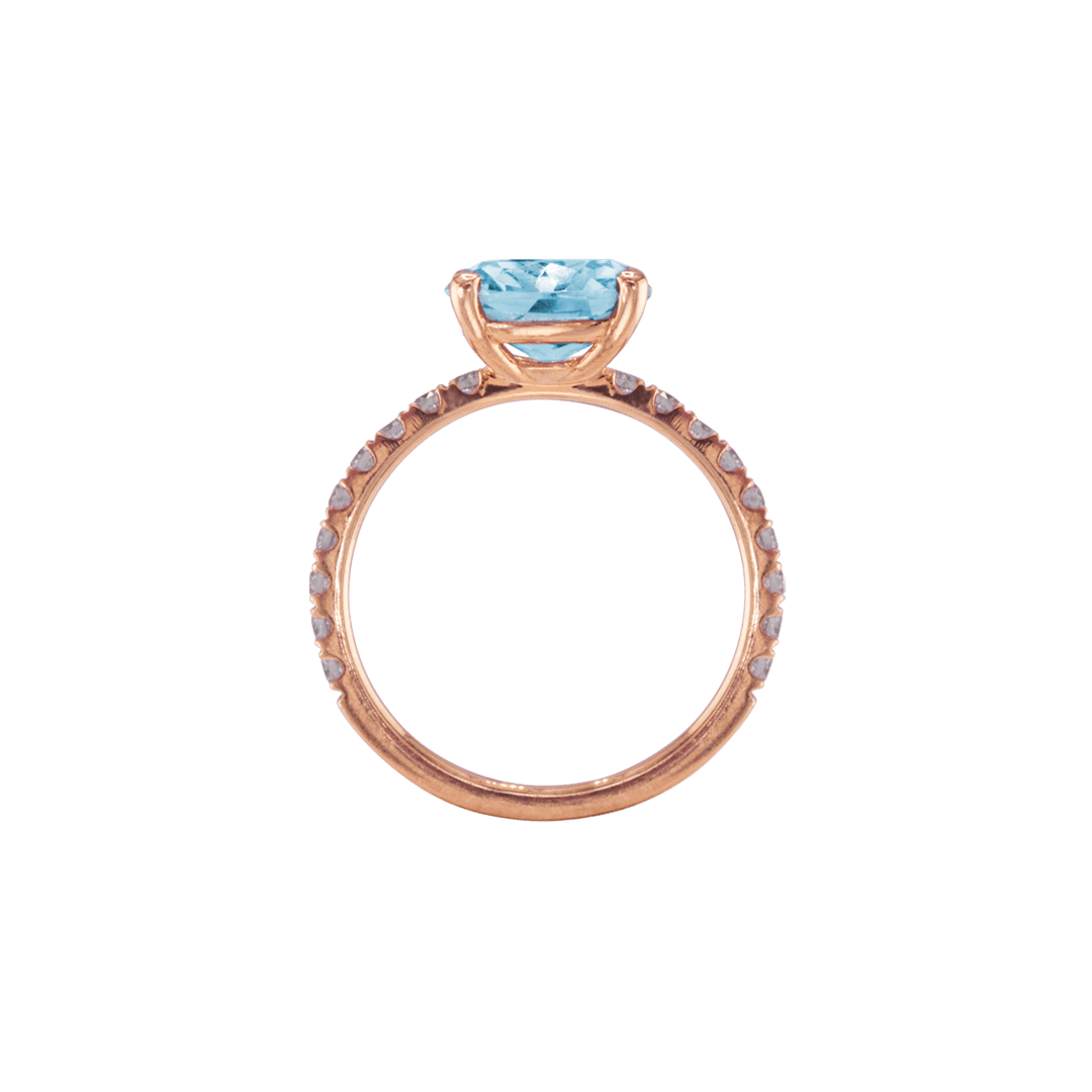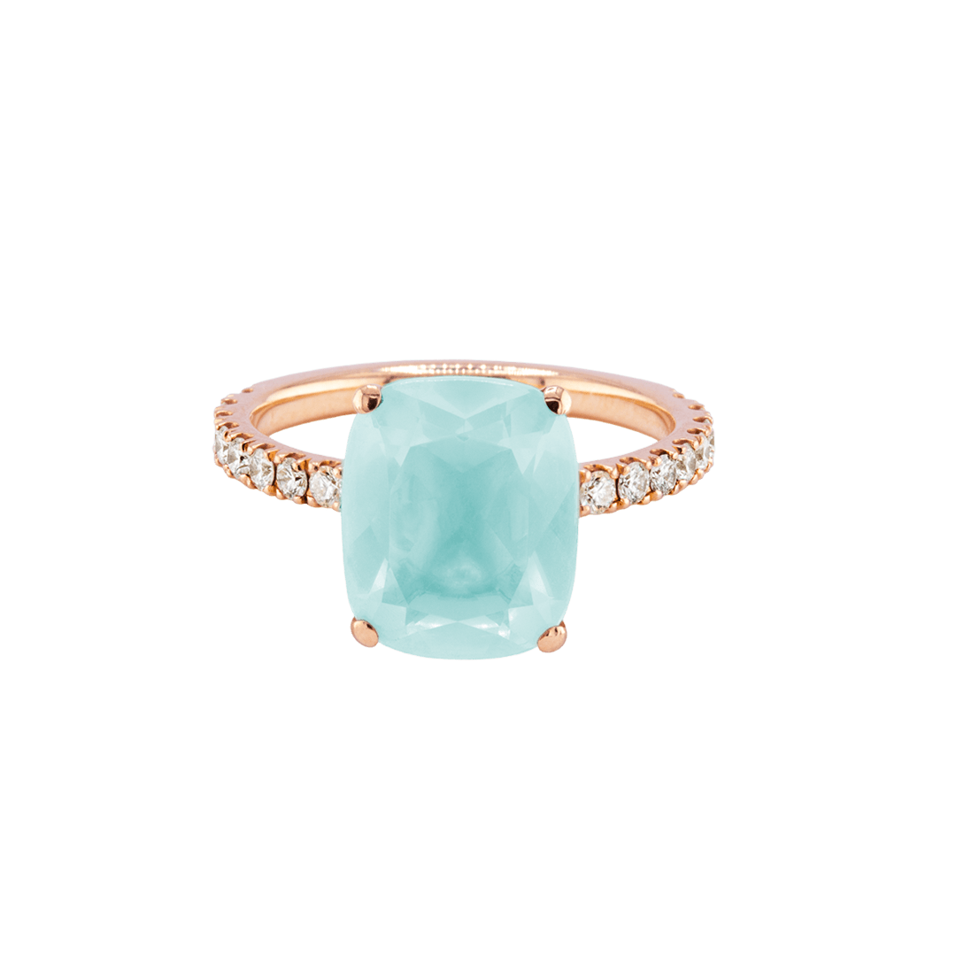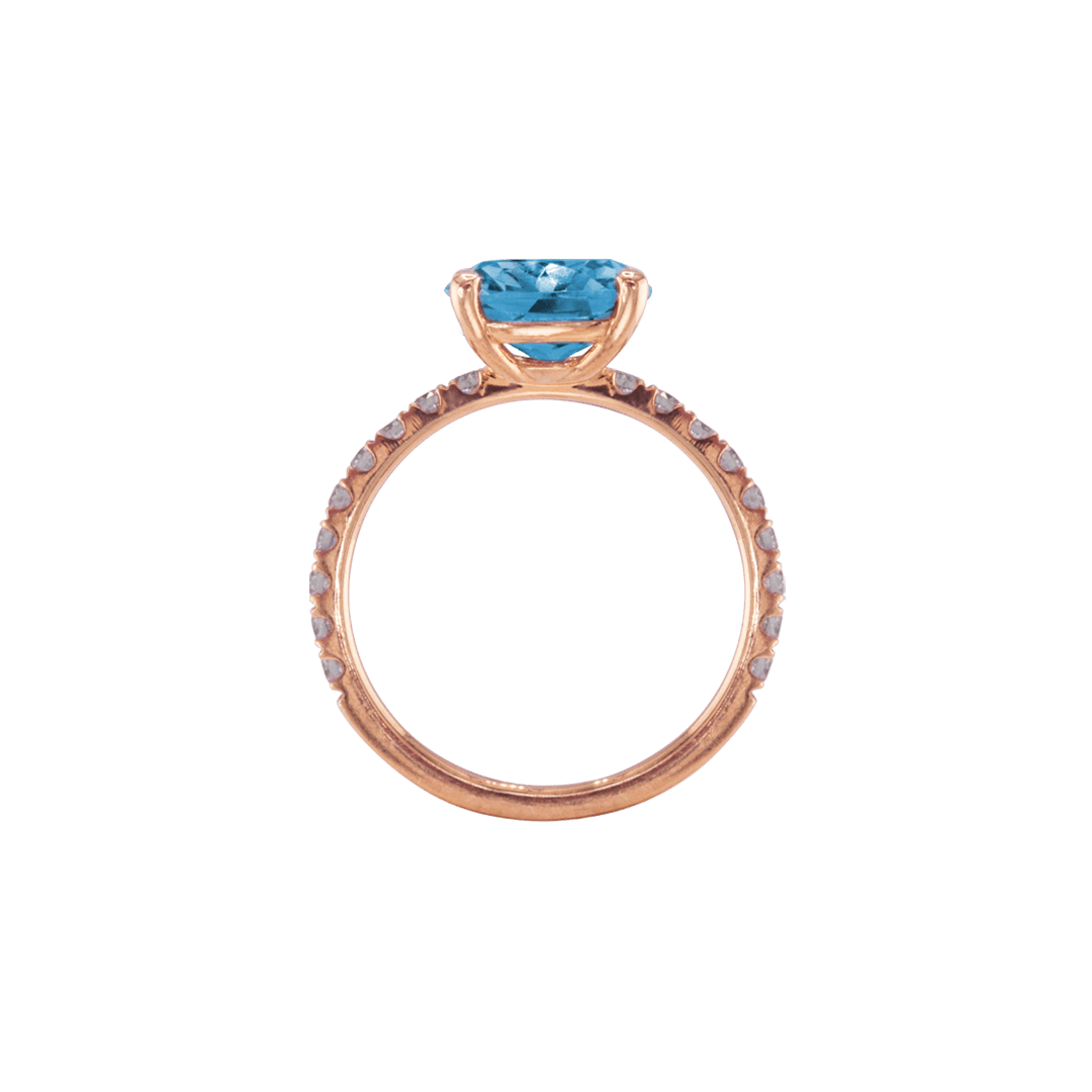 Goldener Ring mit Edelstein im Cushion Cut und diamantbesetzter Ringschiene