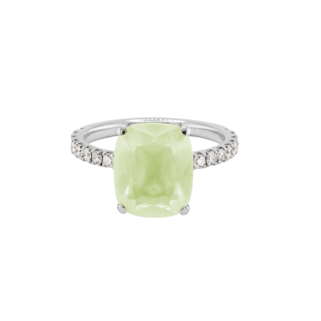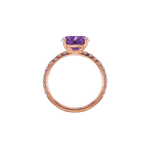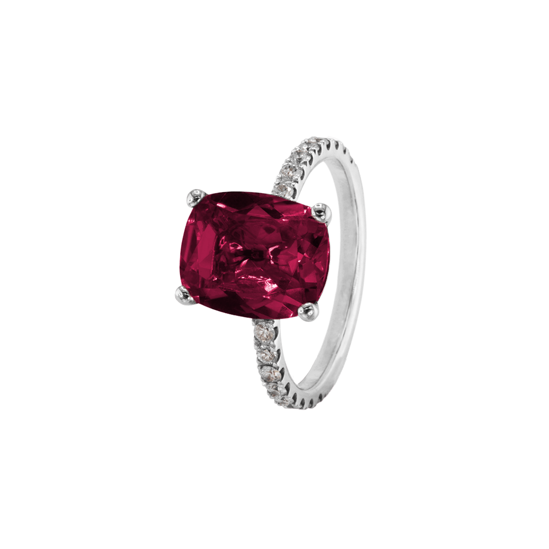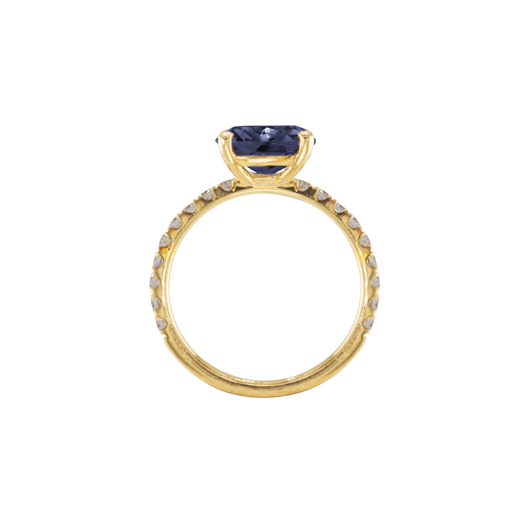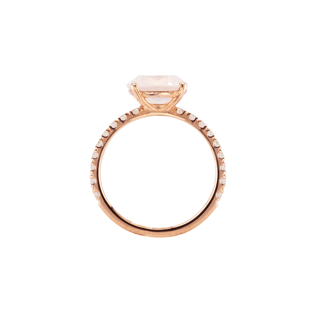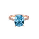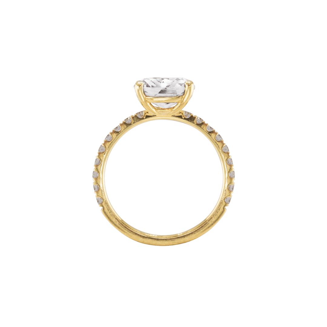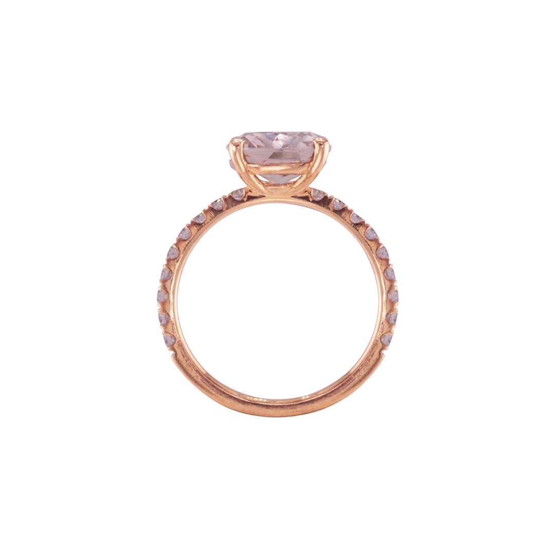 Goldener Ring mit Edelstein im Cushion Cut und diamantbesetzter Ringschiene