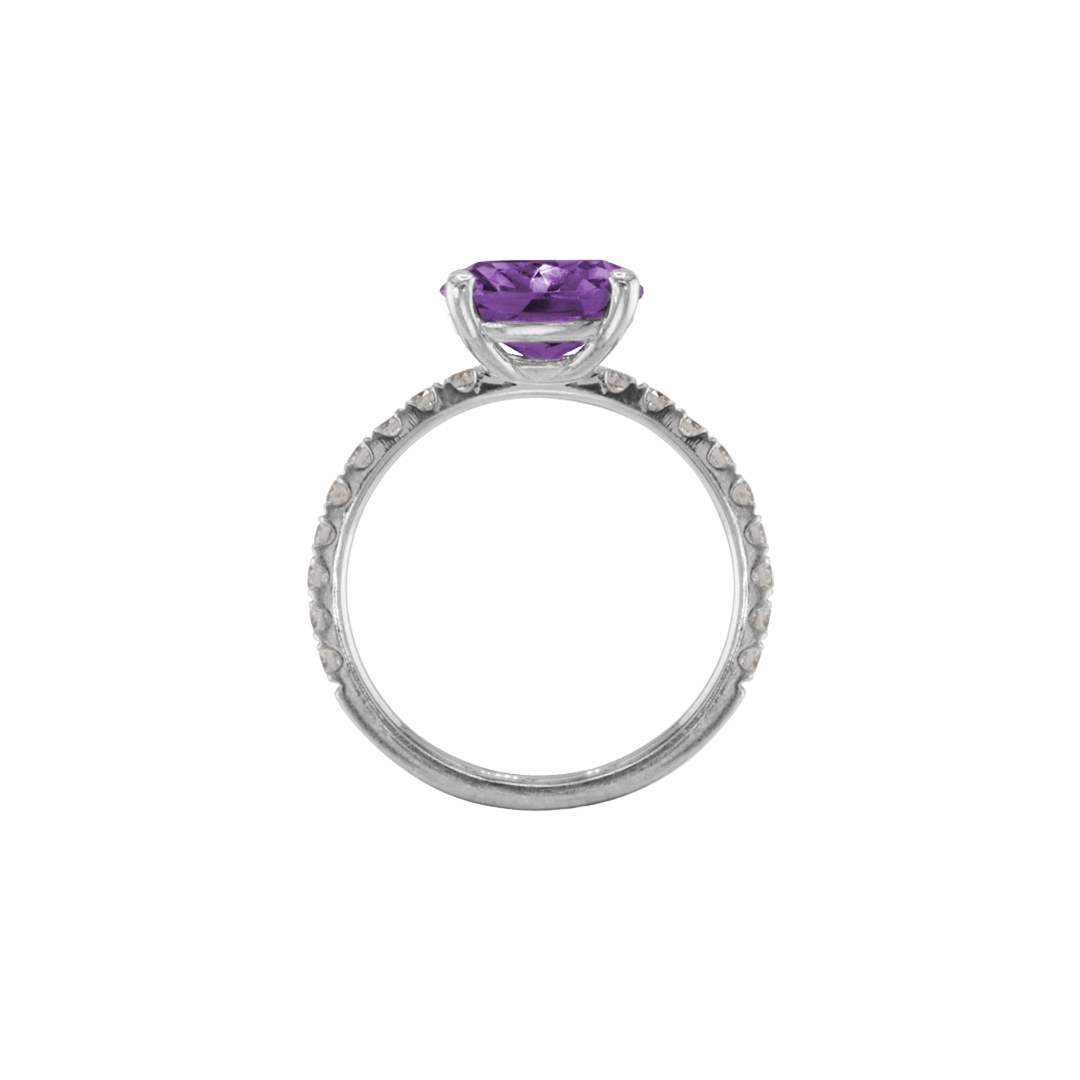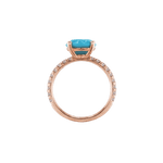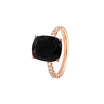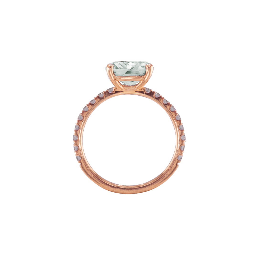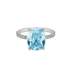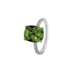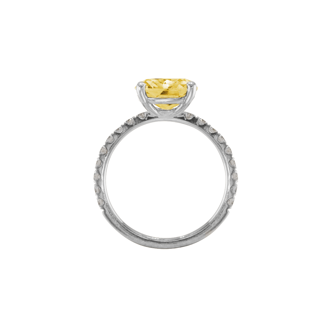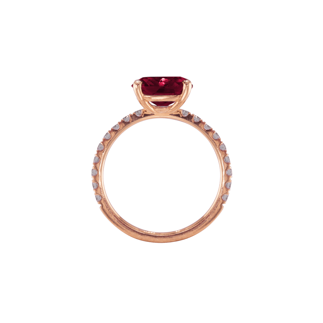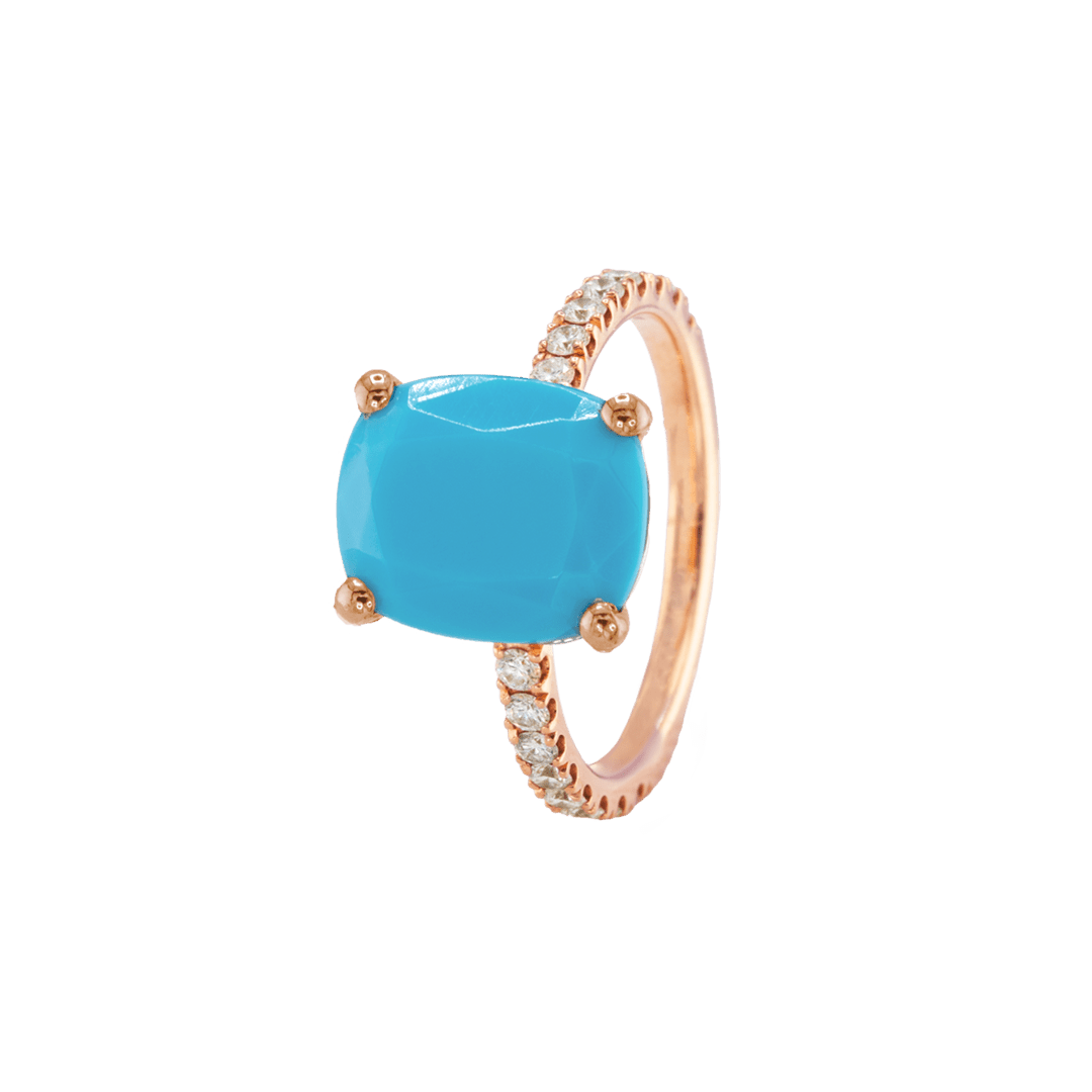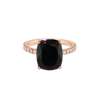Goldener Ring mit Edelstein im Cushion Cut und diamantbesetzter Ringschiene