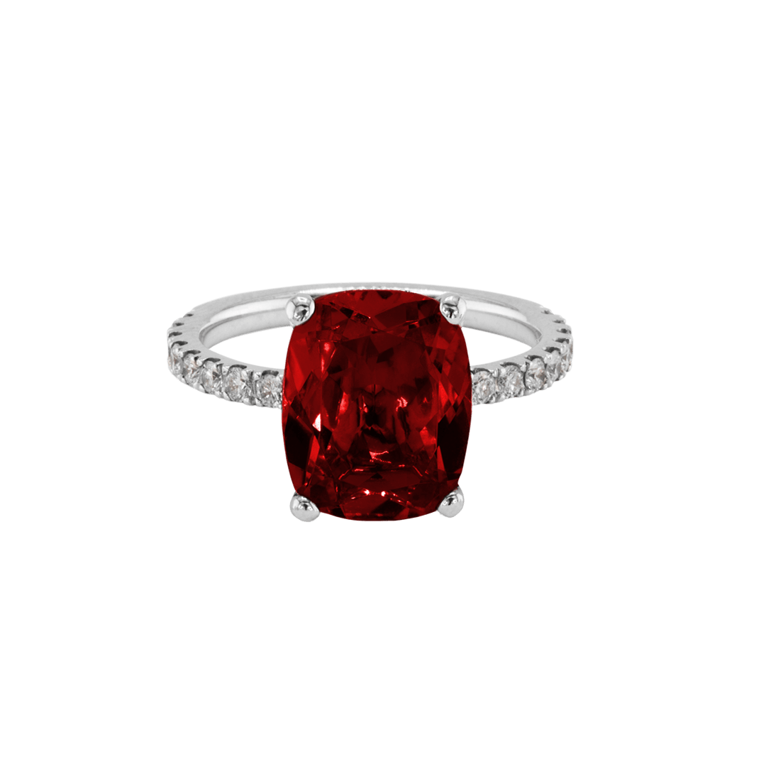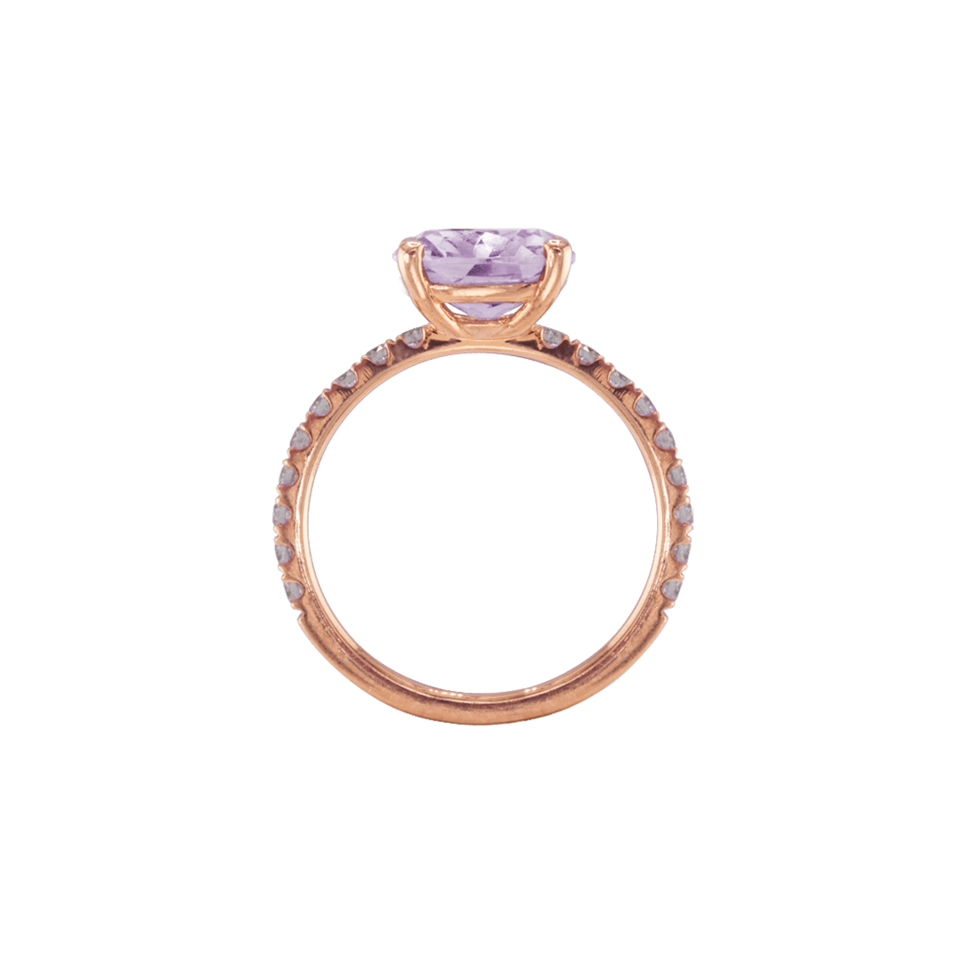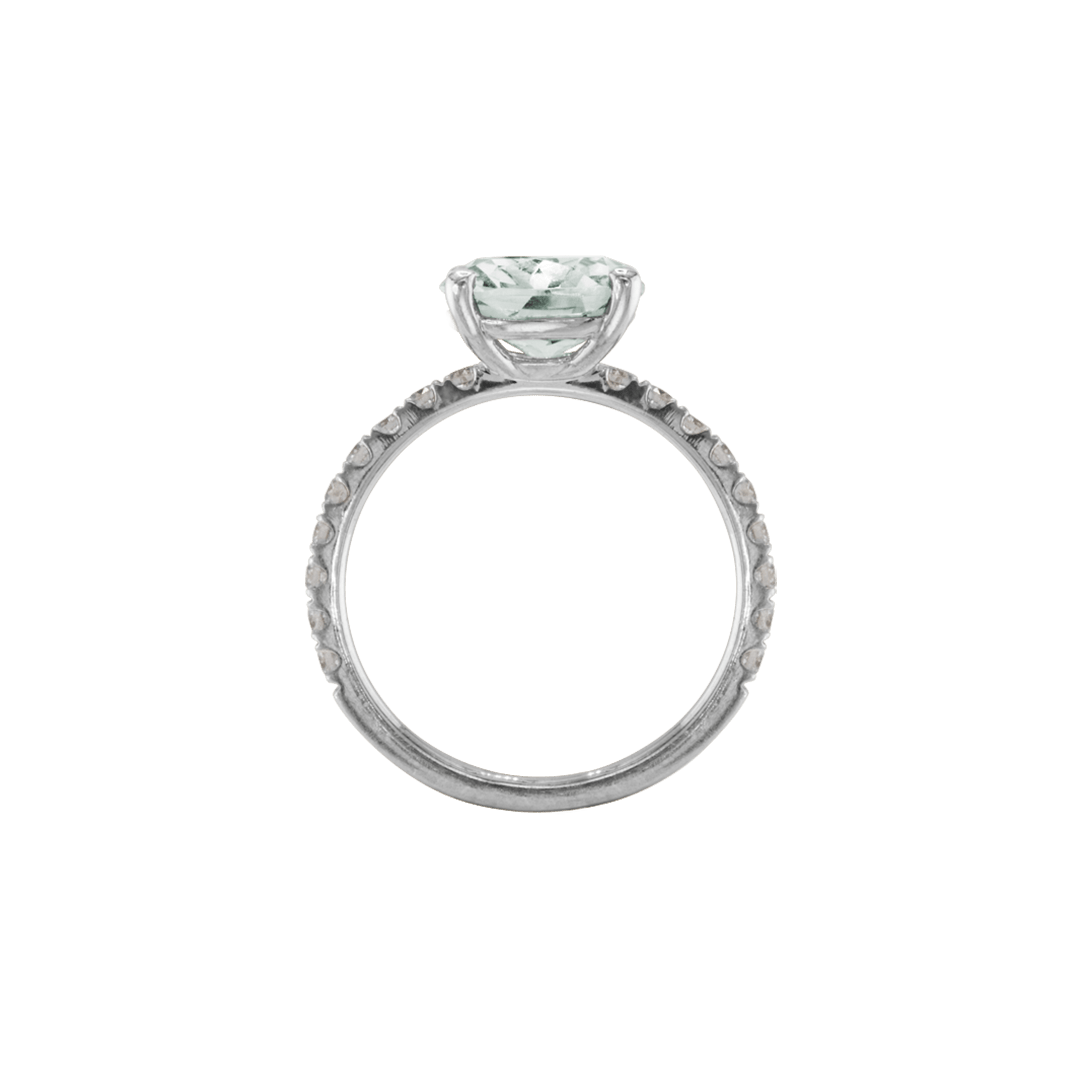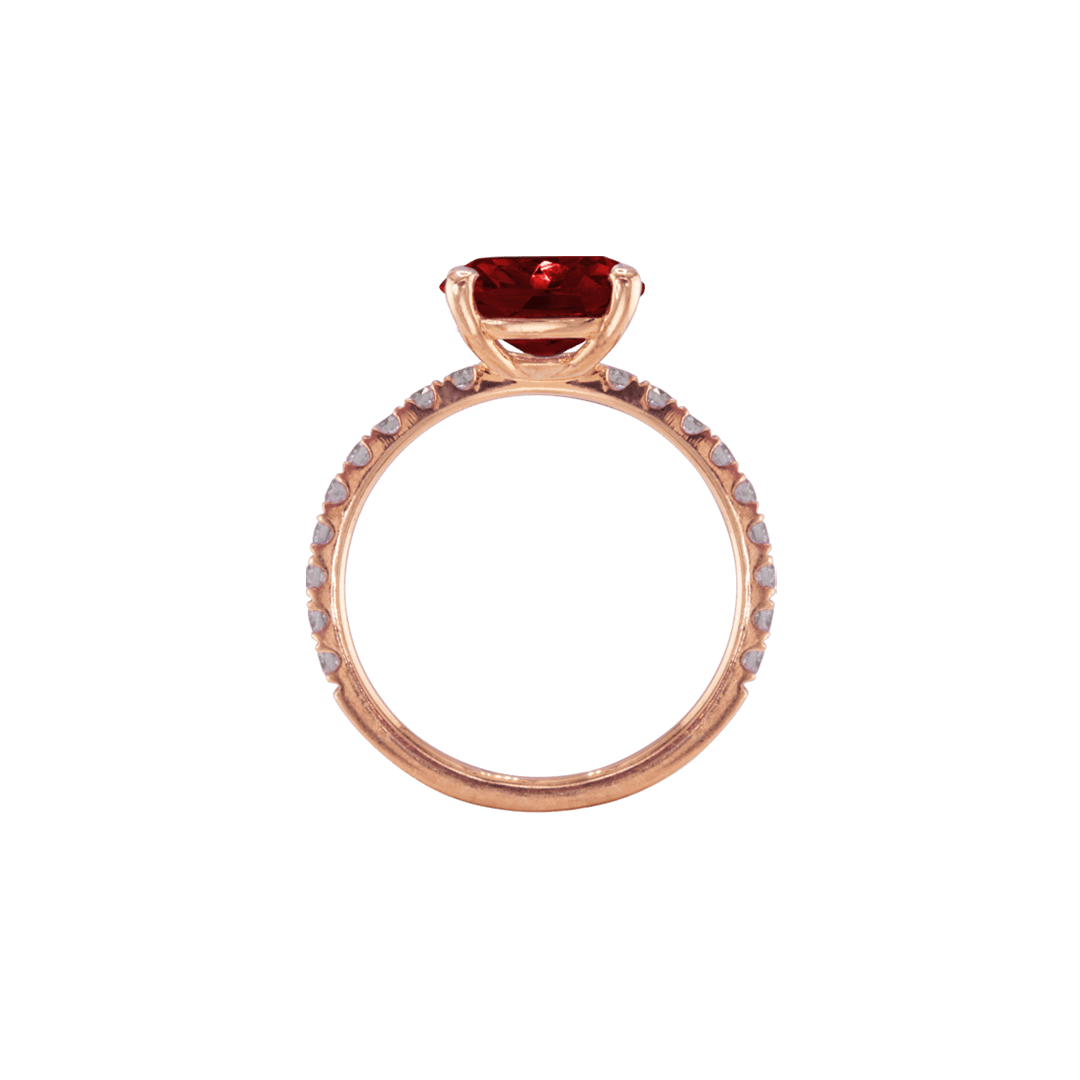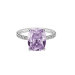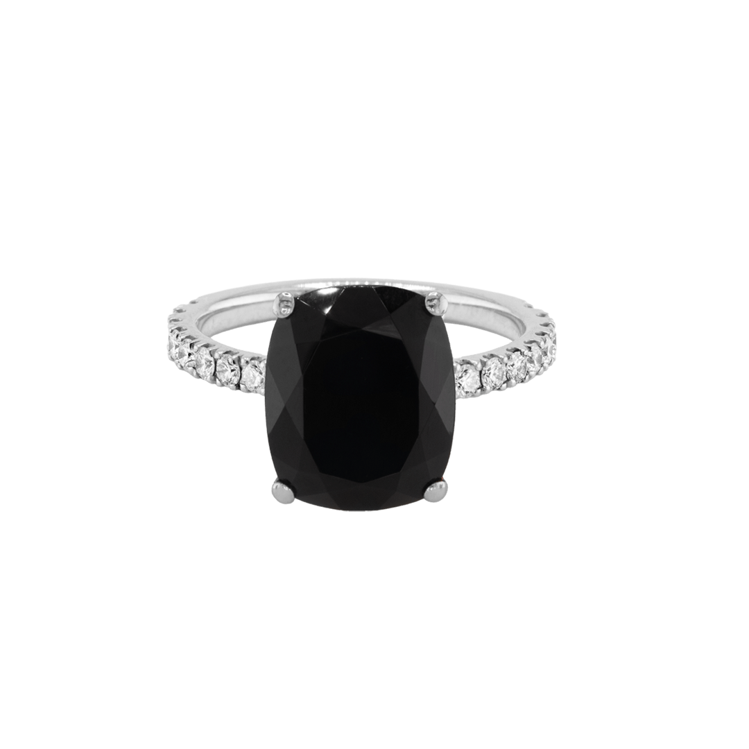 Goldener Ring mit Edelstein im Cushion Cut und diamantbesetzter Ringschiene