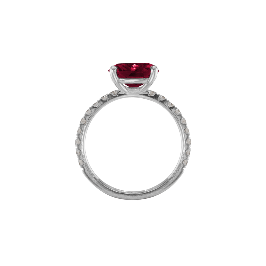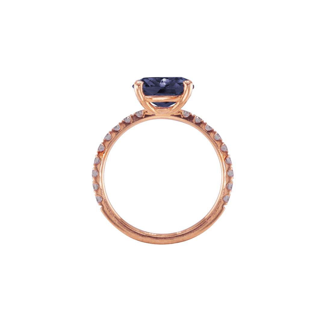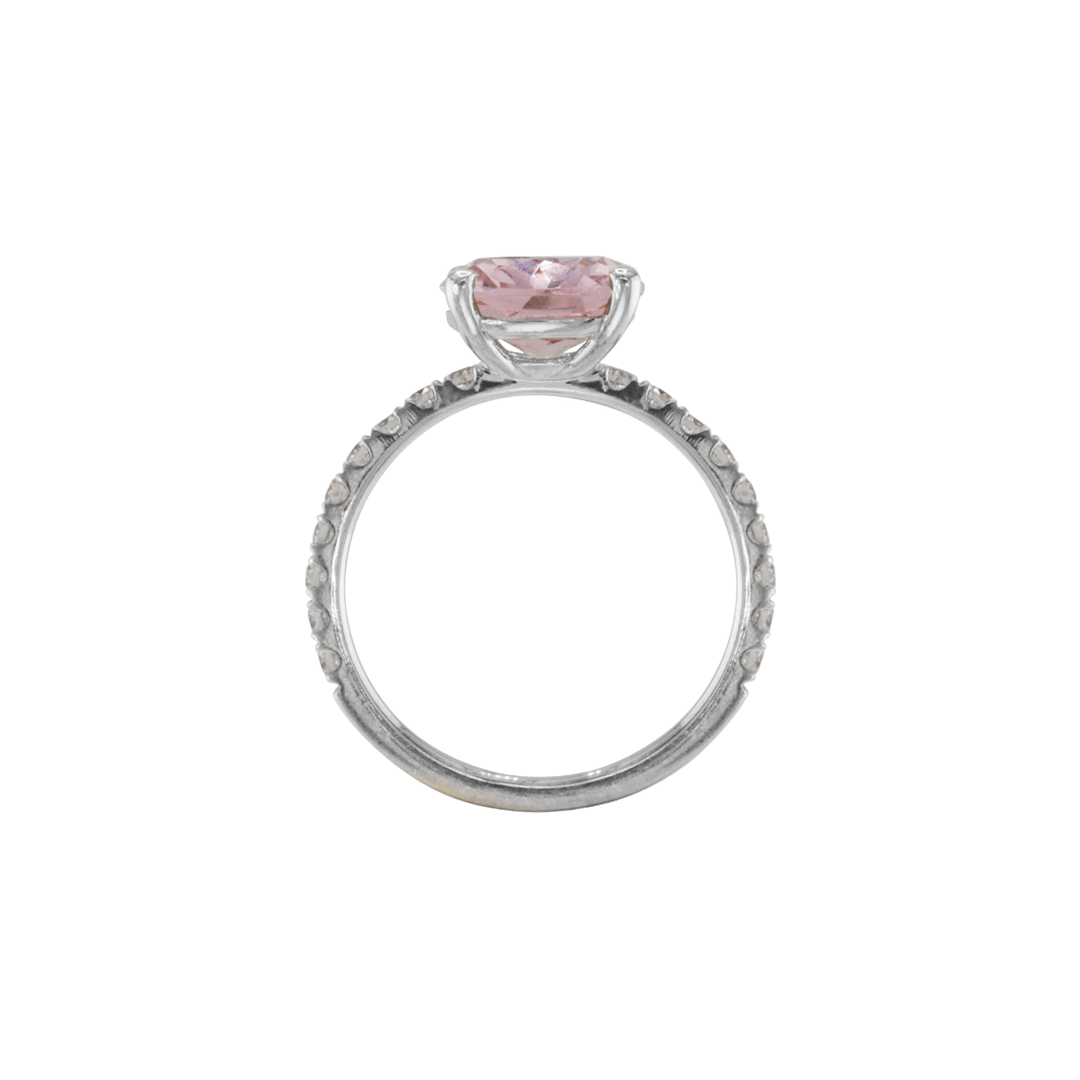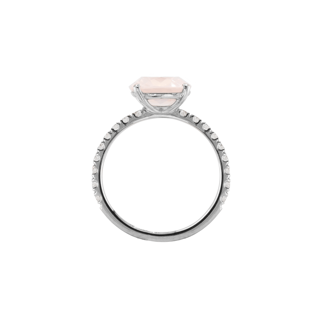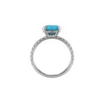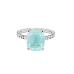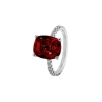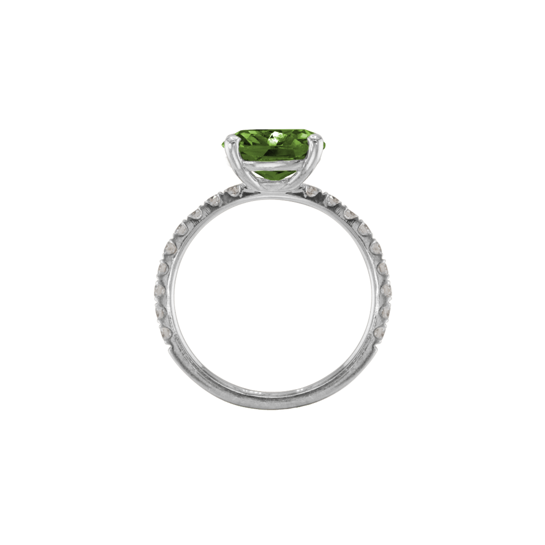 Goldener Ring mit Edelstein im Cushion Cut und diamantbesetzter Ringschiene
