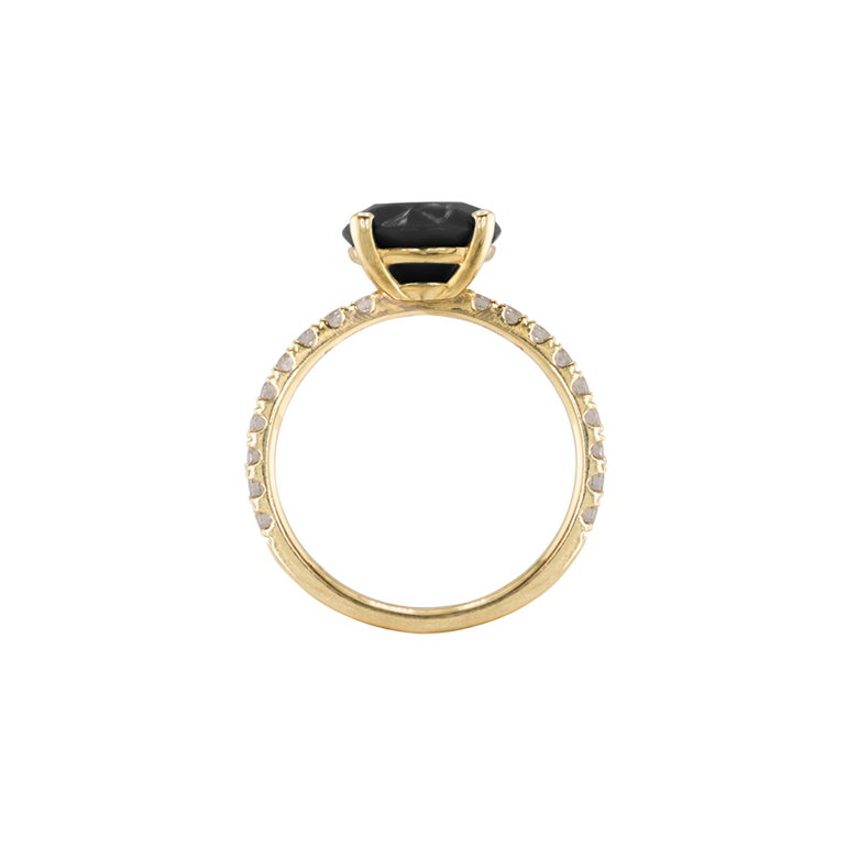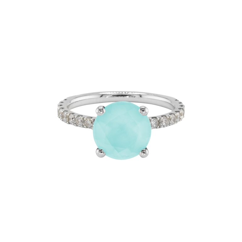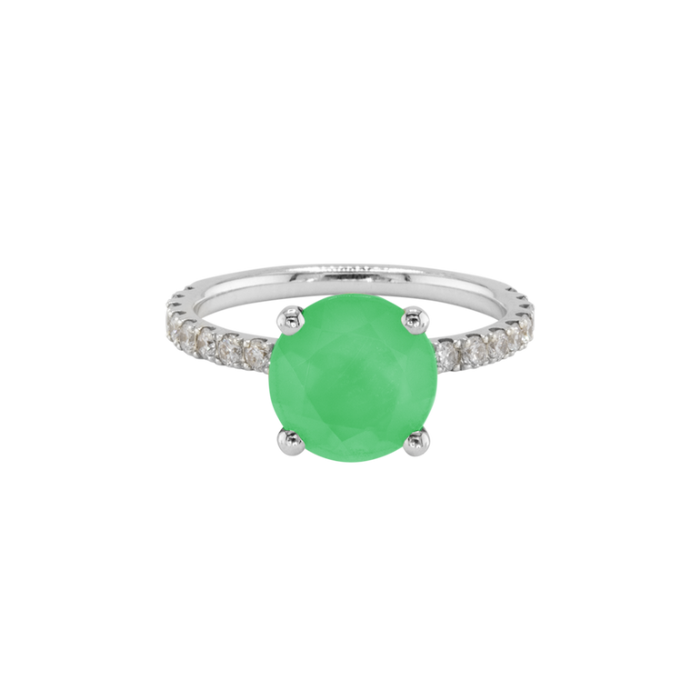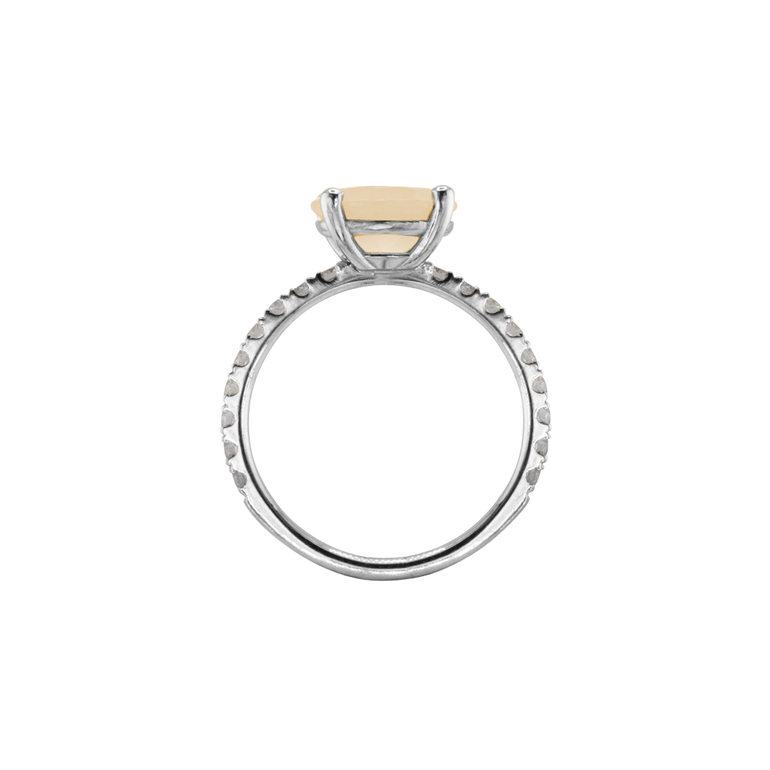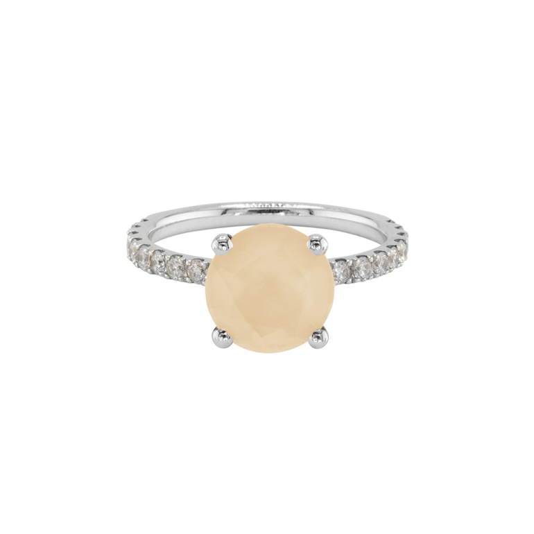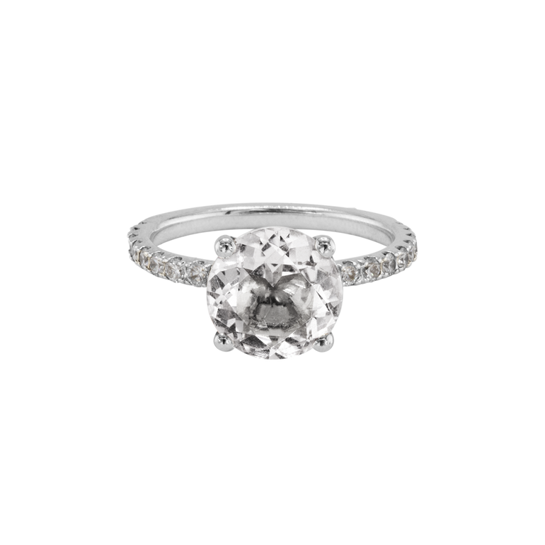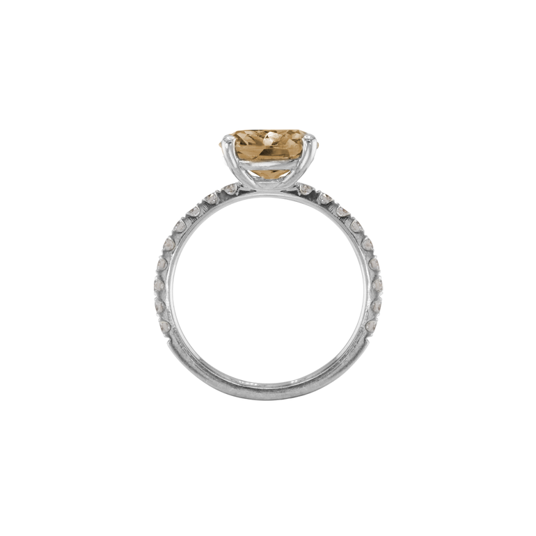 Here comes the Queen: SISSITA! Unser funkelnder Traumring mit diamantbesetzter Ringschiene und einem Mittelstein im einzigartigen Flowercut. Er ist gleichzeitig klassisch und anmutig – eine zeitlose Schönheit, die Dir im Handumdrehen ein Lächeln ins Gesicht zaubert. SISSITA lässt sich perfekt mit den meisten Ehe- und Memoire-Ringen kombinieren, da der Mittelstein so gefasst ist, dass andere Ringe darunter Platz finden.