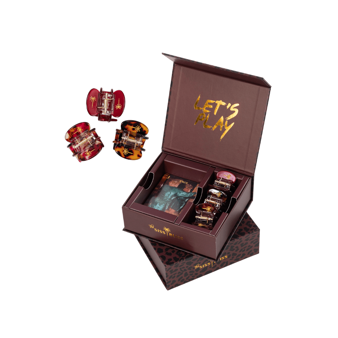 Drei brandneue Farben, Glossy Berry, Cherry Latte und Caramel Tiger, zelebrieren die verspielte Seite der SISSTERS – und machen jedes Hair-Game zum Fashion-Statement. Außerdem gibt es eine Premiere: Unser erstes The SISS BLISS Kartenspiel – für gemeinsame Momente, Spielabende oder einfach zum Lachen mit Deinen Lieblingsmenschen. Das Kartenspiel besteht aus einem Kartendeck mit einzigartigen BLISS Motiven und natürlich, im The SISS BLISS Stil, mit einer goldenen Kartenveredelung!
